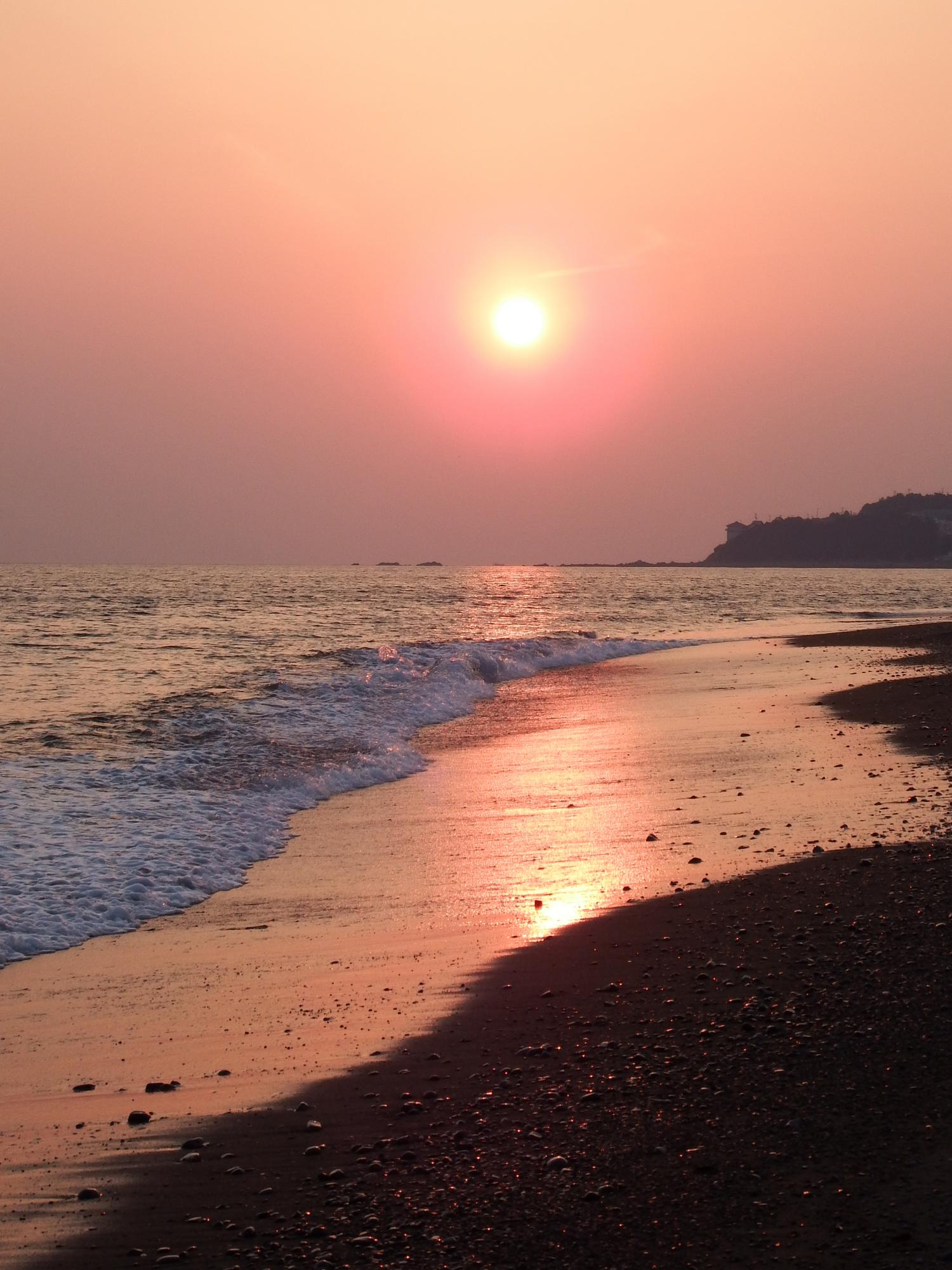 イソシギとセグロセキレイも。野鳥たちに元気をもらって日が海に沈むまで見届けることにします。