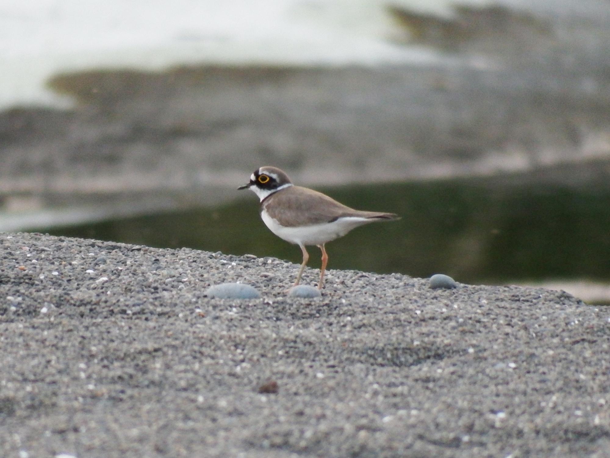 砂浜に腰を下ろして夕日を眺めていたら聞き覚えのある鳴き声、コチドリです。