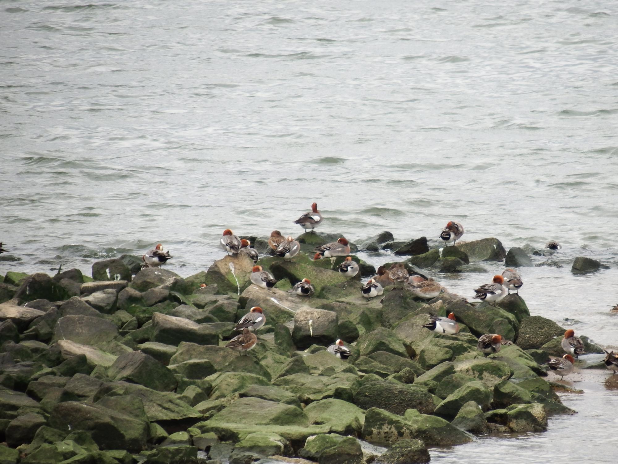 ヒドリガモたちはまだいます。シギチは全然いなくてイソヒヨドリ♀1羽。