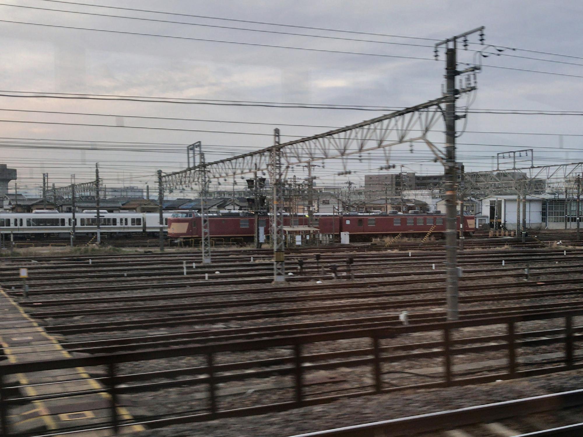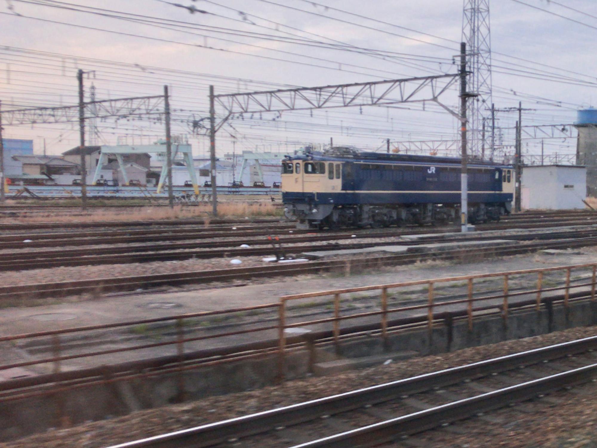 国鉄色のEF65とDD51。EF65はパンタを下ろしていてナンバーも読み取れませんが、下関総合車両所所属も向日町に常駐しているようで、SLびわこ号の回送でも頑張ってくれてます。