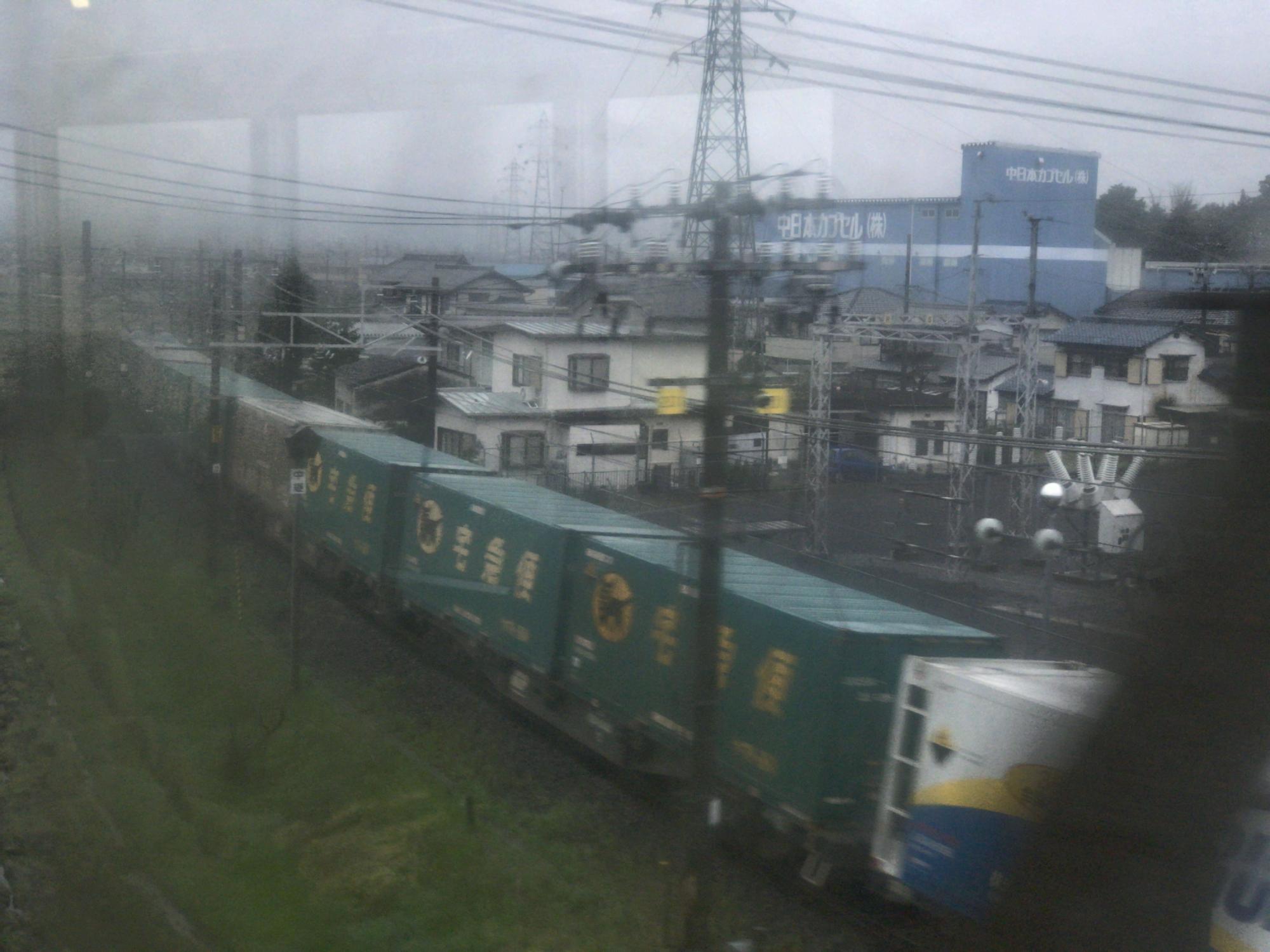 宅急便のコキが左車窓を垂直方向に向かって行くのは東海道本線下り本線(通称新垂井線)、ここを走るのは貨物列車と「しらさぎ」と「ひだ」と「サンライズ瀬戸/出雲」だけで、JR在来線で18きっぷでは乗れない全国で唯一の区間ではないかと。