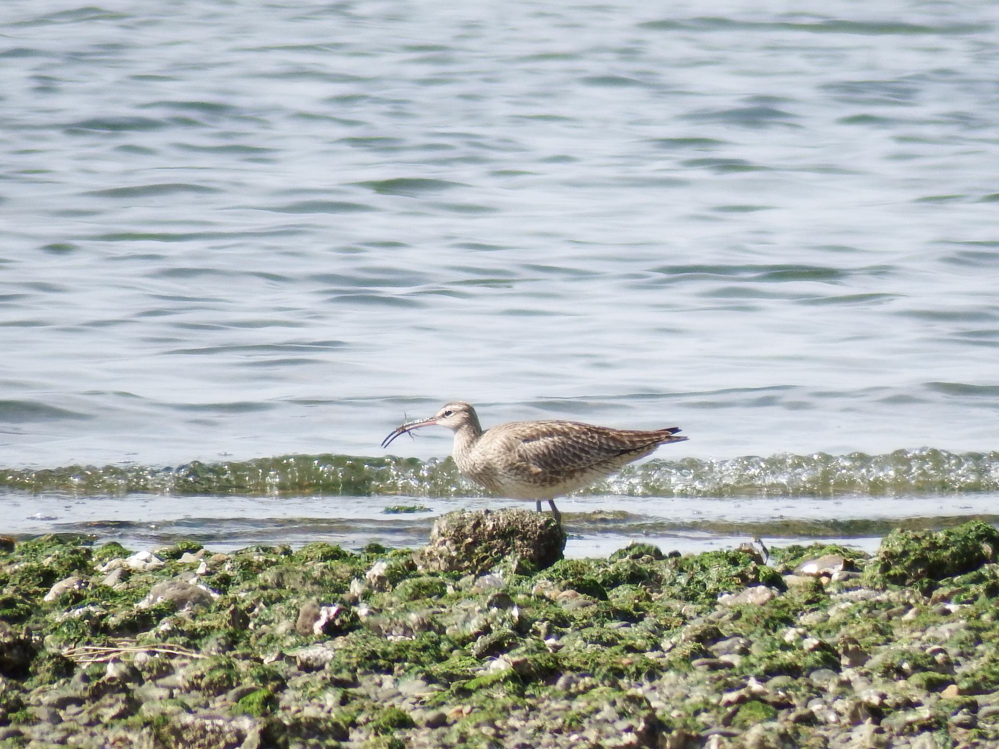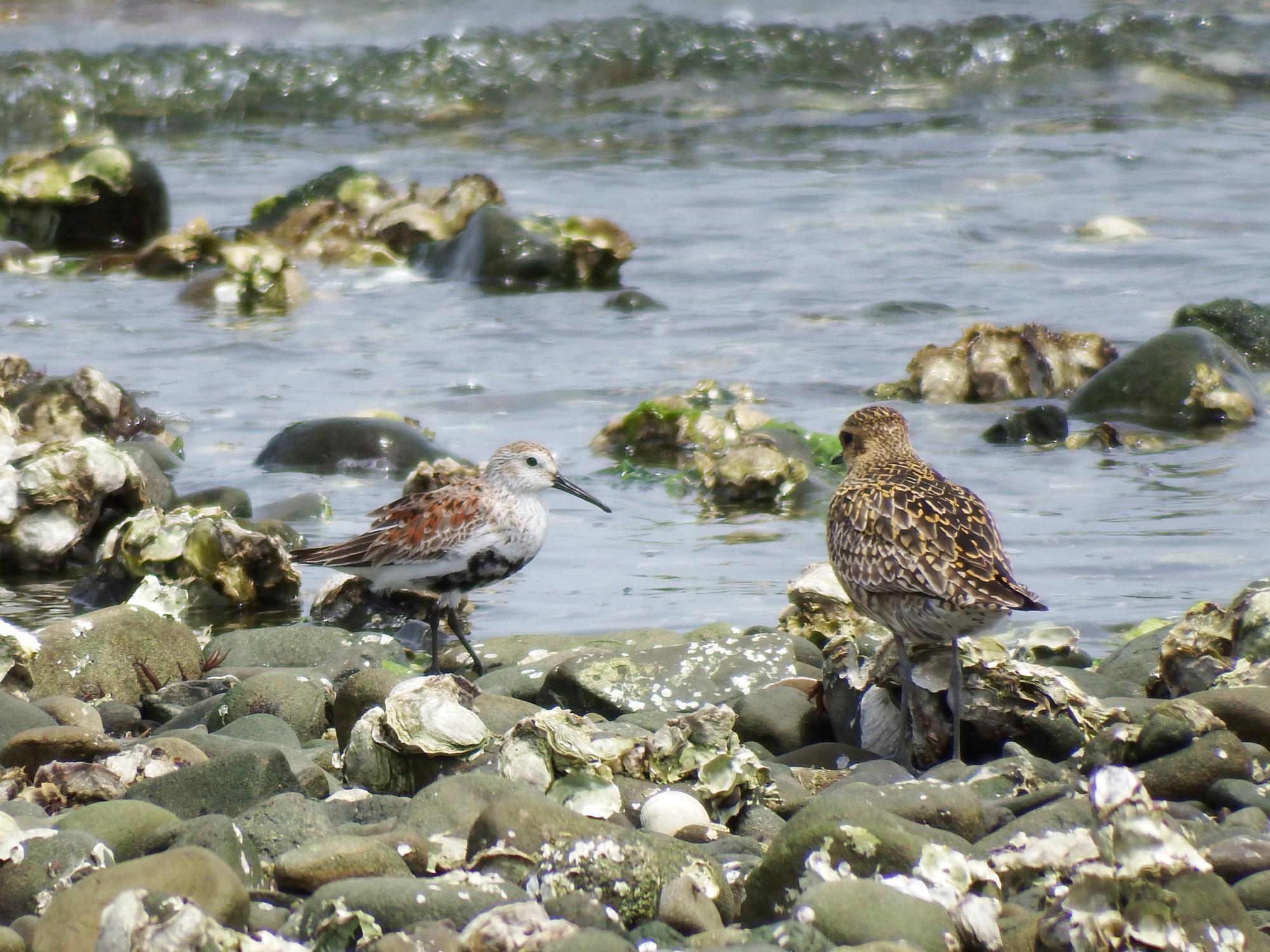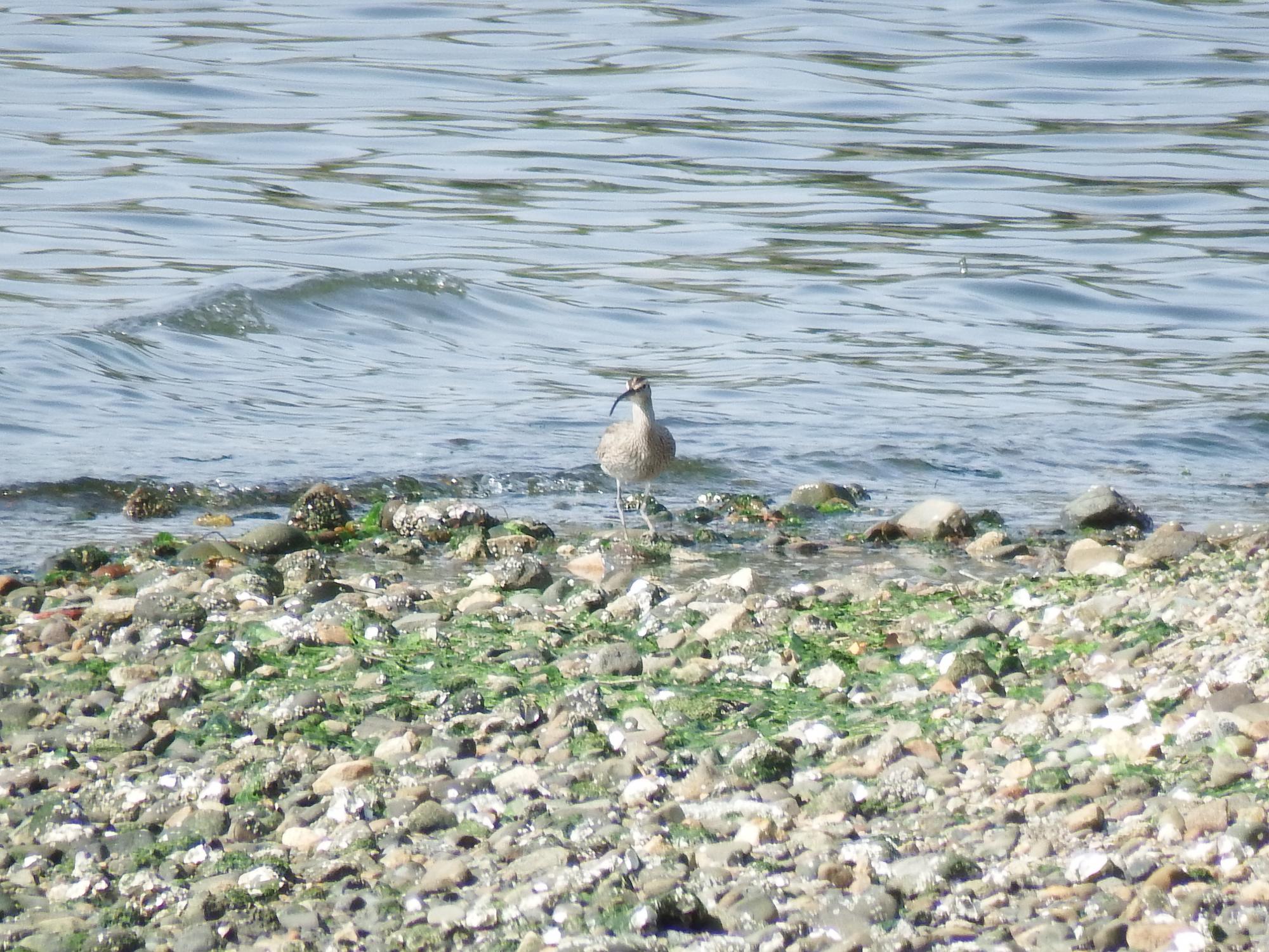ハマシギが現れました。左岸を歩いているときにハマシギらしき50羽くらいの軍団が上空を飛んでいるのを見たのですが、あとのみんなは見当たりません。