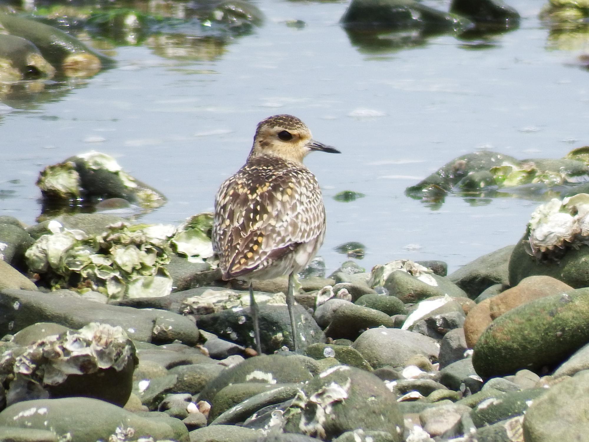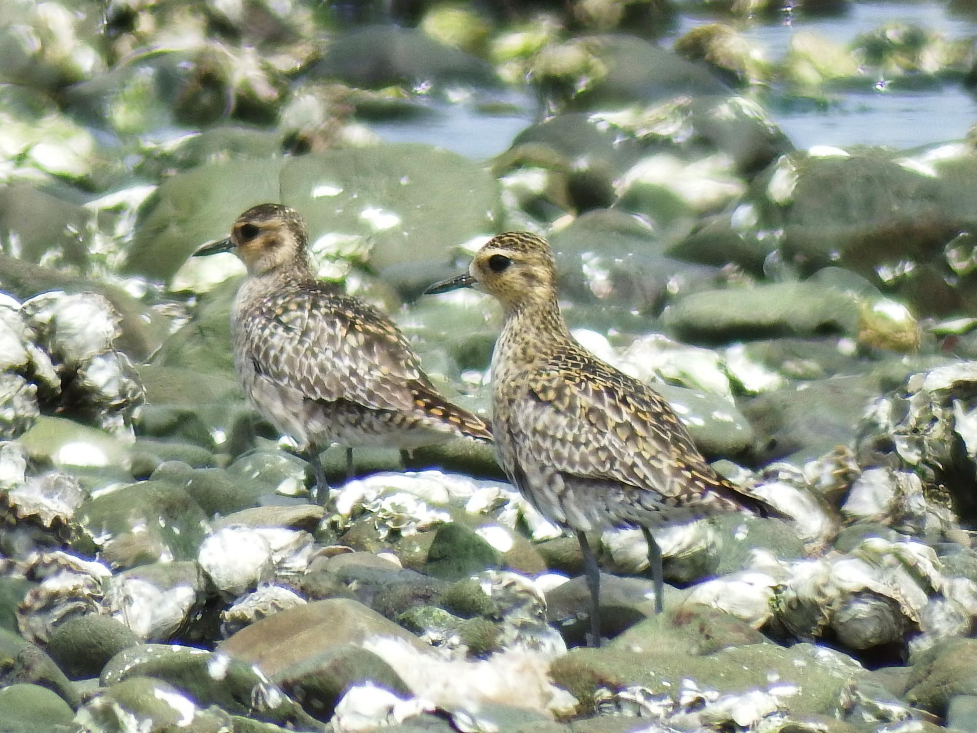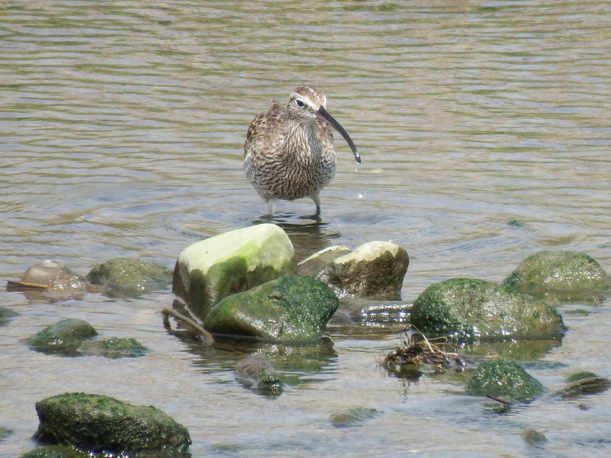 ハマシギが現れました。左岸を歩いているときにハマシギらしき50羽くらいの軍団が上空を飛んでいるのを見たのですが、あとのみんなは見当たりません。