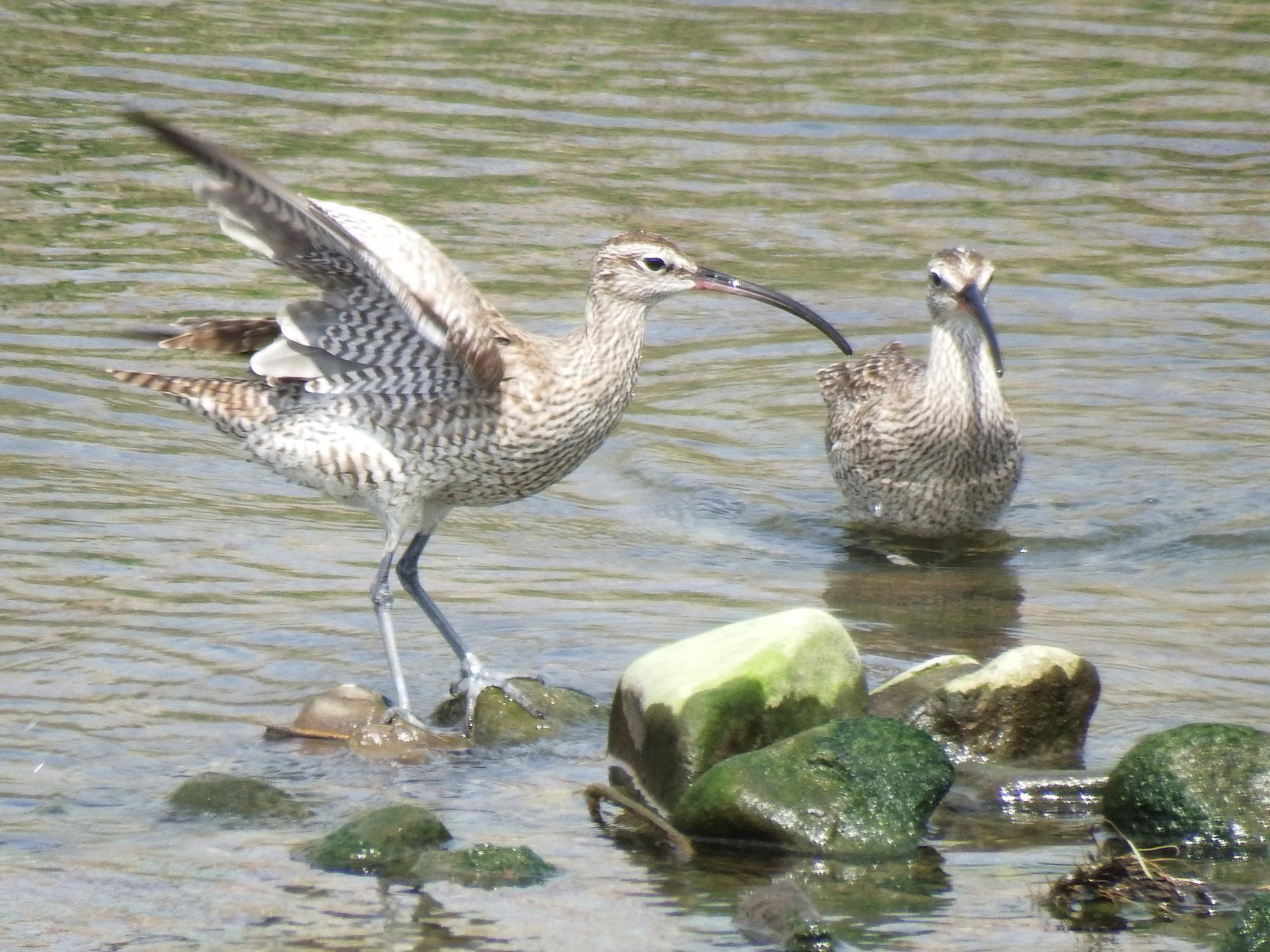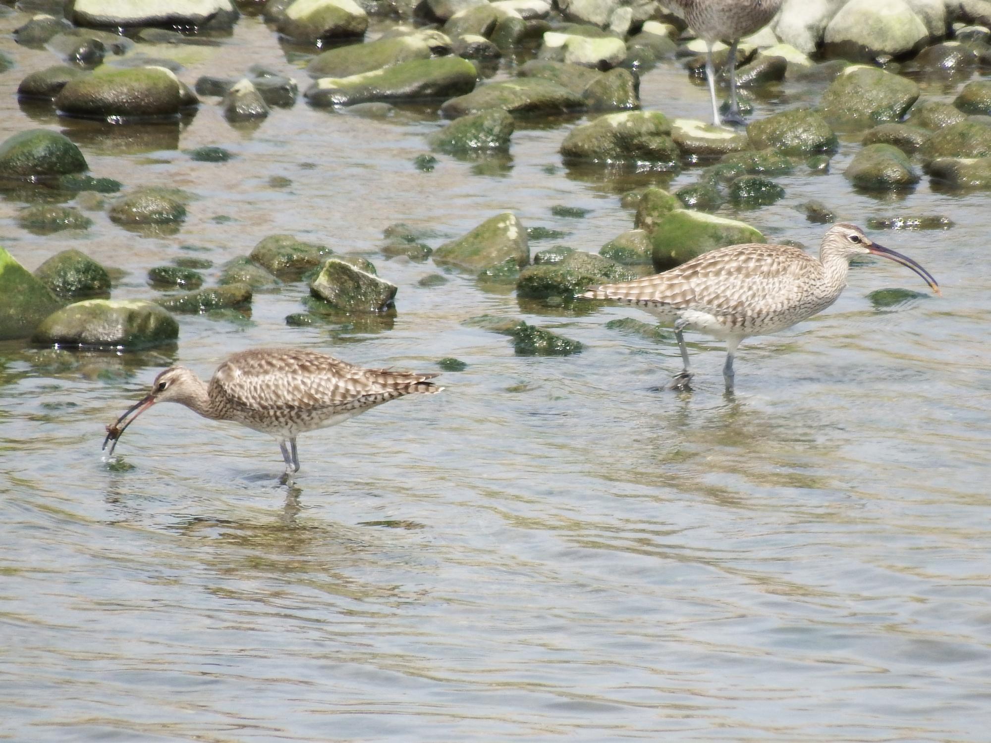 チュウシャクシギの特徴、頭頂の白い縦の線もよく見えます。