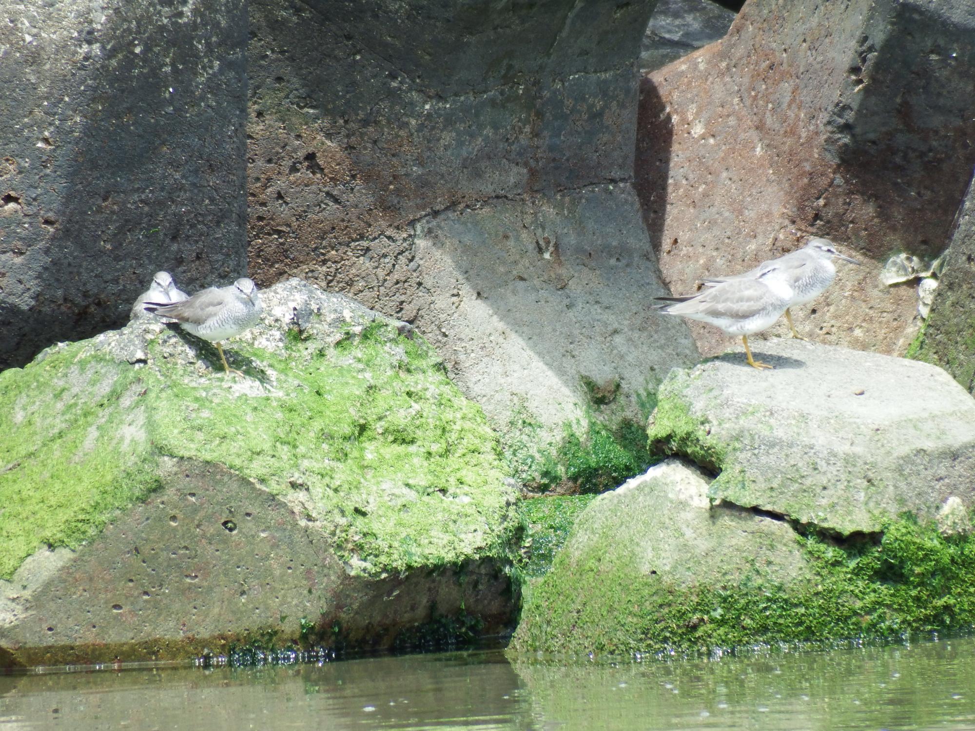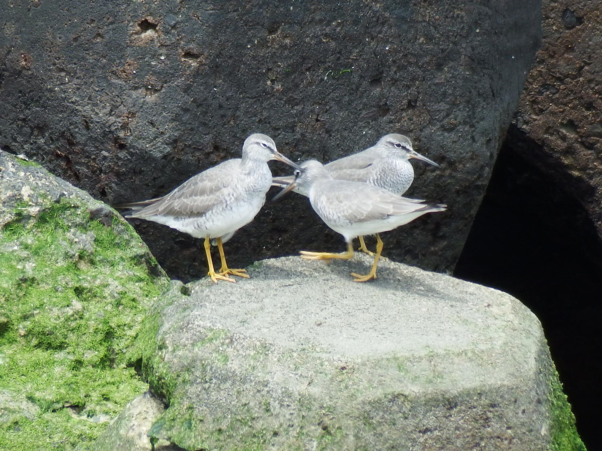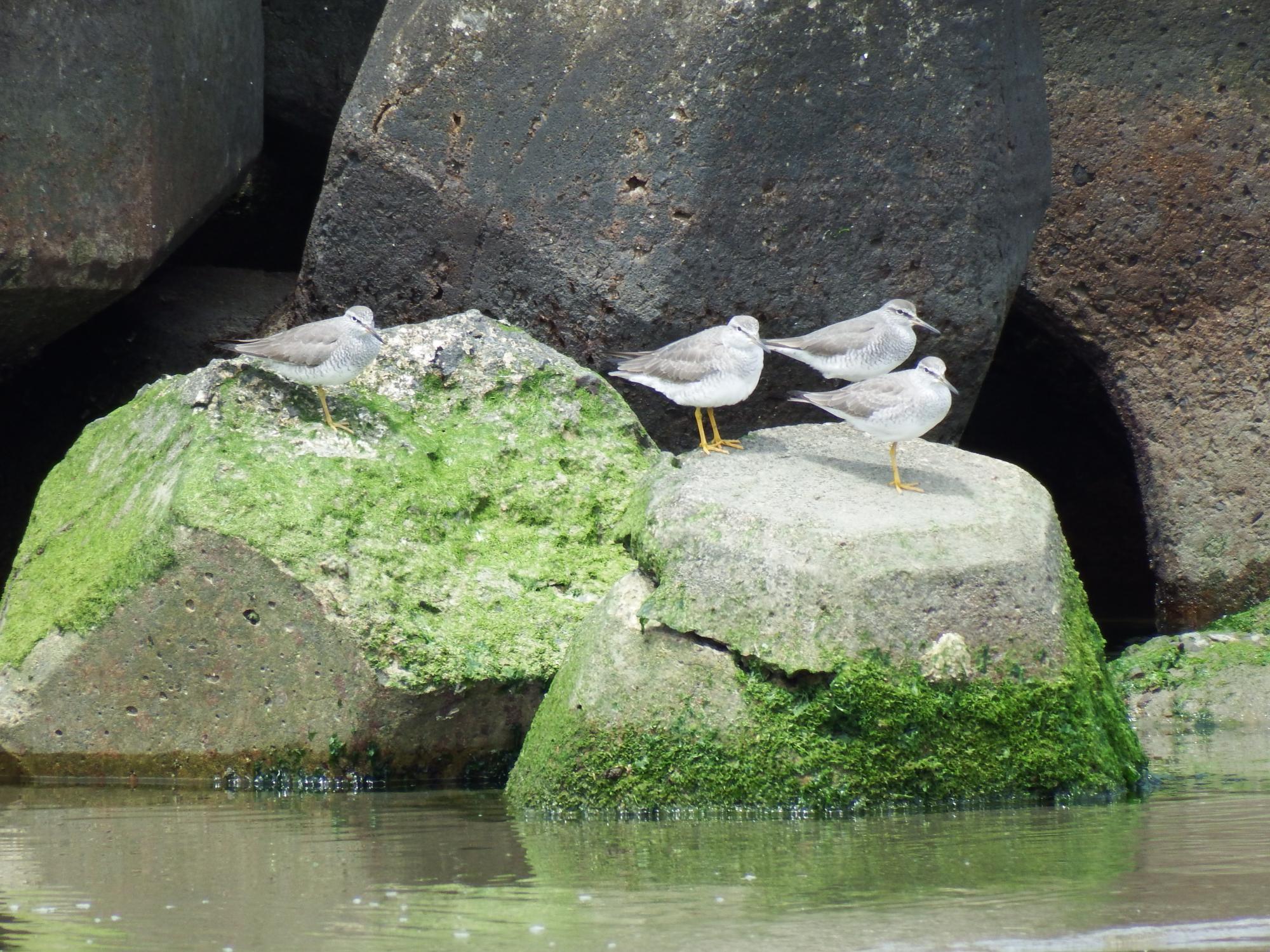 尾崎の浜のテトラポッドにキアシシギが4羽。