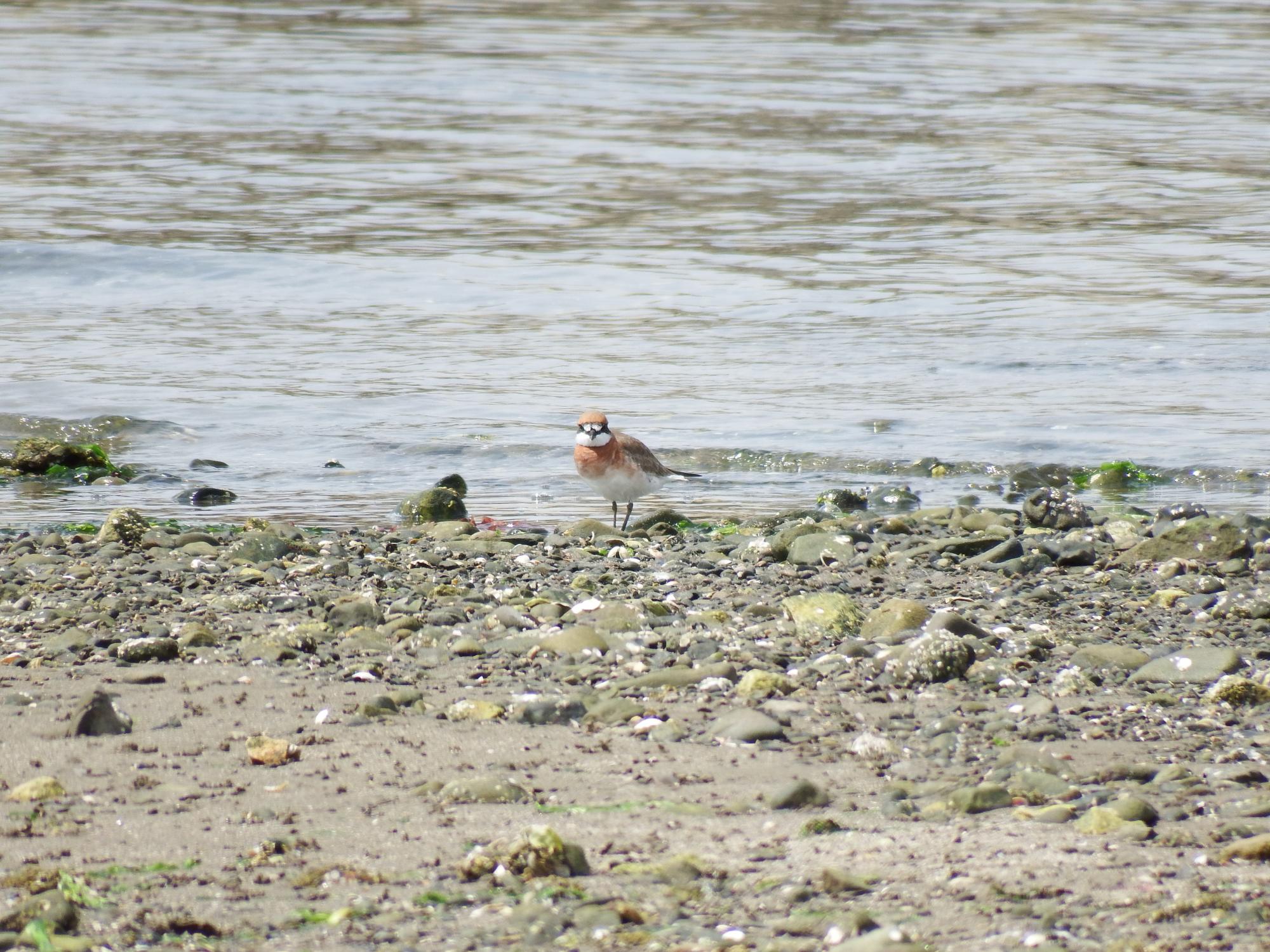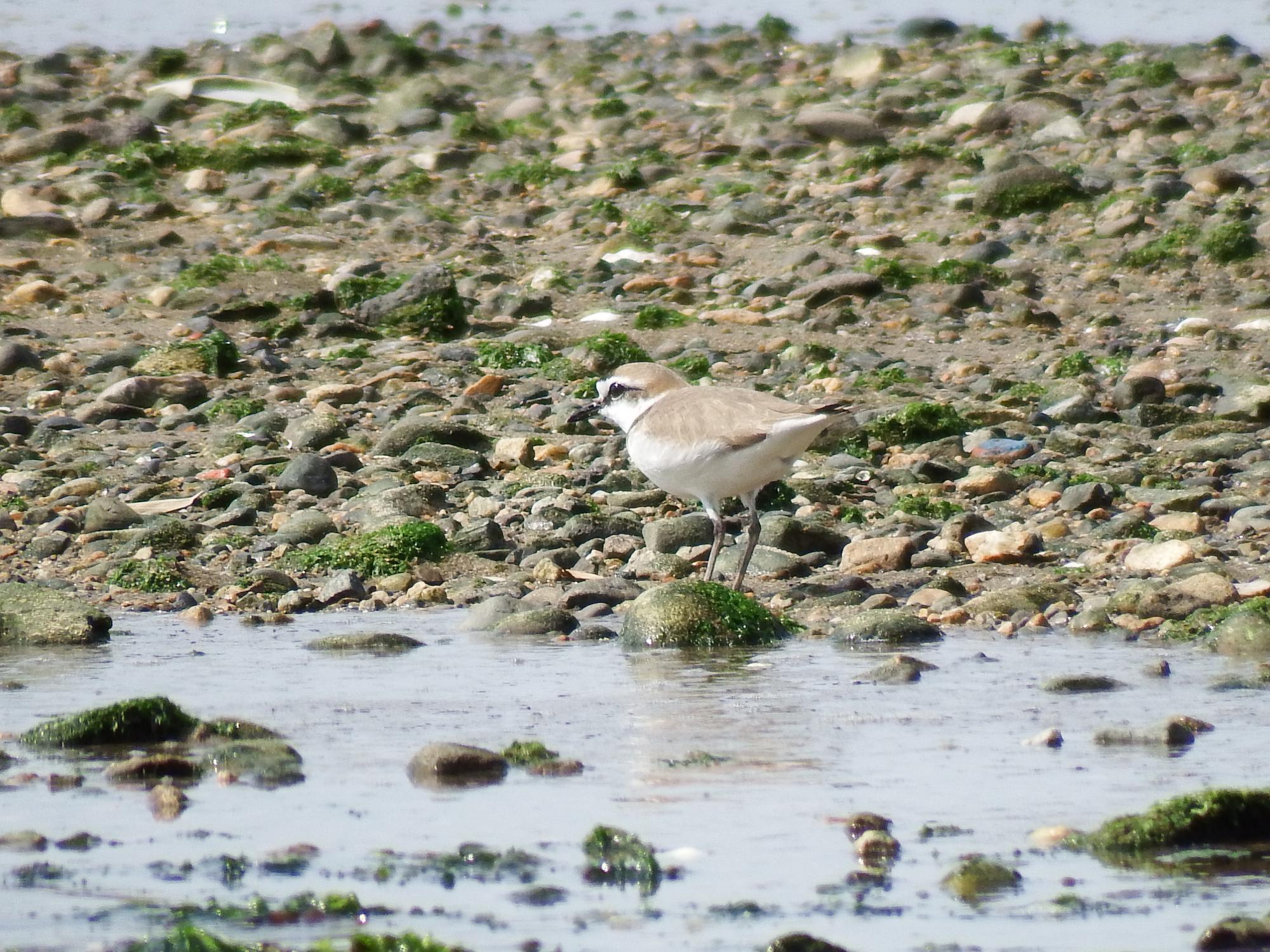 一見何もいなさそうですが、河口の中洲にシロチドリ、ほとんど保護色です。