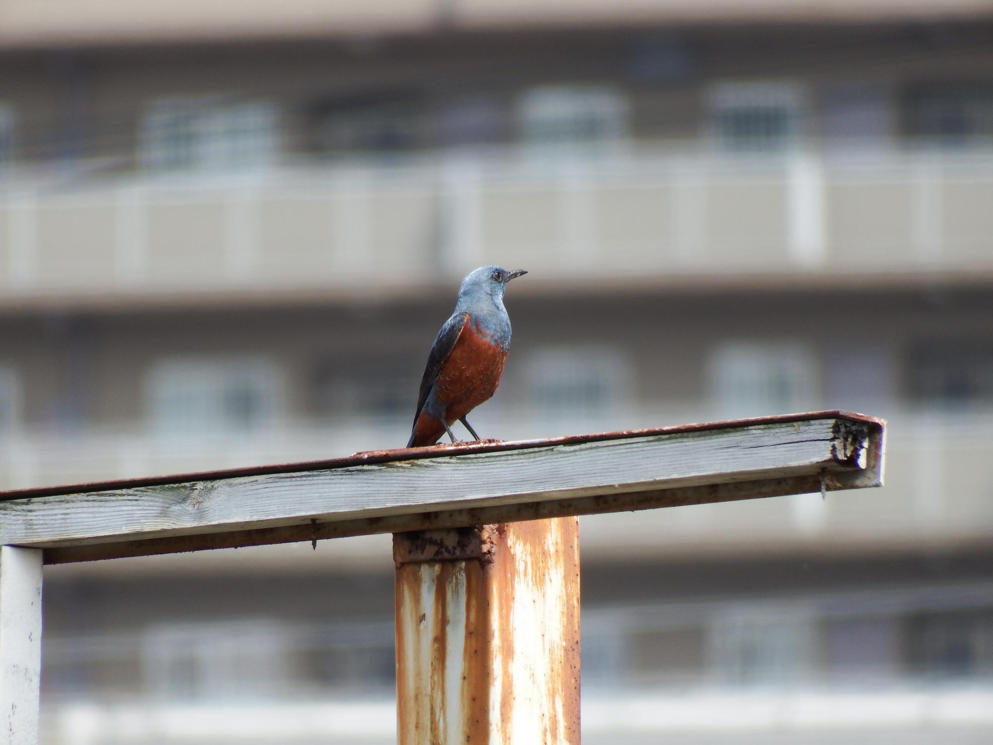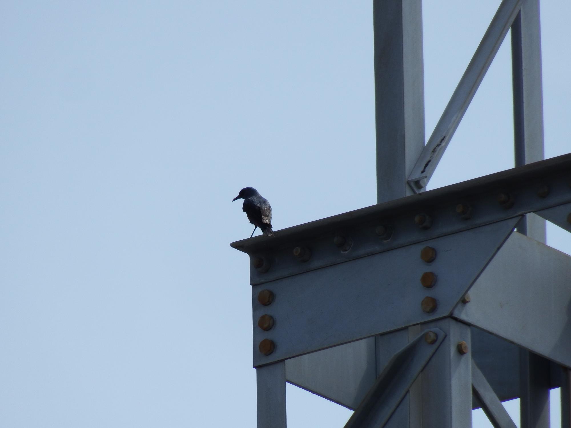 半世紀ぶりくらいに二色浜駅で下車、イソヒヨドリが出迎えてくれました。電車がきても遠くへは行かず架線柱の上に移動、鉄分の濃そうなイソヒヨドリです。