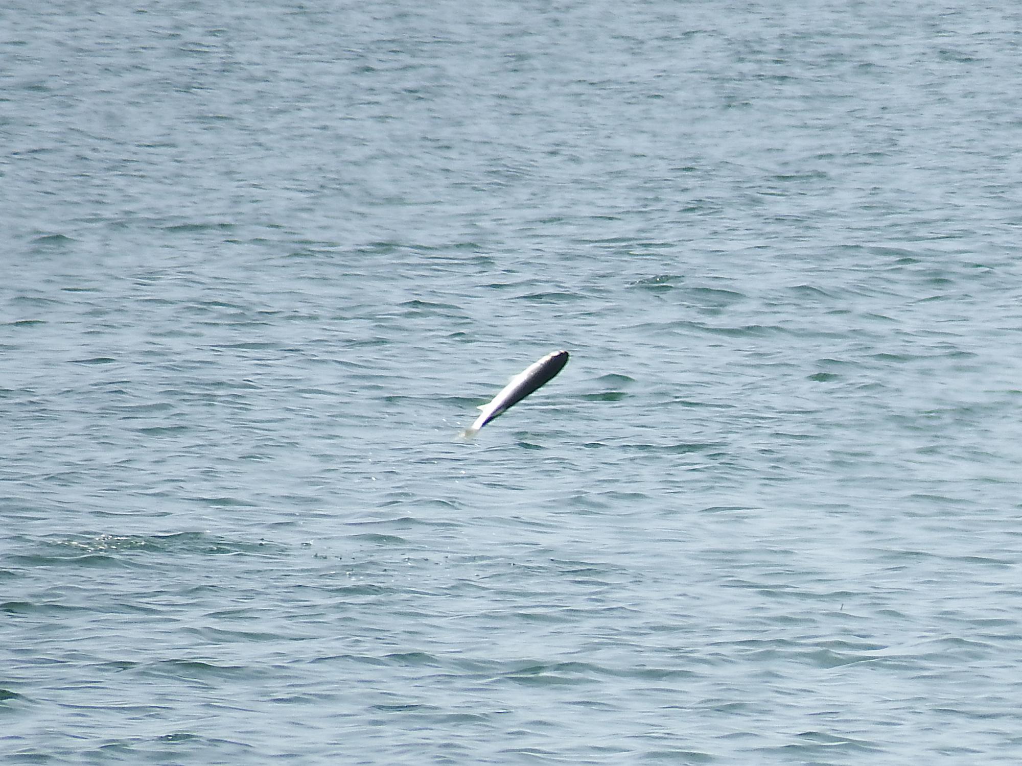 二色浜でバーベキューの人たちを横目に近木川河口にやってきました。50cmくらいありそうな大きなボラが盛大にジャンプ、大きな水しぶきをあげています。