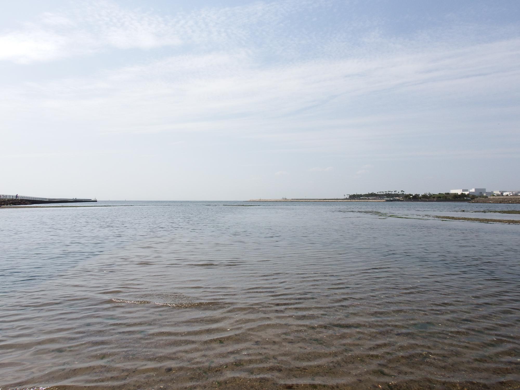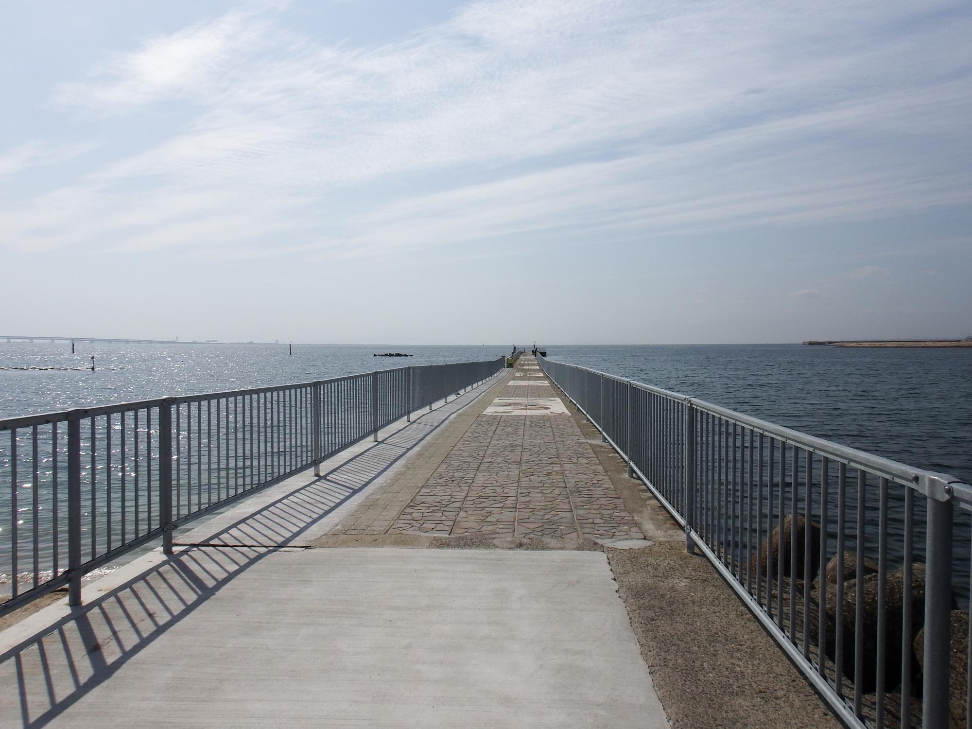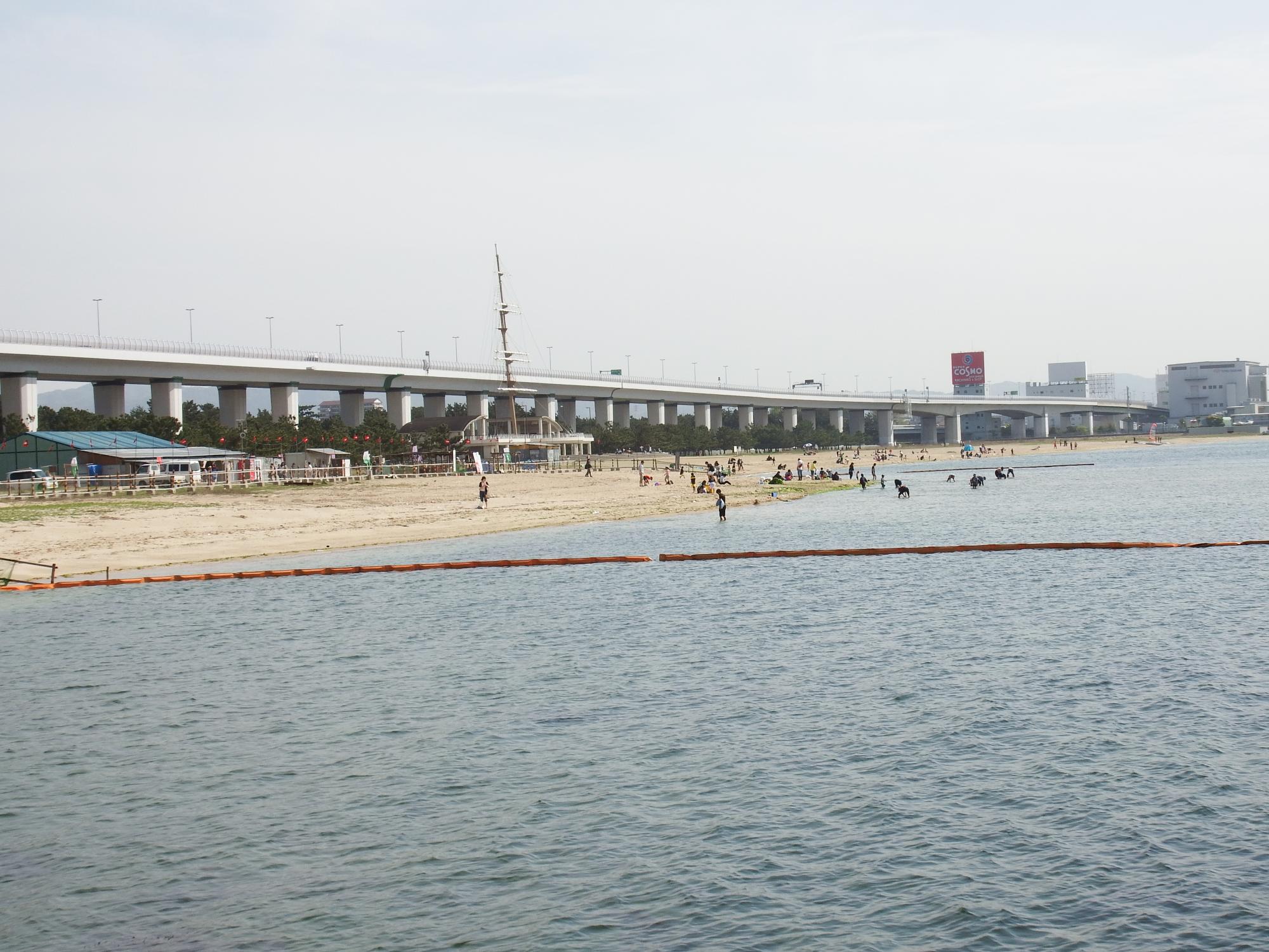 桟橋の左手に二色浜が広がります。浜寺に代わる海水浴場として開発され、自分も含め泉州の子供達にはとても馴染みのある場所です。昭和に比べ大阪湾がずっときれいになり公園もずいぶん整備されたので、人気を取り戻している様です。浜の手前の方は、潮干狩り場です。大阪府沿岸は貝毒が発生しているはずですが、通常通り営業しているのはなぜ?