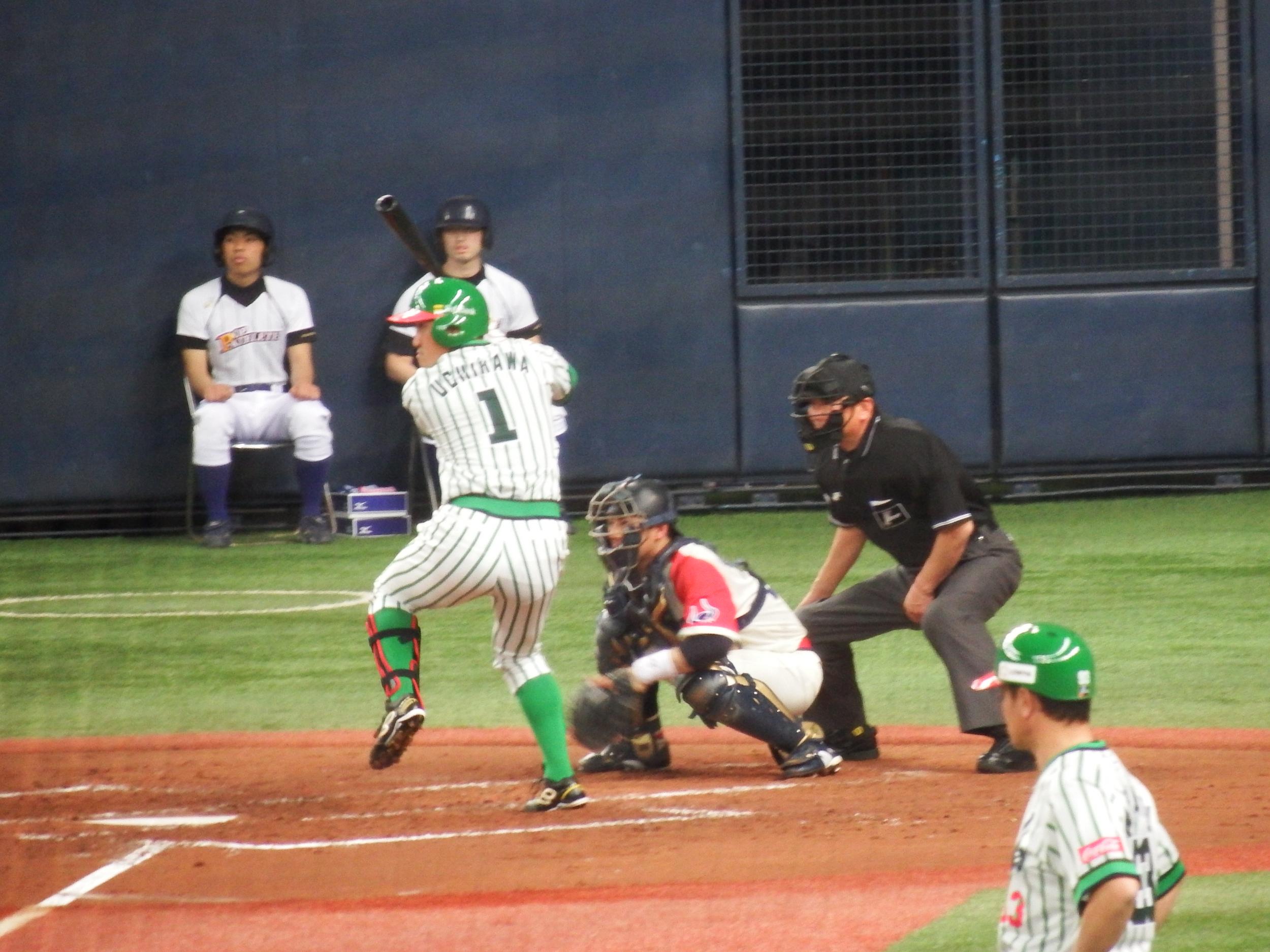 7回表、先頭のムネリンがムネリンらしく初球をセンター前へクリーンヒット。