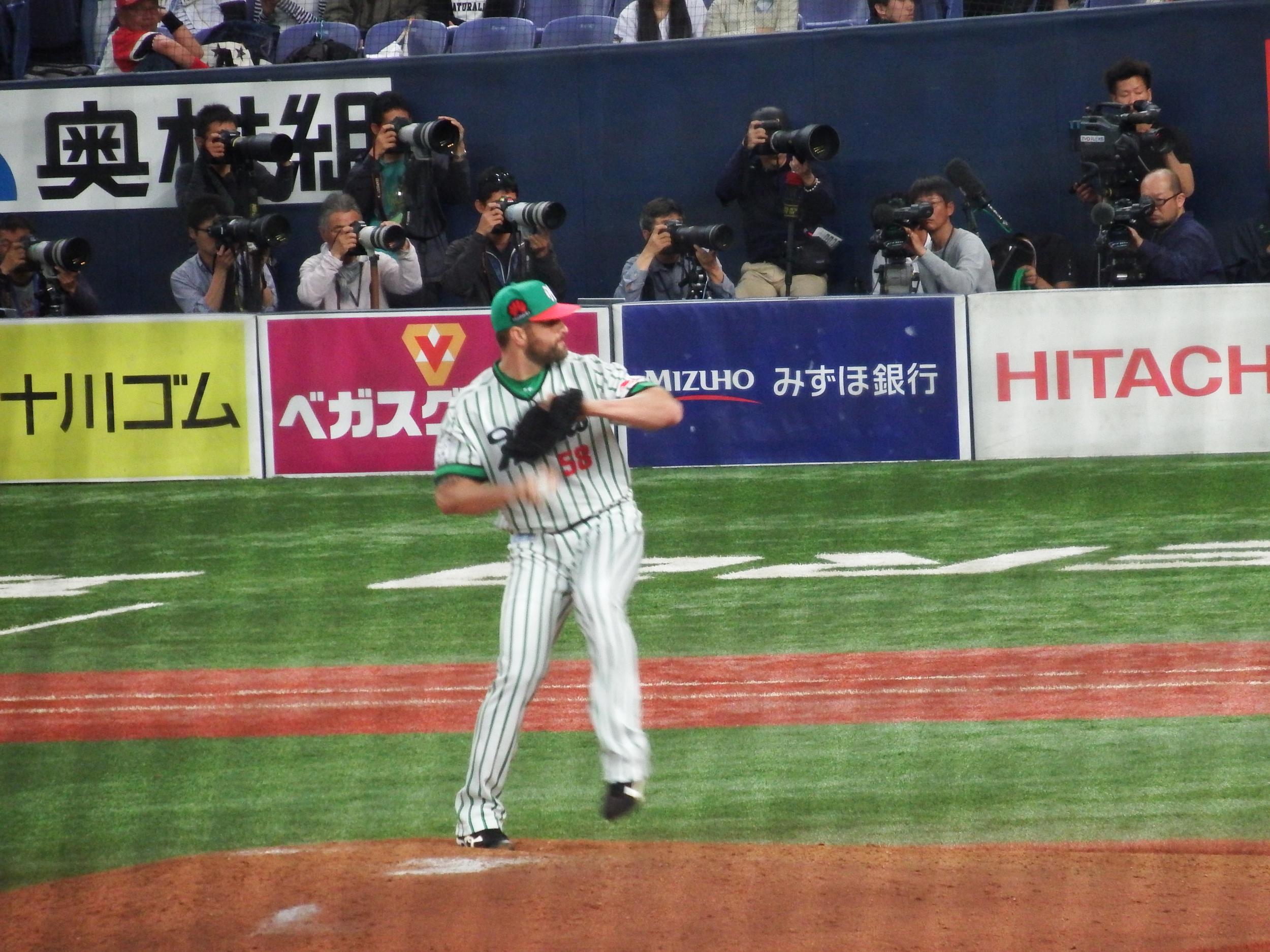 早速魅せてくれました。4回裏、一打逆転の場面で、センター方向への強烈なライナーをダイビングキャッチ!もちろん写真は撮れなかったのでこちらをどうぞ。