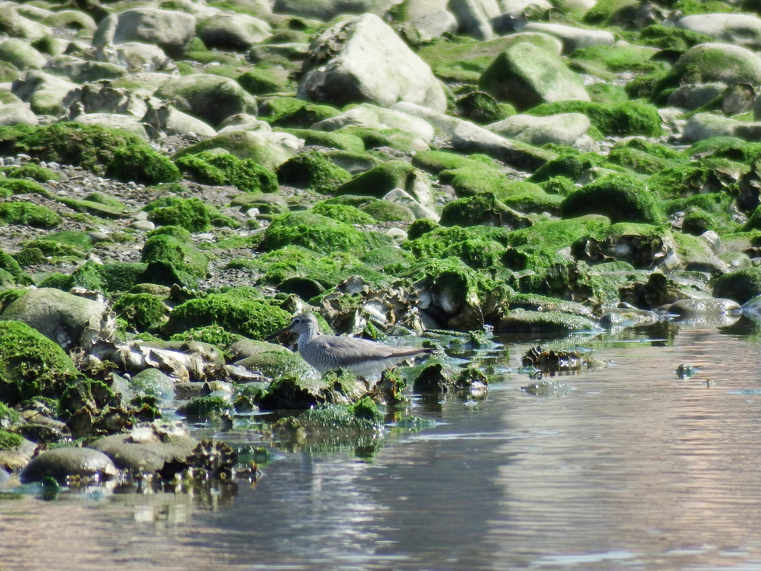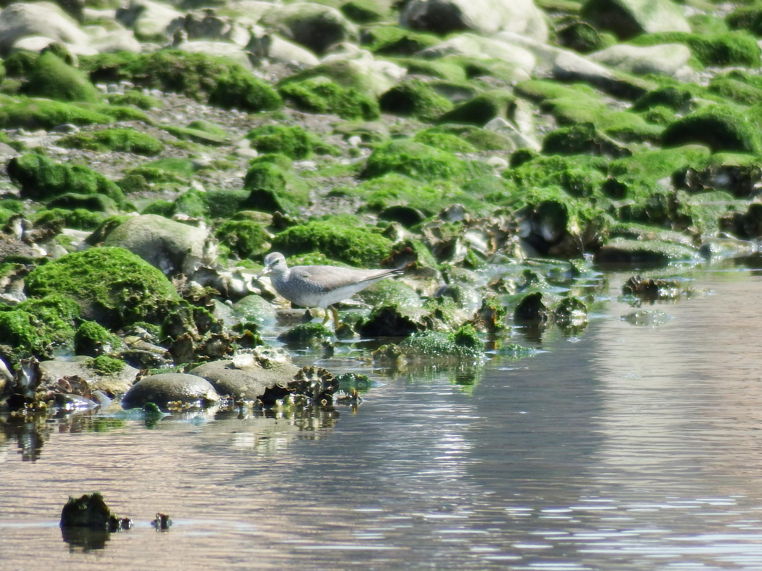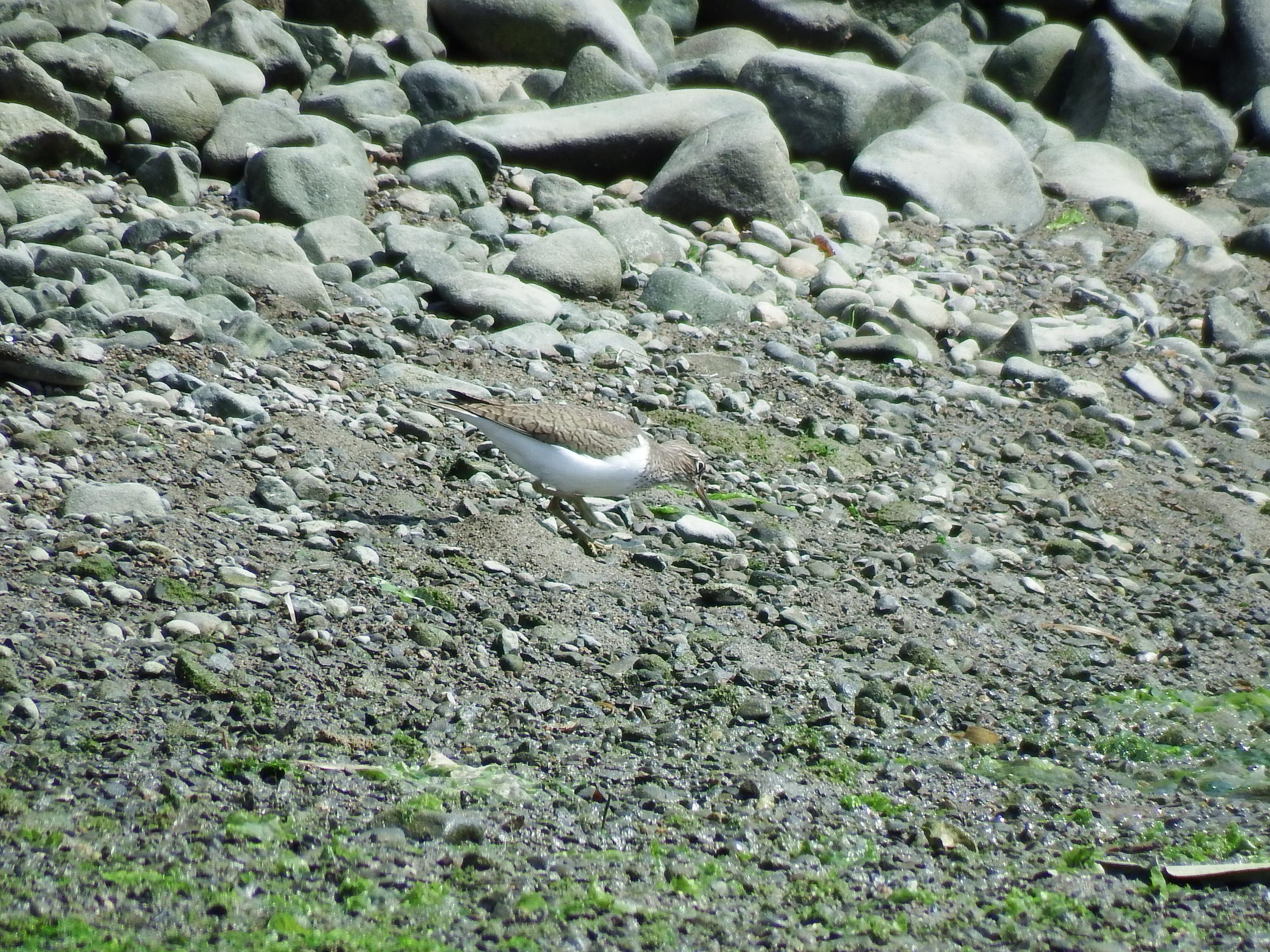 シロチドリを撮ったつもりがトウネンも一緒に写っていました。キアシシギがいっぱいいると聞いた川の少し上流に向かってみます。
