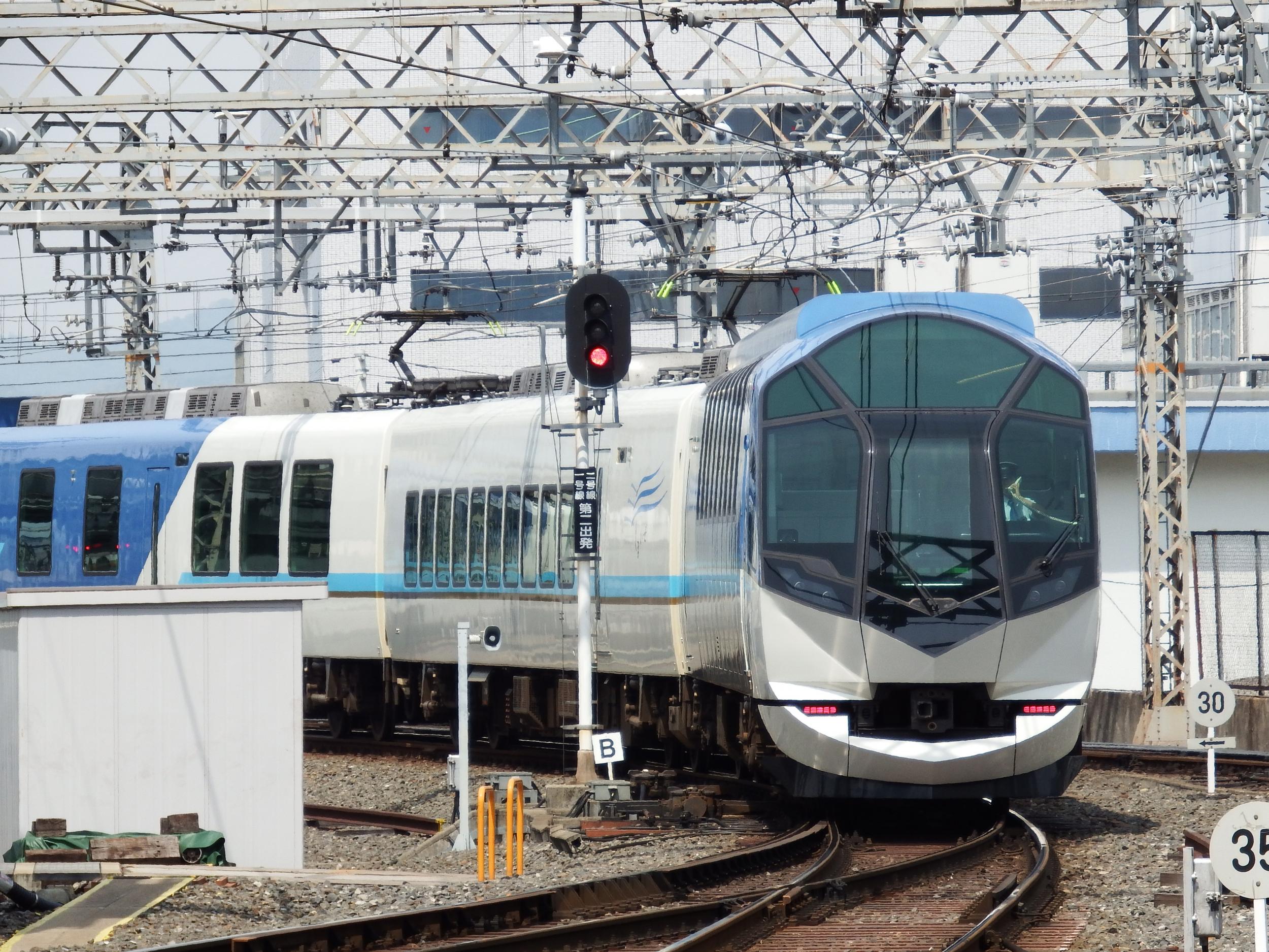 高の原駅2番線に到着、一旦引き込み線に引き上げます。