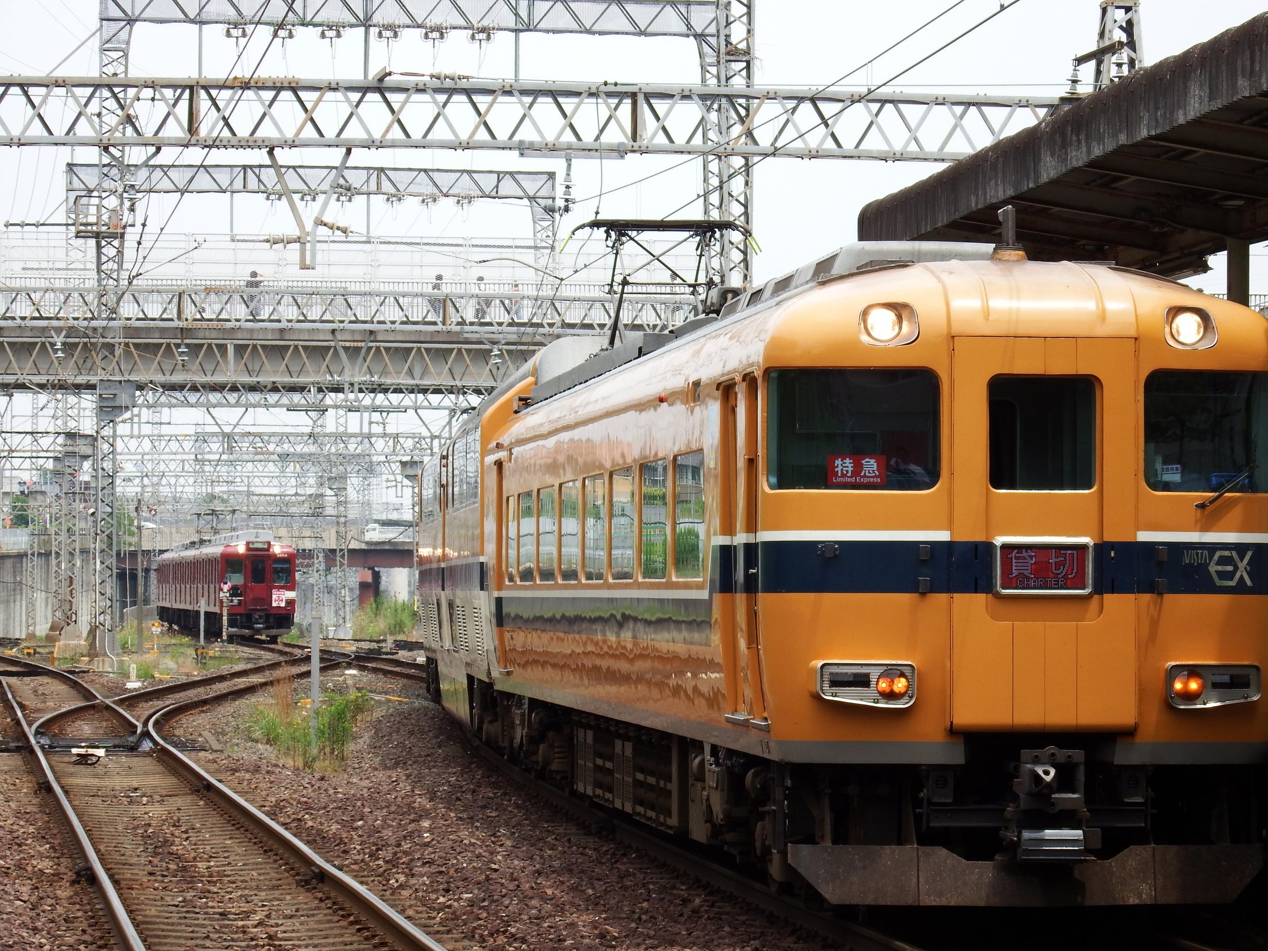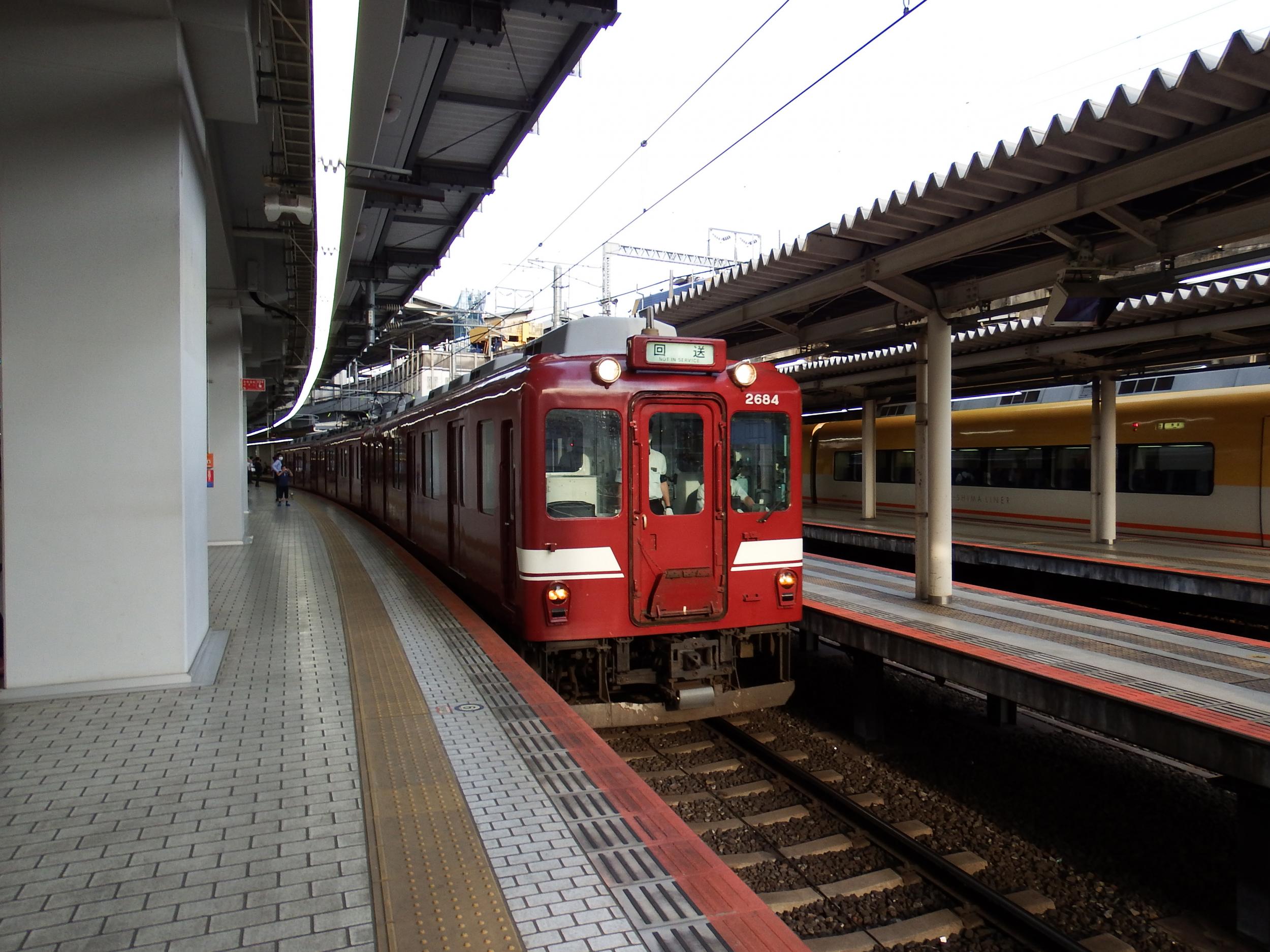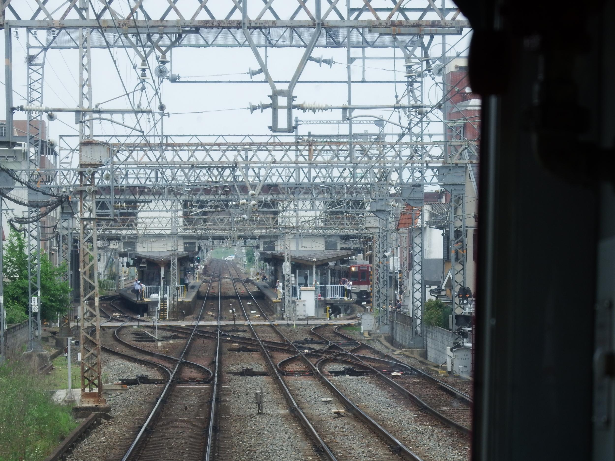 向島で再度折り返し、小倉側に渡り線があって、4番線からそのまま西大寺方向へ折り返せるようになってました。赤茶一色の近鉄電車、一瞬昭和へタイムスリップした感覚です。