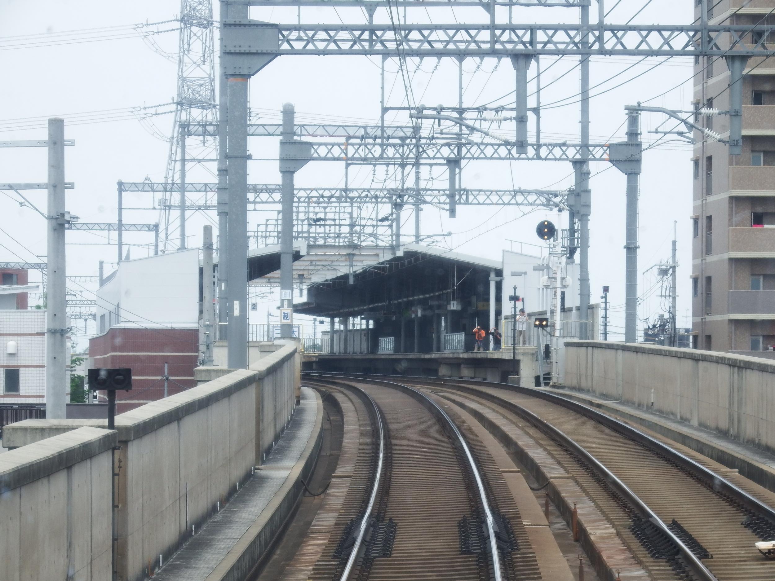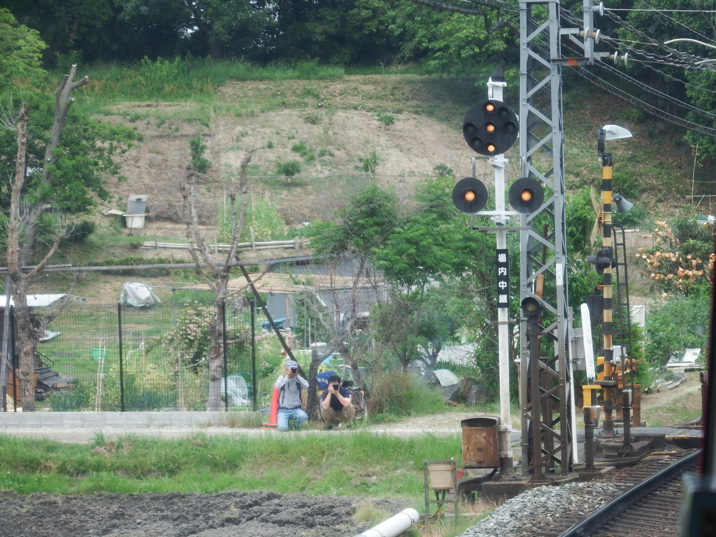 自分の鳥見定点観察ポイントのひとつ草内への最寄り駅、興戸を通過。少年たち5人がひとかたまりになって撮ってます。正座してレンズを回している男の子が何ともいえないです。つられたように後ろのお姉さんもスマホで撮り鉄。(ぜひ、拡大してみてね!)