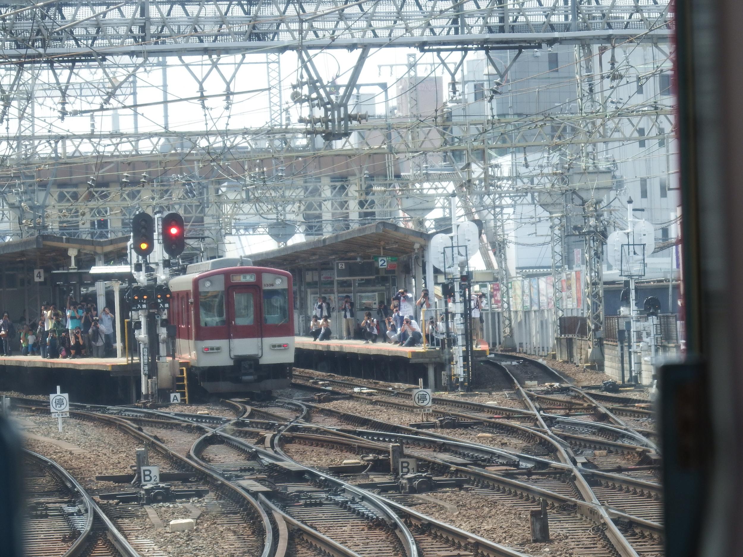 うまく行けば阪神車とのツーショットが撮れたかもと思いつつ、西大寺到着、さっきよりずっと撮り鉄さんの数が増えてます。