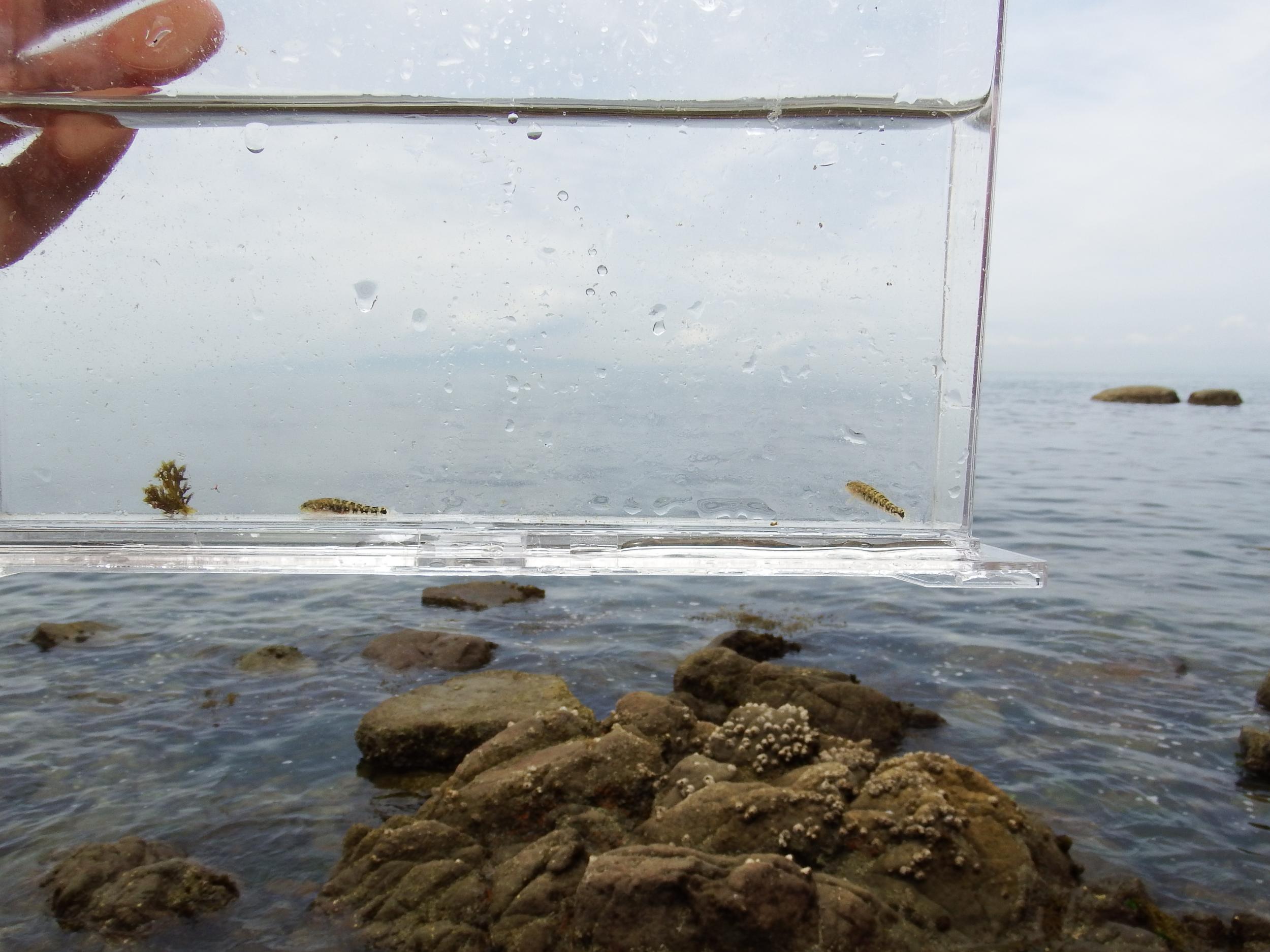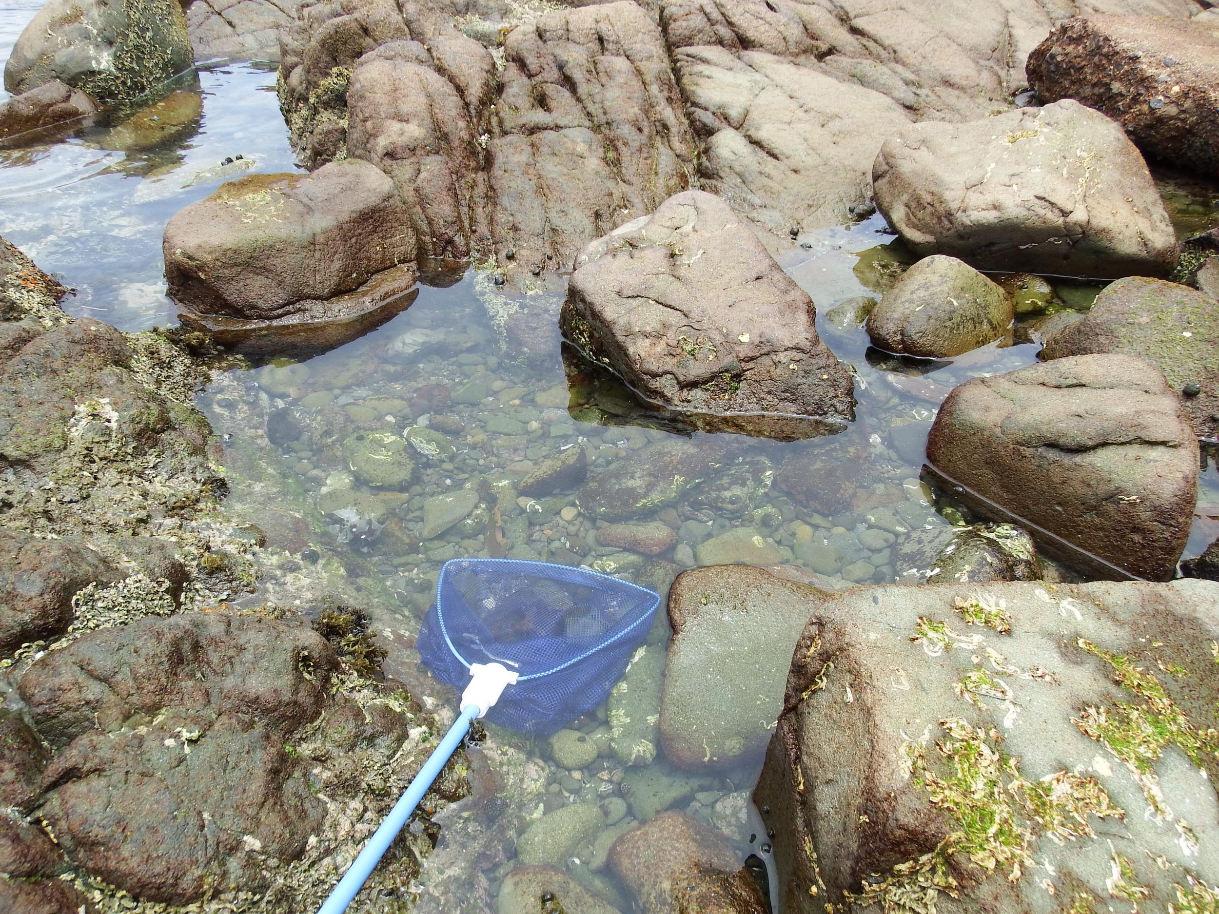 安っぽいとケチをつけた秘密兵器の生物観察セット、タモ網はしっかりしていて十分使えると分かりました。今日はカラフルな海の生物には全然会えなかったものの、海へ出かけるときには、この秘密兵器をいつもリュックに入れて行くことになりそうです。