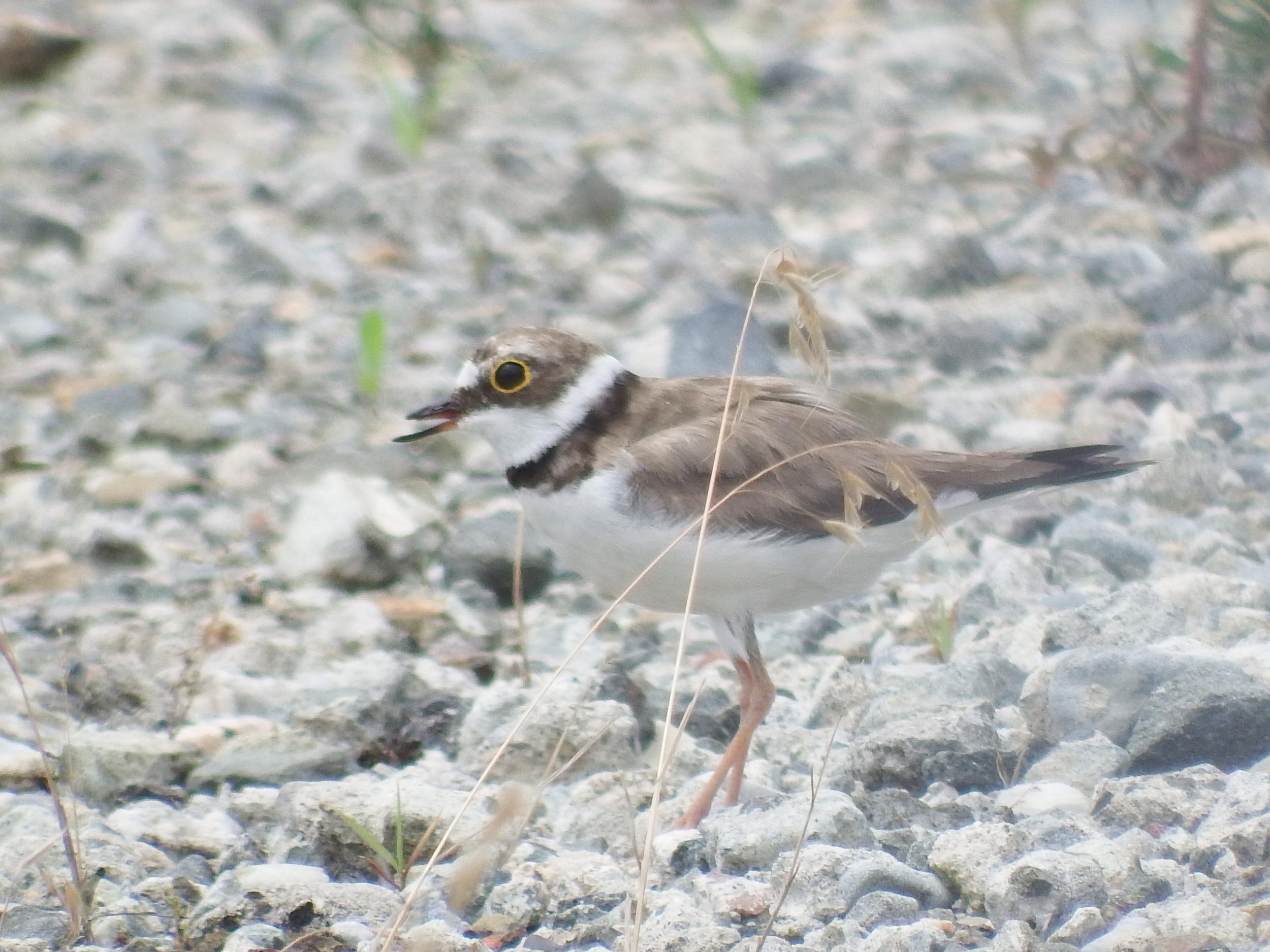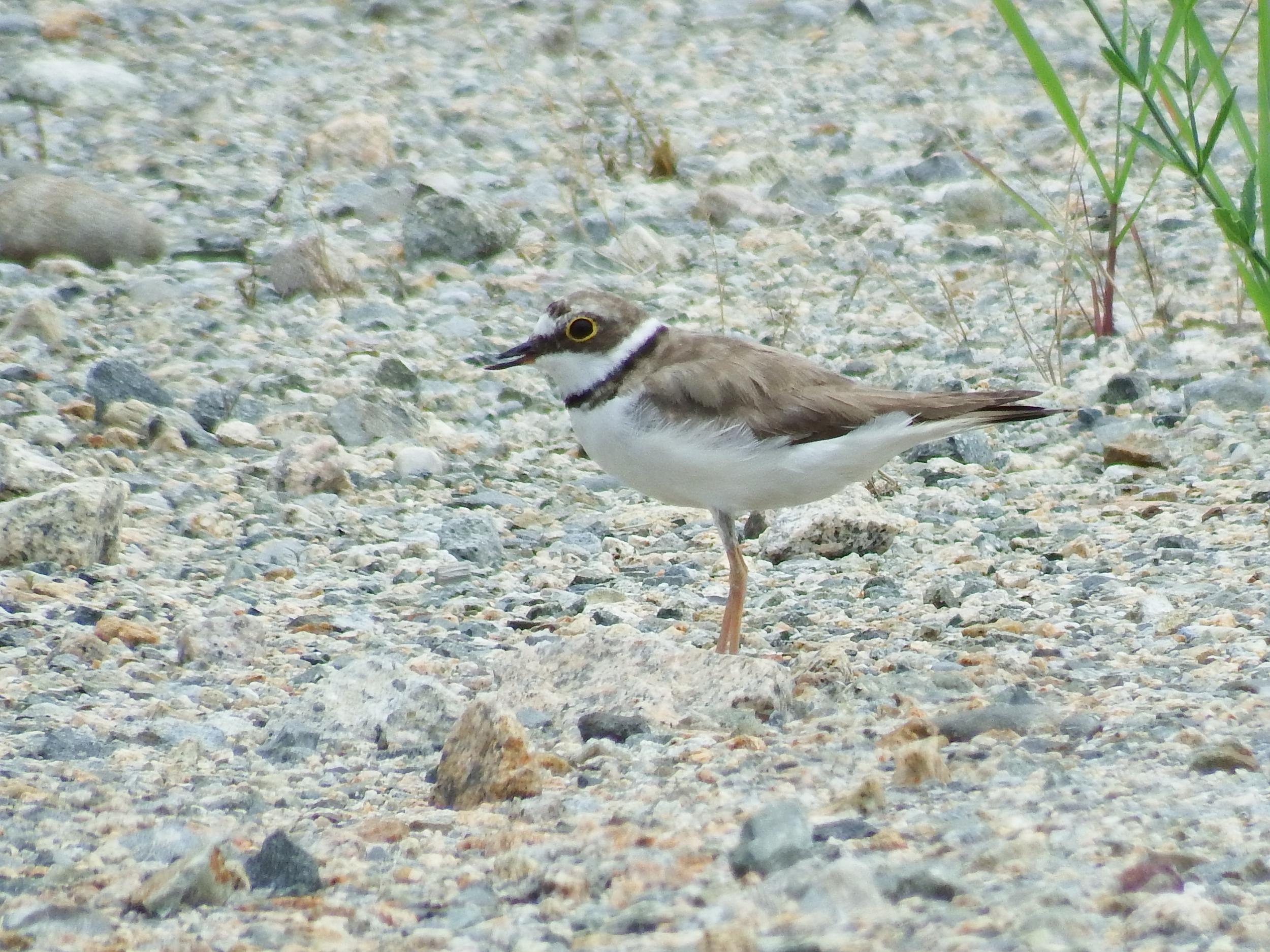 ミュー、ミューという聞き慣れたシギチの声、漁港の空き地にコチドリがいました。