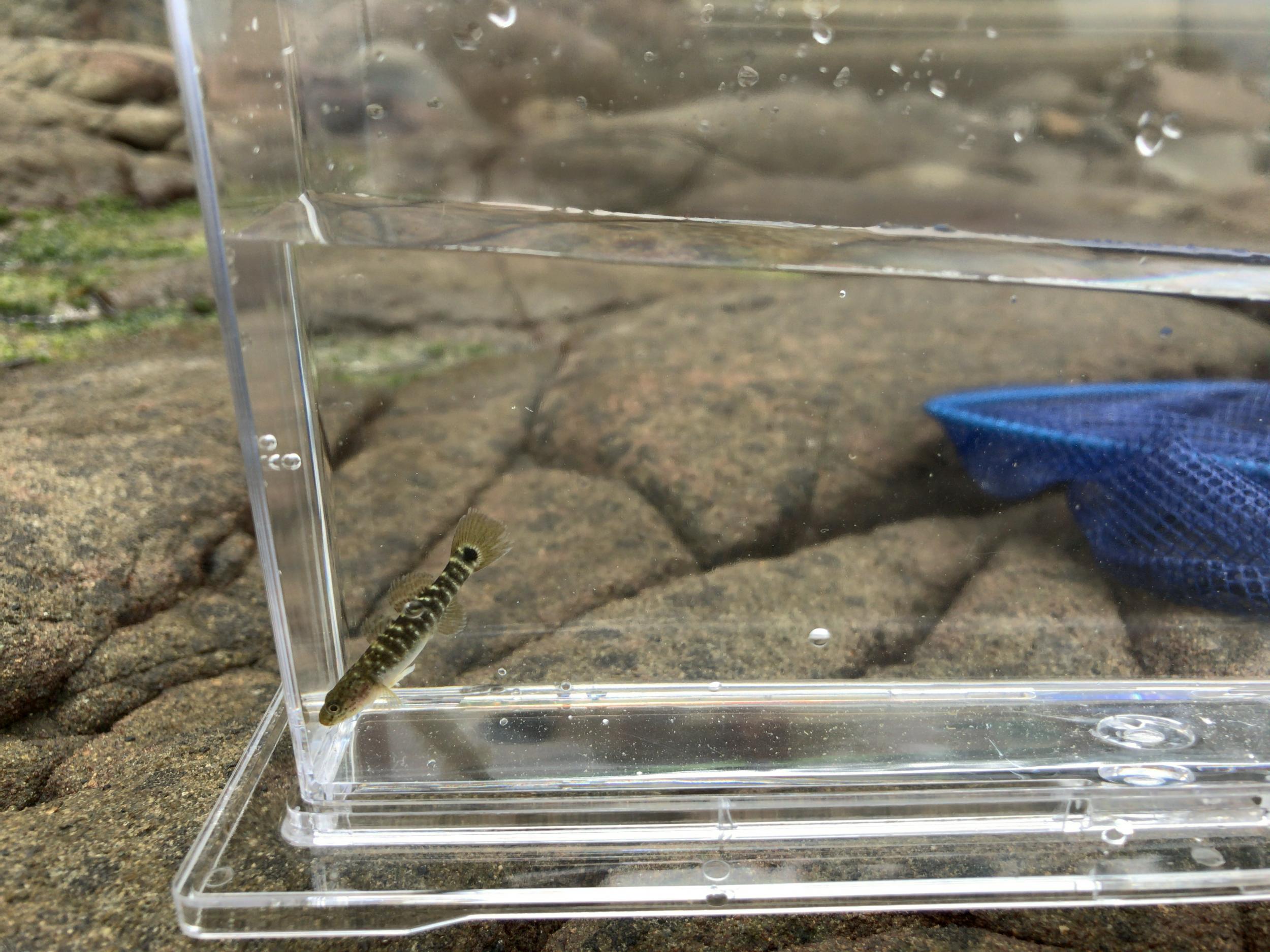 潮溜まりで簡単に捕まえられるアゴハゼ。