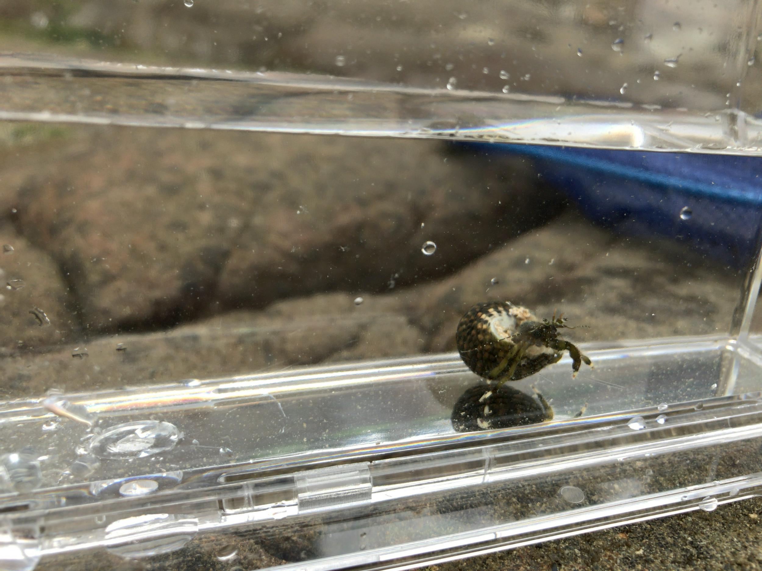 ヤドカリをアクリルケースで観察してみました。かなり大暴れするので、すぐ離してやりました。