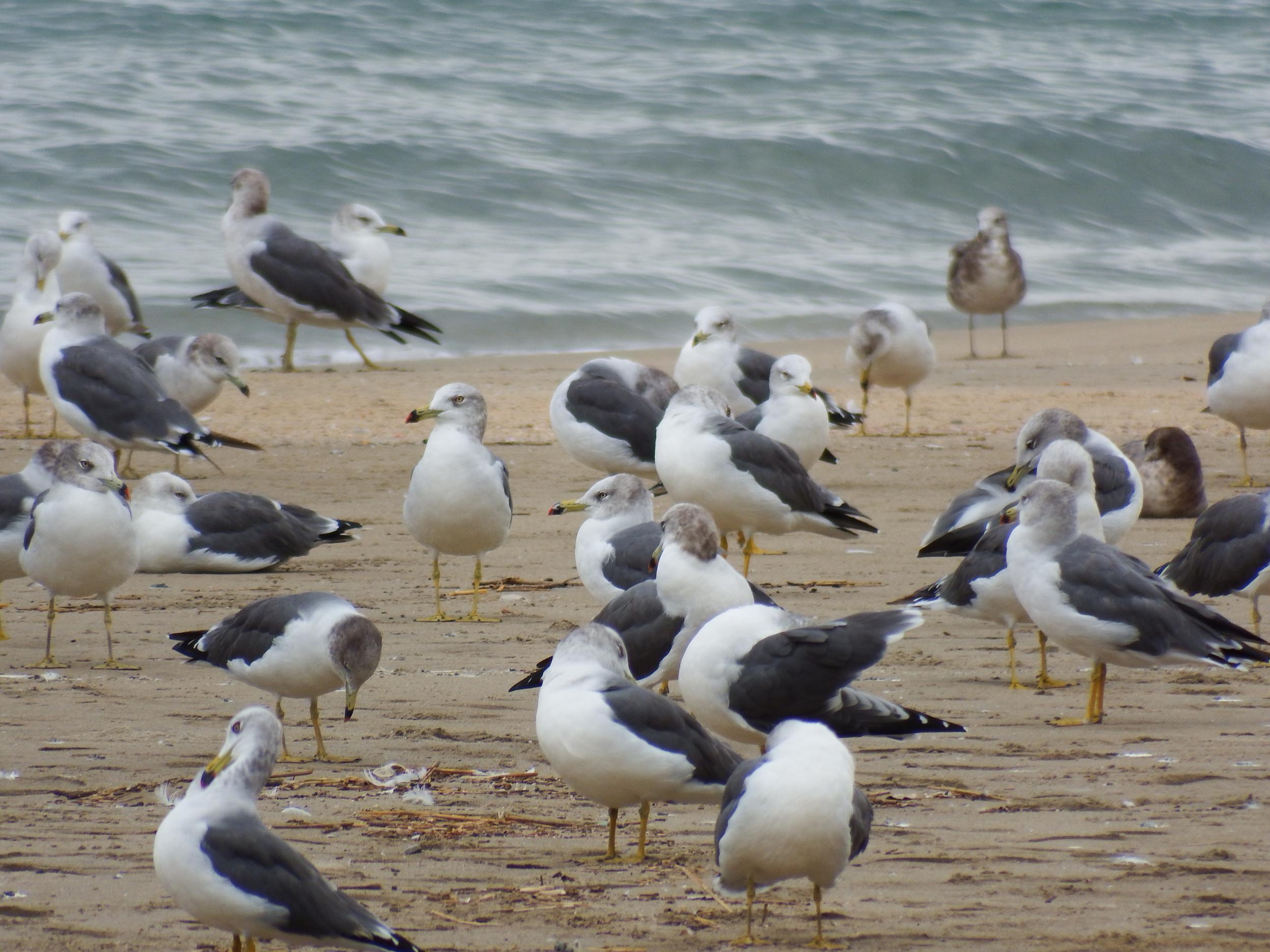 10分ほど走って浦富海岸に到着、何もいなかった浜に300羽くらいのウミネコの大集団が降り立ちました。