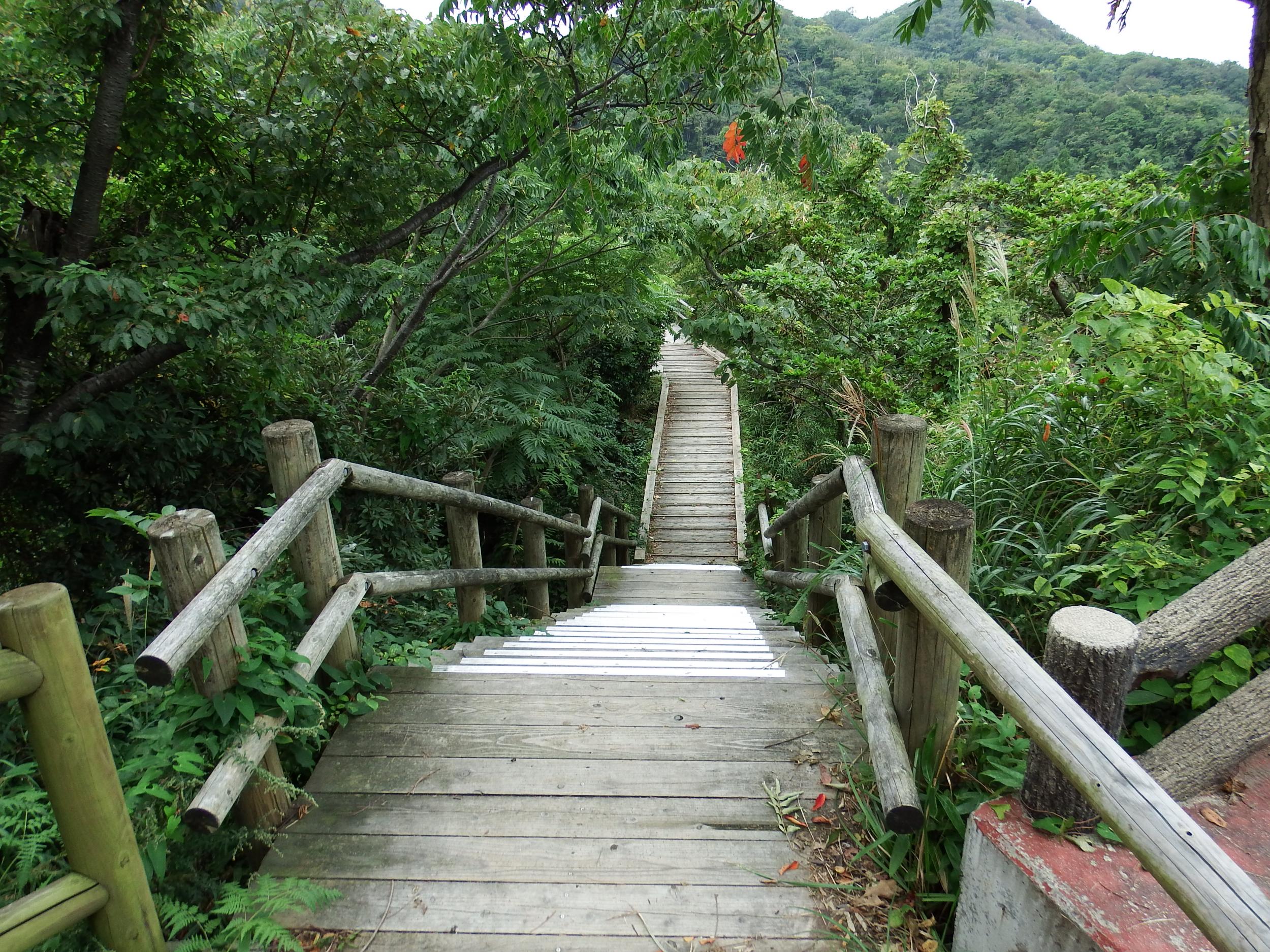 展望所から海岸へ階段の道が続いています。