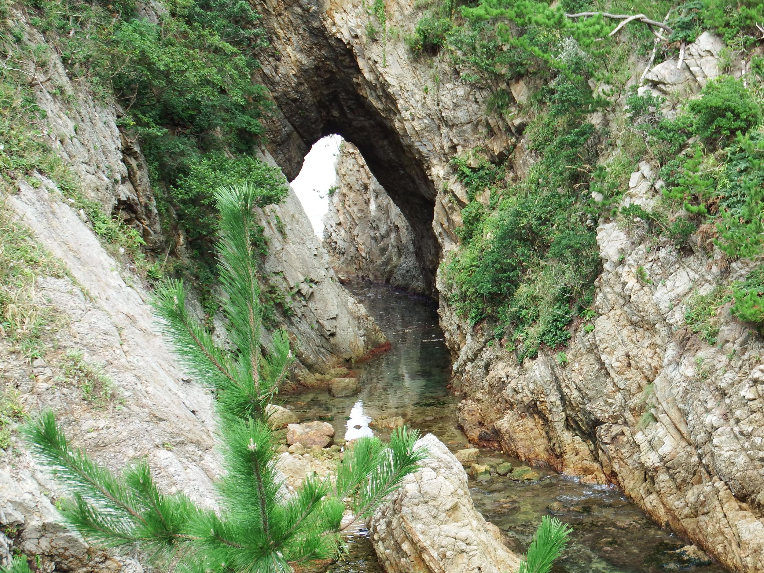 左手に水尻洞門。小さな滝のような水の流れがあって、この入江自体を水尻と呼ぶようです。