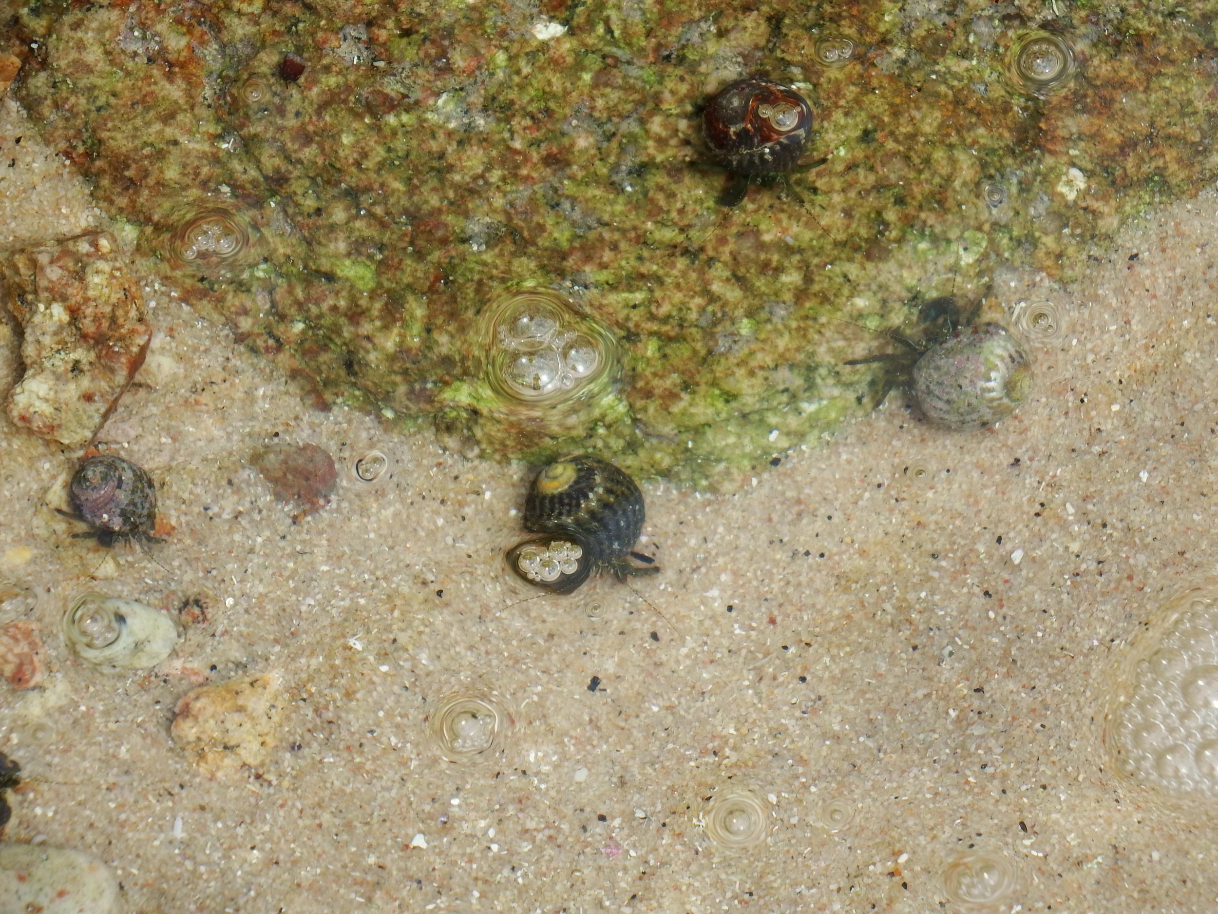 魚はいないもののヤドカリが結構います。大阪湾では見かけないキレイな貝を被っています。