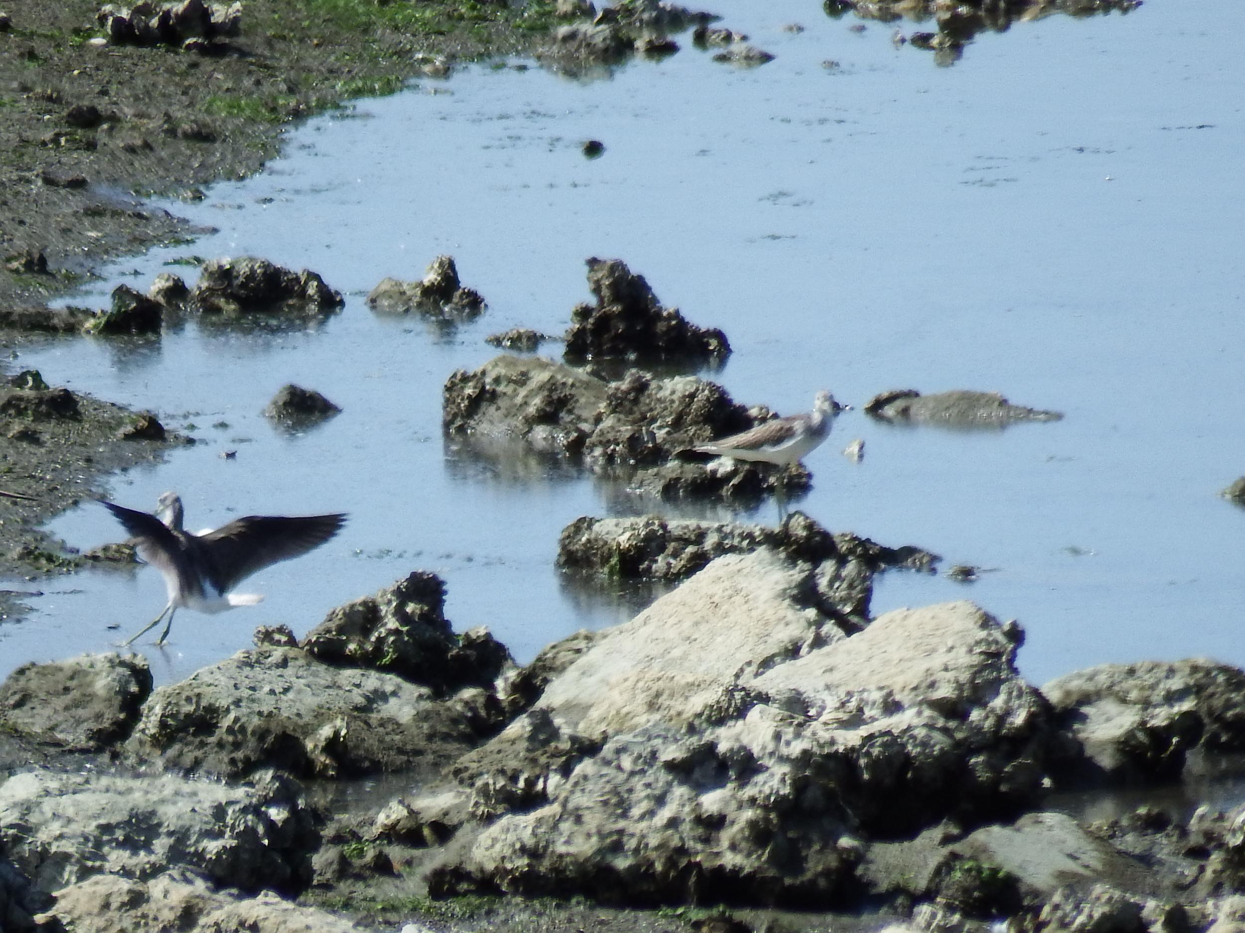 西池の手前の磯にイソシギ、じゃなくてやはりアオアシシギですね。この後、南池の向う側に飛んでいきました。