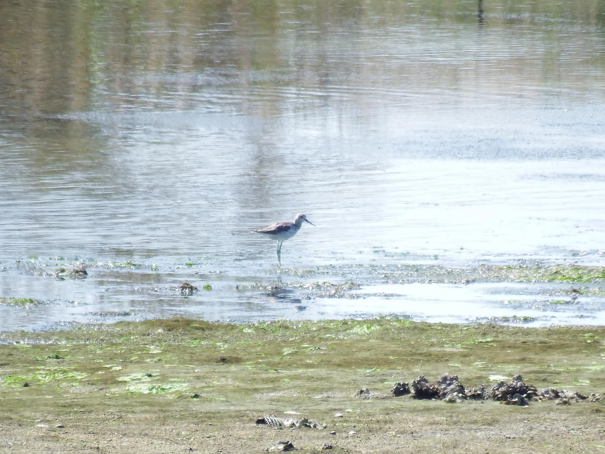 やっぱりコアオアシシギのようです。デジタル100倍ズームでもここまで、遠いです。150mくらいあります。