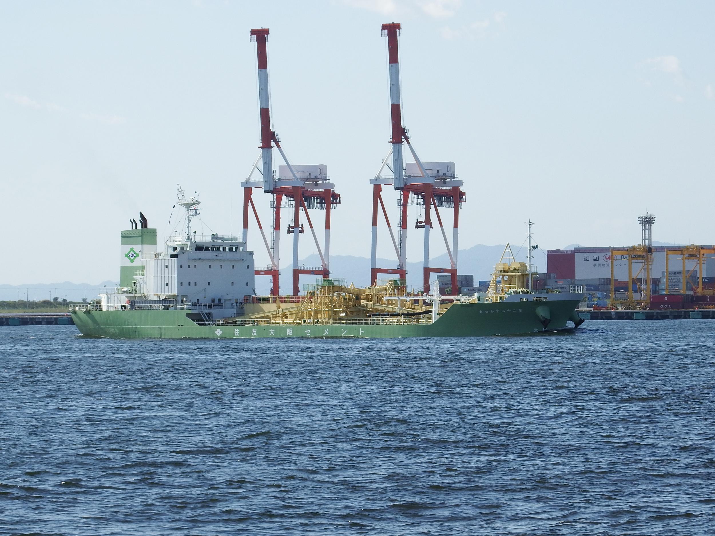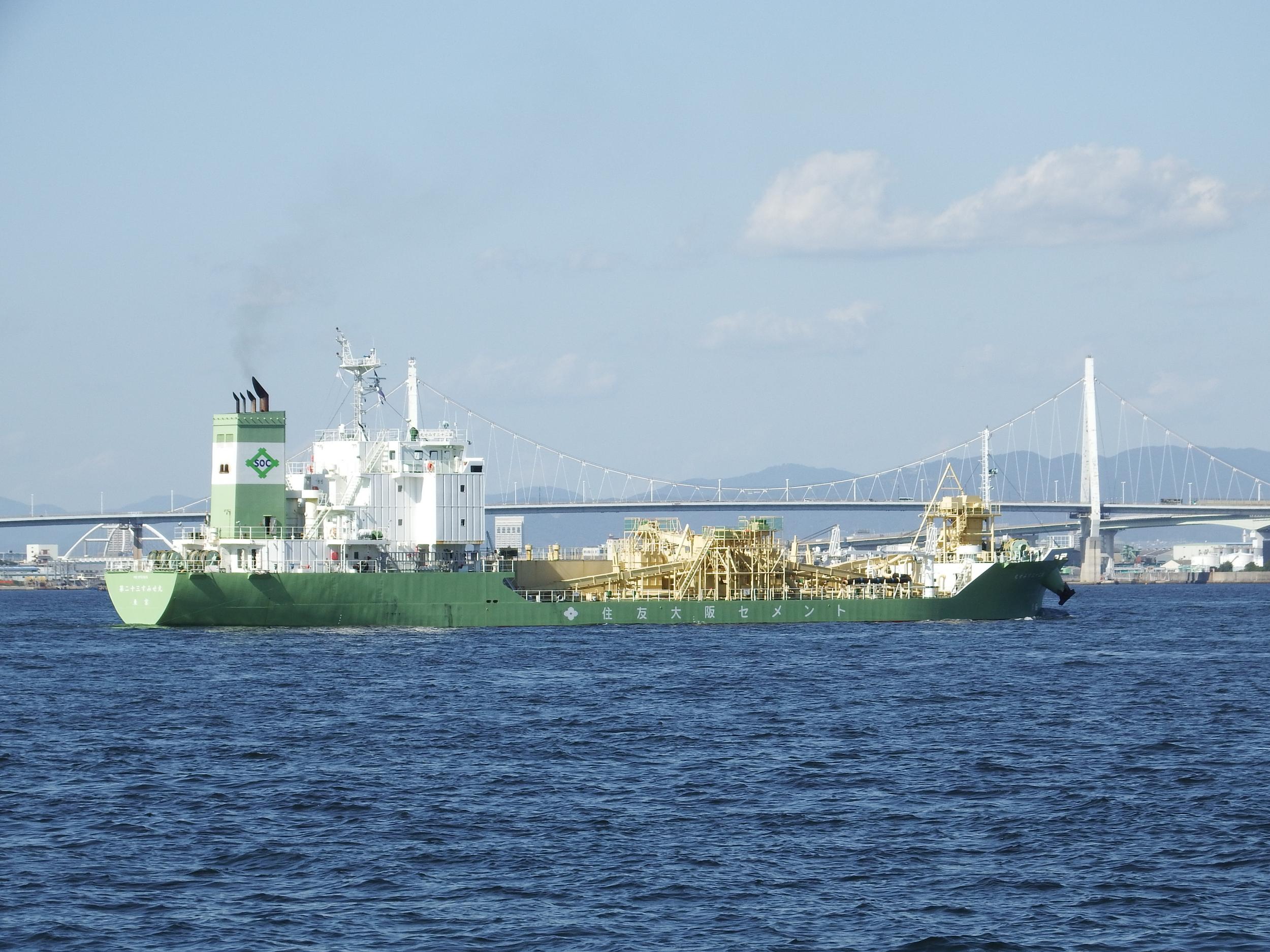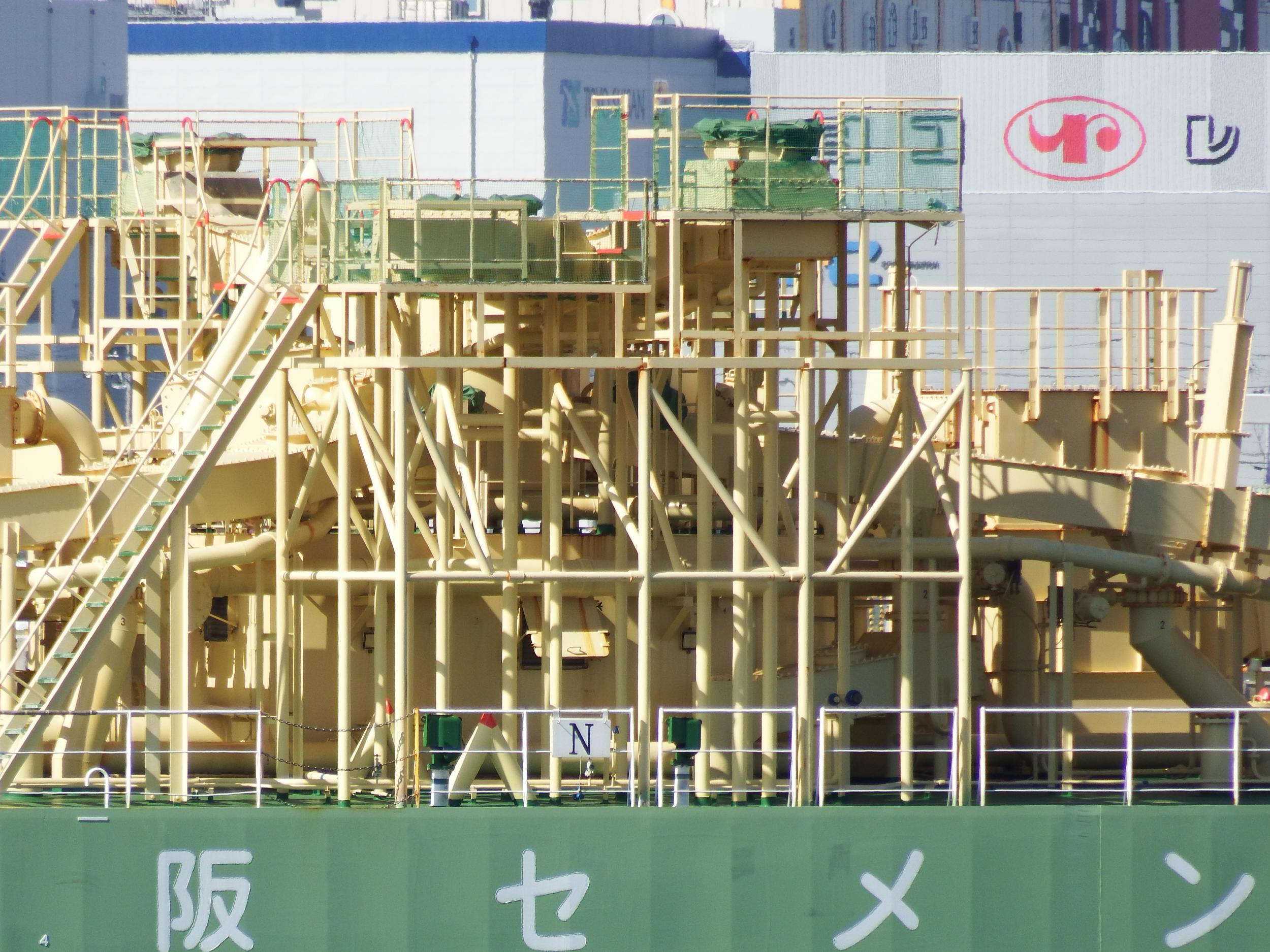 第二十三すみせ丸、4008総トン、船自体が工場みたいです。セメントとコンクリートの違いって何?と初めて疑問になってセメントに砂や砂利を加え硬化させたものがコンクリート、硬化する前のコンクリートが生コン、セメントに砂だけを混ぜたものがモルタル、と知りました。