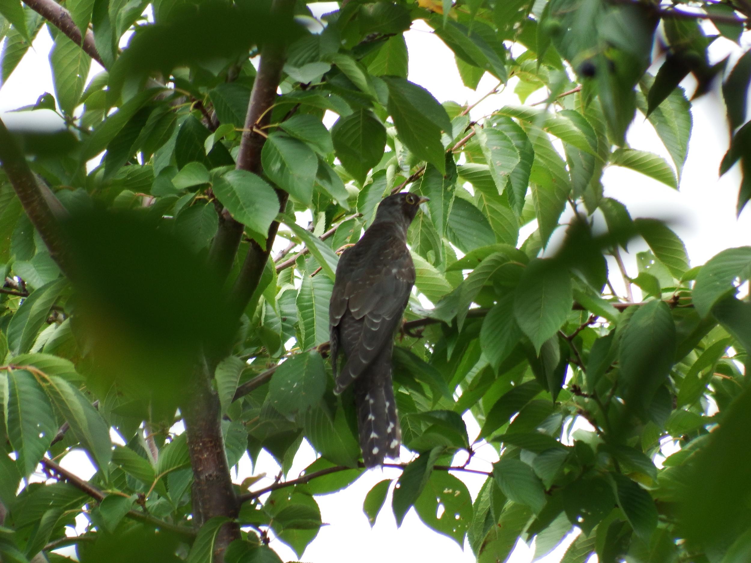 桜広場東側にカメラマンが10人くらい。いましたツツドリ、カッコーの仲間でキジバトくらいの大きさがあります。