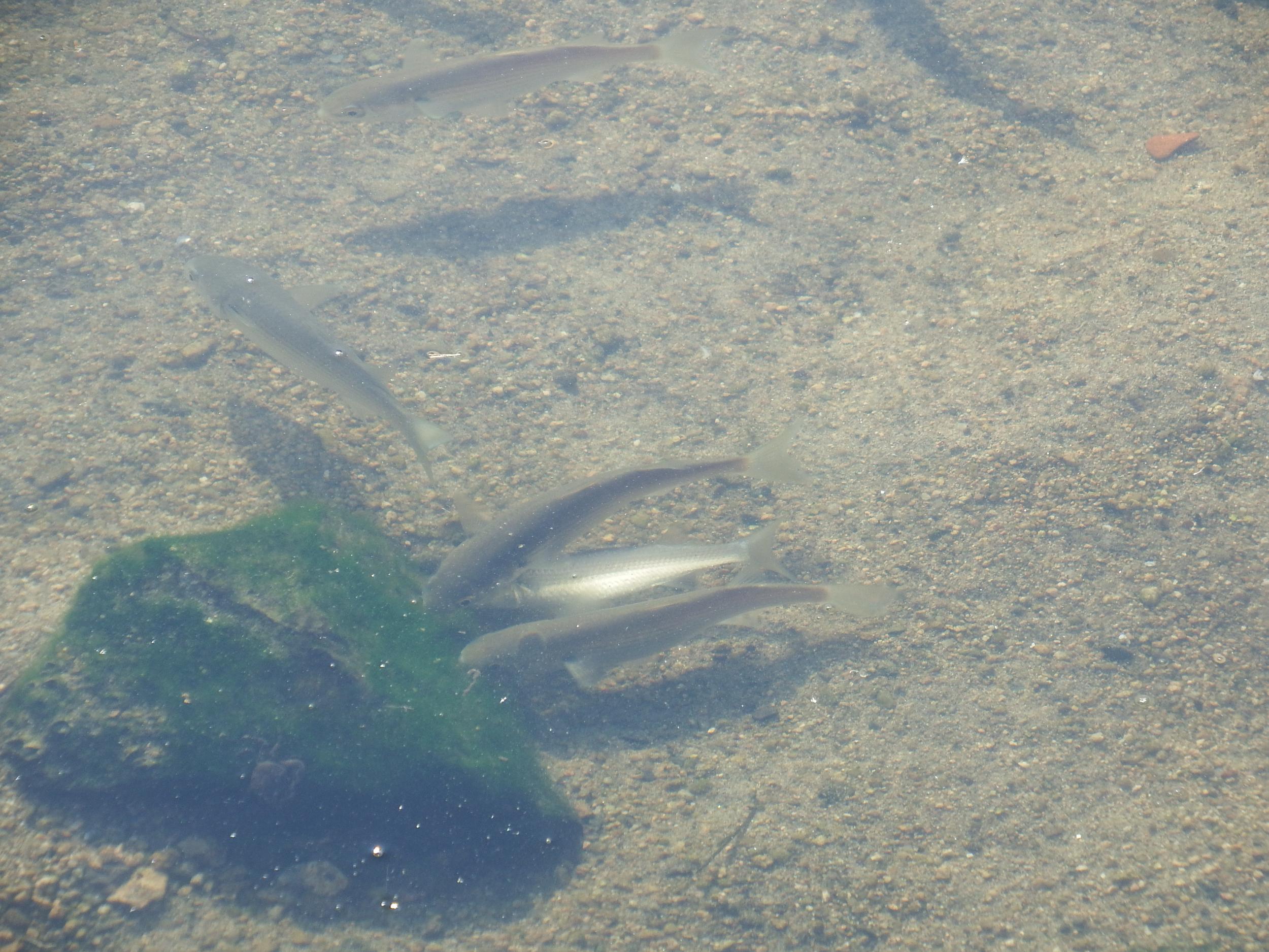 この辺りはたぶん汽水のはず、川底にいるのはマハゼかと。