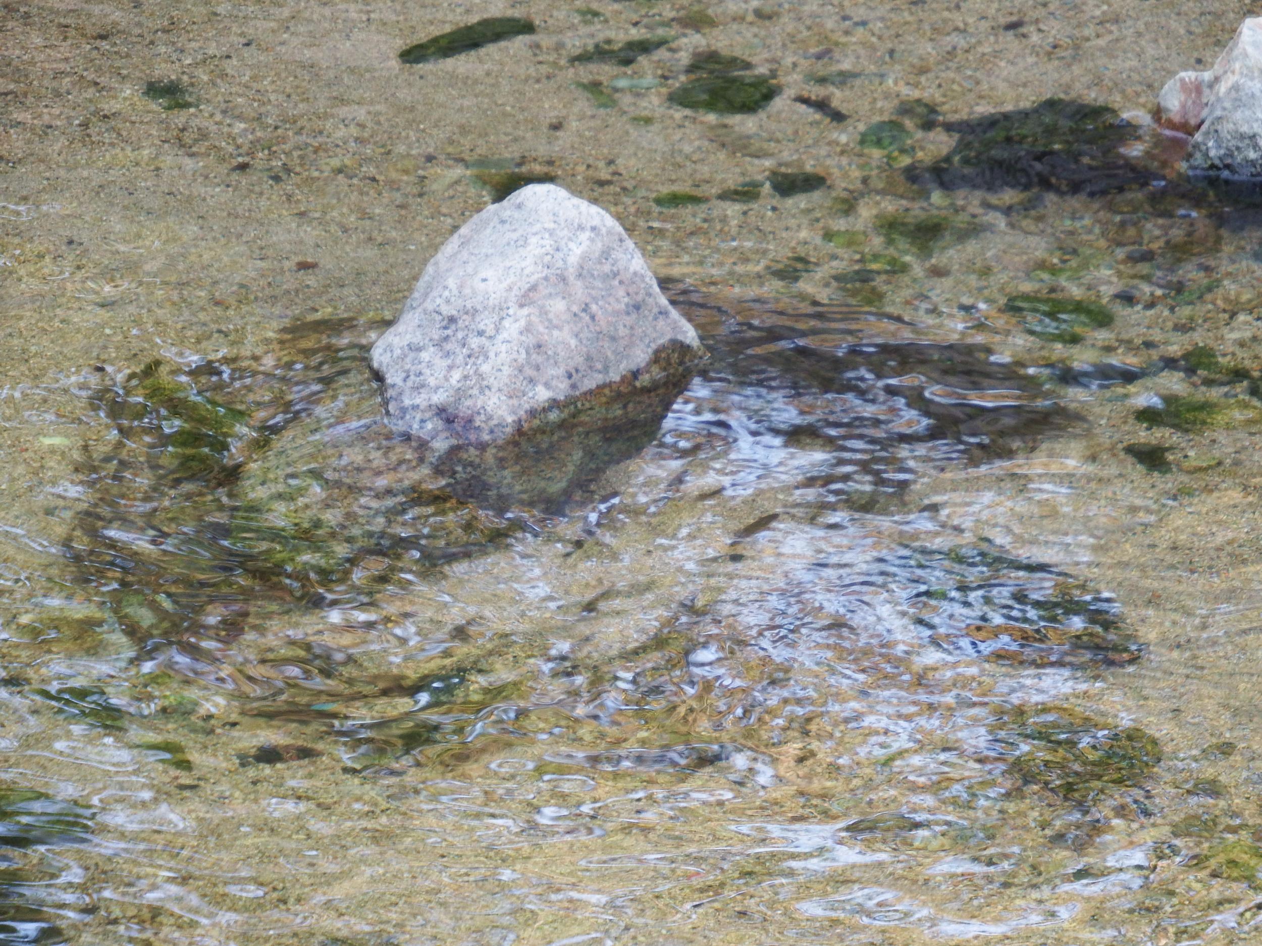 石についた藻を食べてるボラたち、横になってるのもいます。カニが一匹、イソガニかと。
