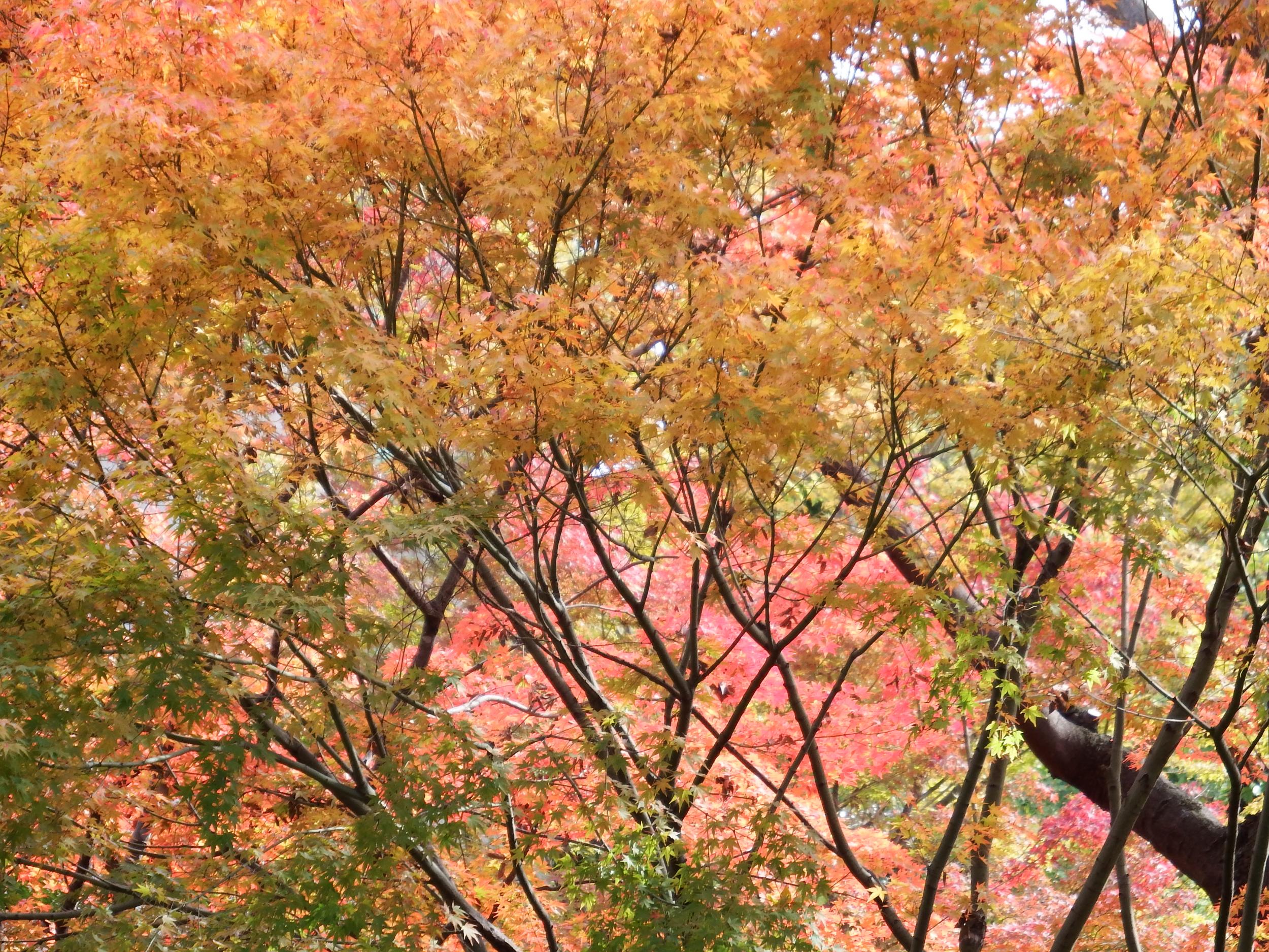 音楽堂北側のもみじ園、造成されてからまだ間がないのでしょぼいもみじですが、近くでアップに撮ると紅葉なのに若さが感じられて綺麗です。