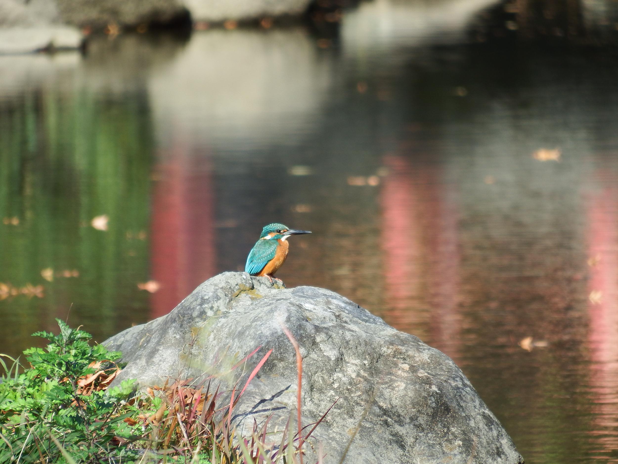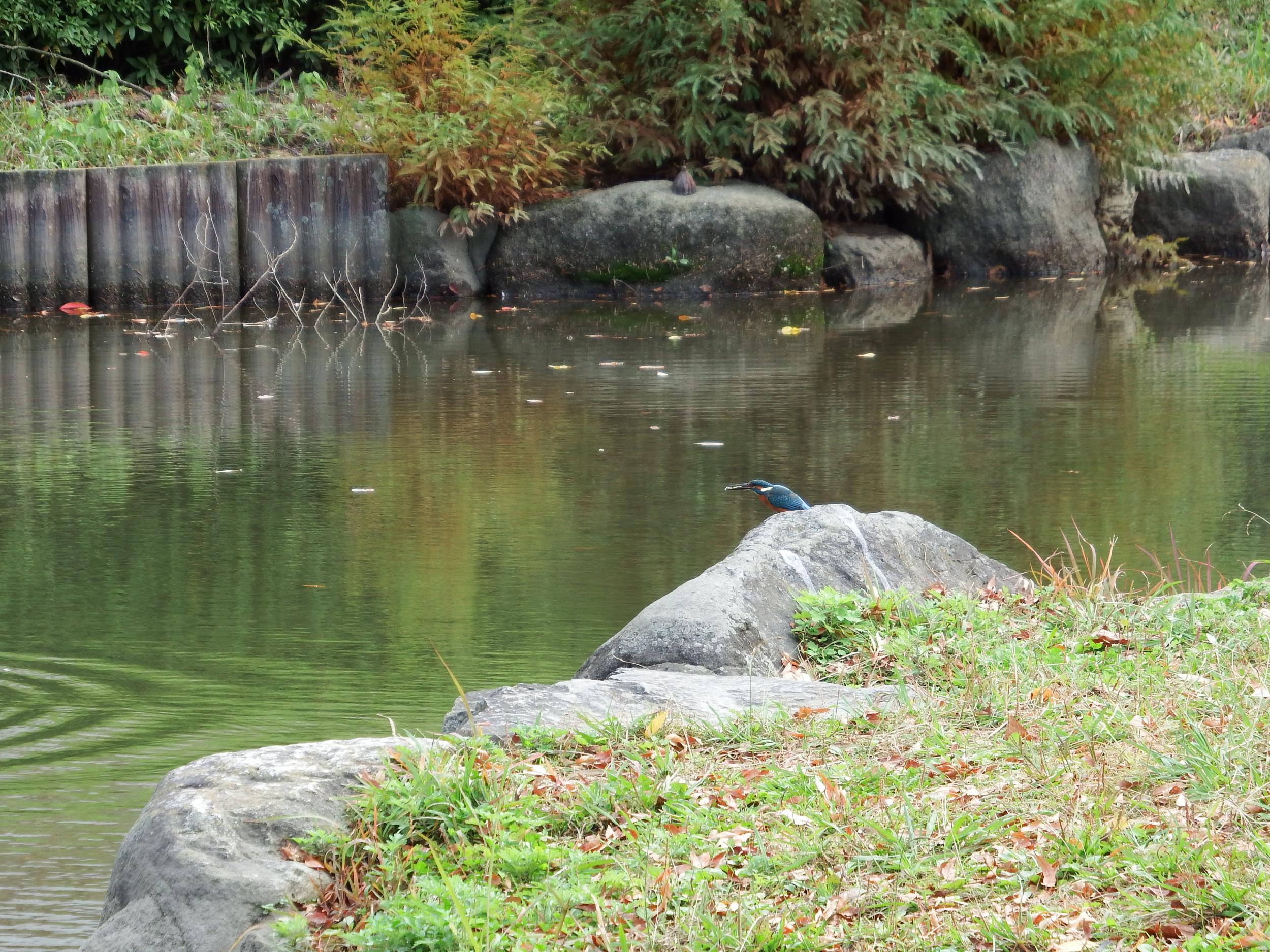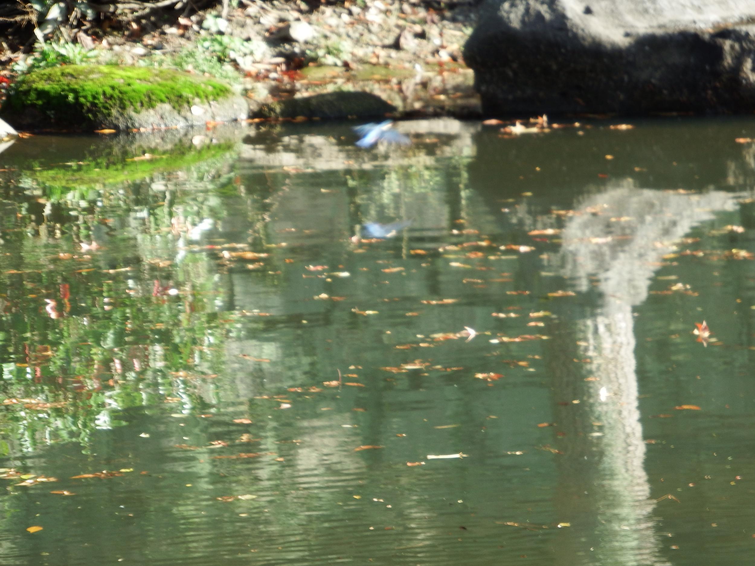 藤田邸跡公園のもみじを眺めていたら、ピーッという聞き覚えのある鳴き声が聞こえ急ぎひょうたん池へ戻ります。