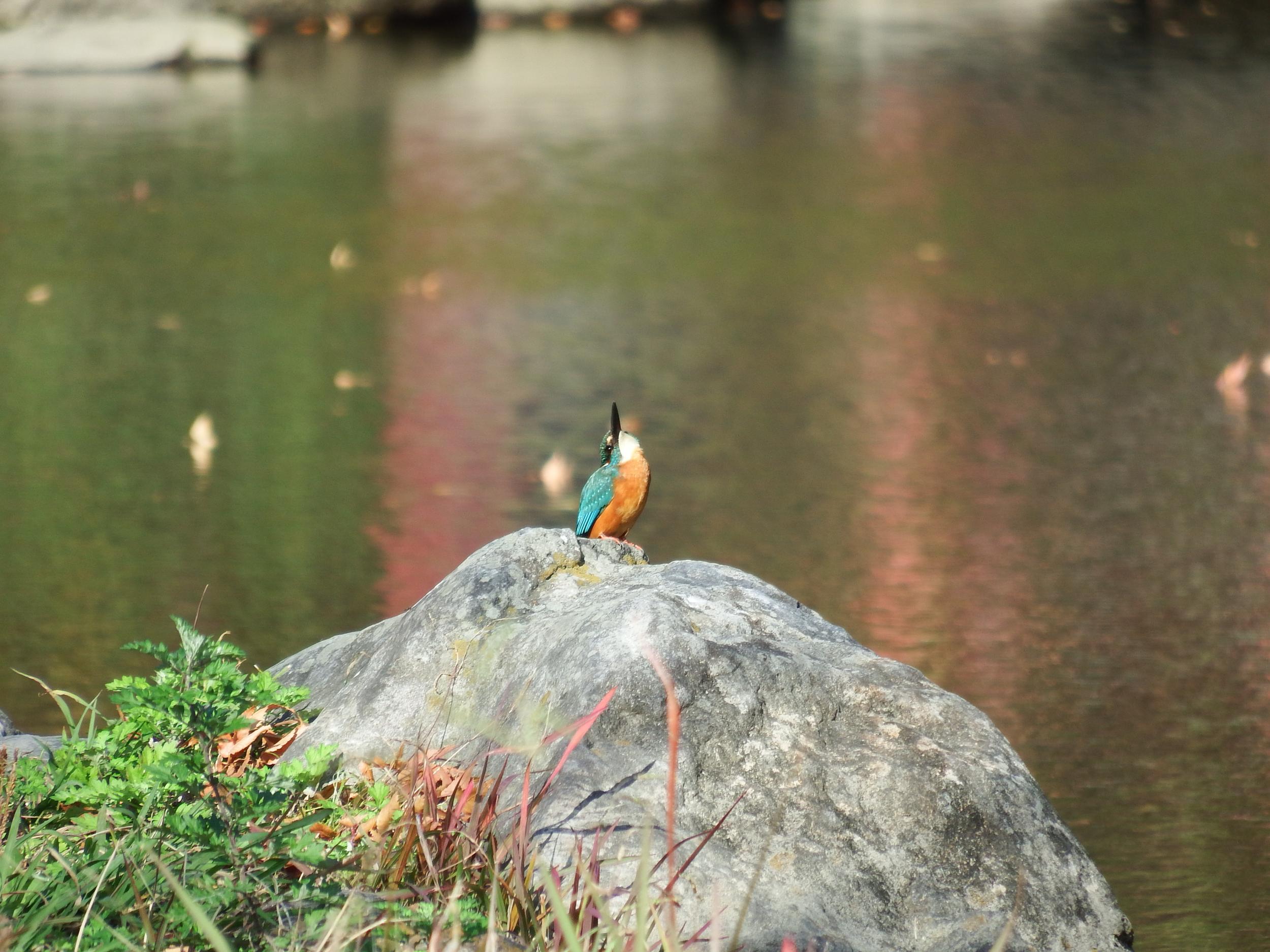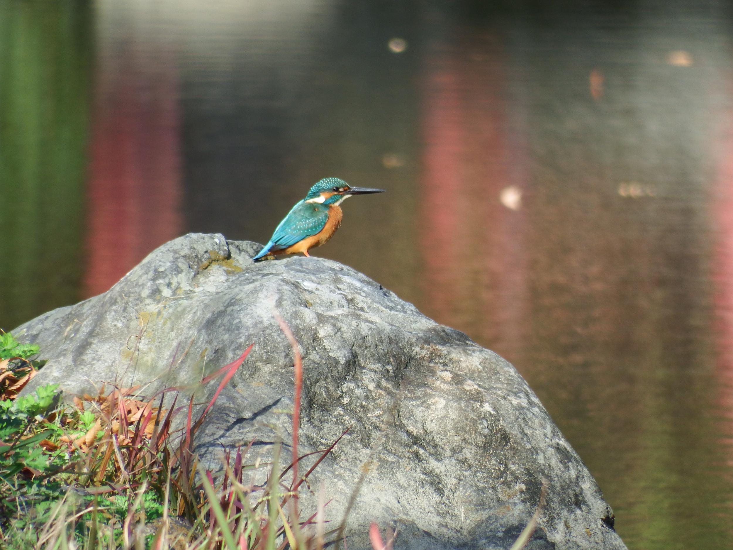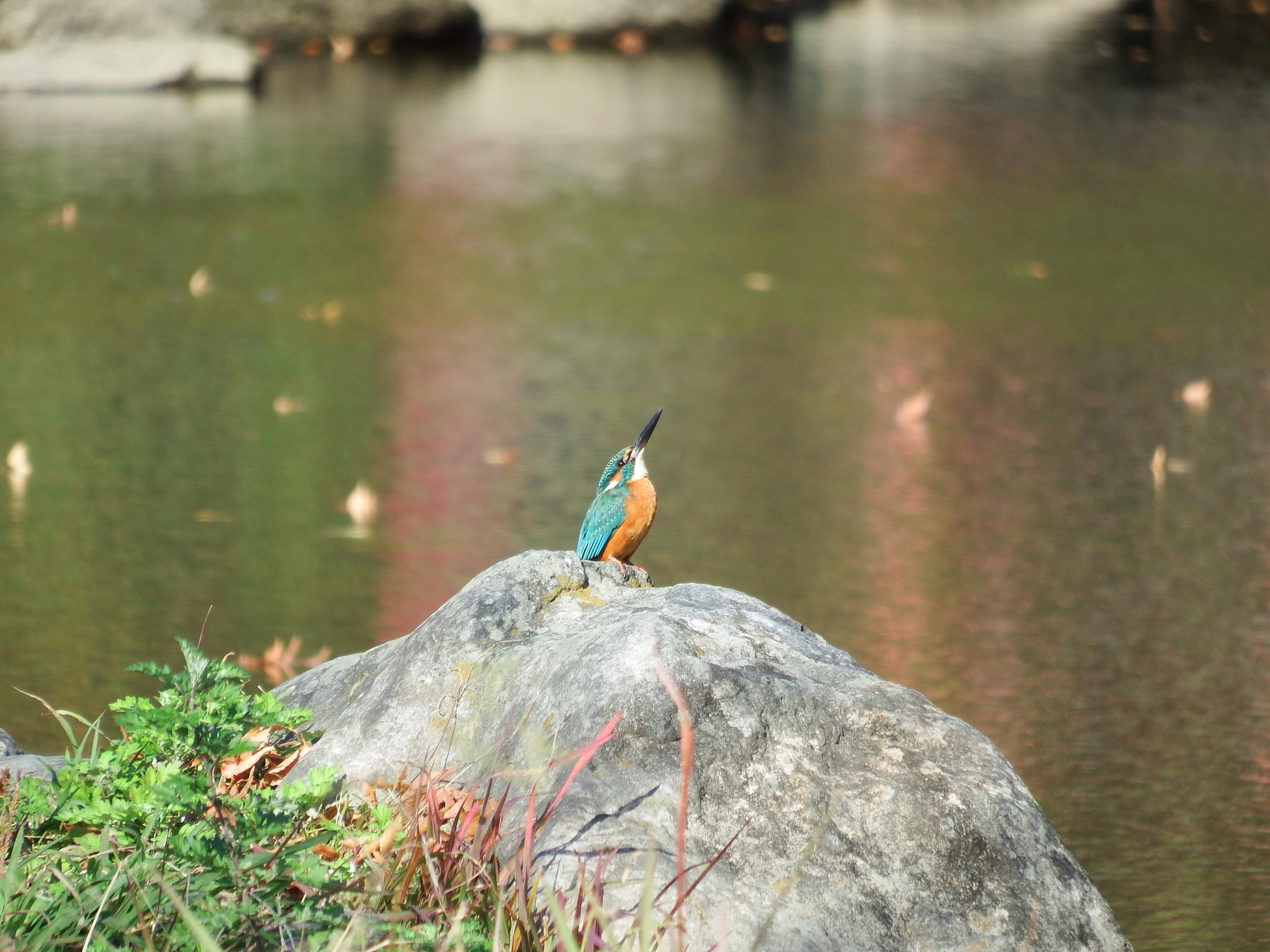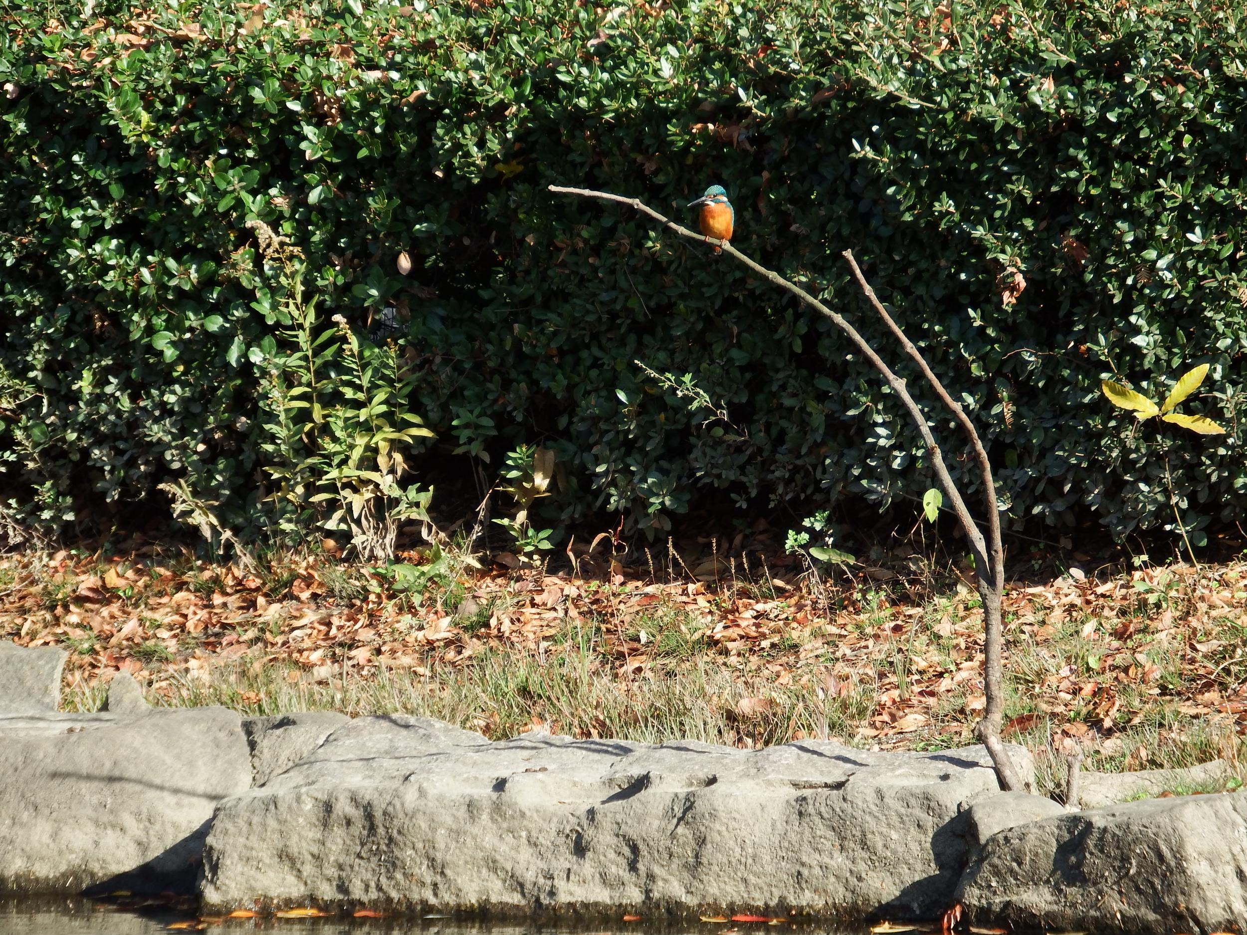 藤田邸跡公園のもみじを眺めていたら、ピーッという聞き覚えのある鳴き声が聞こえ急ぎひょうたん池へ戻ります。