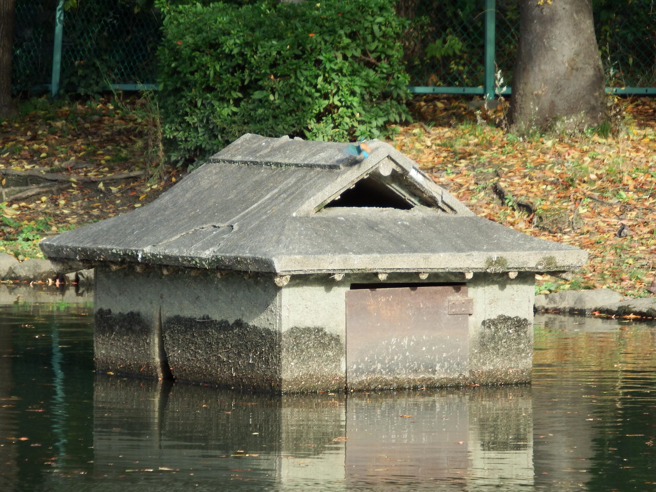 ハクセキレイを避けるように池の中の石の小屋に移動。