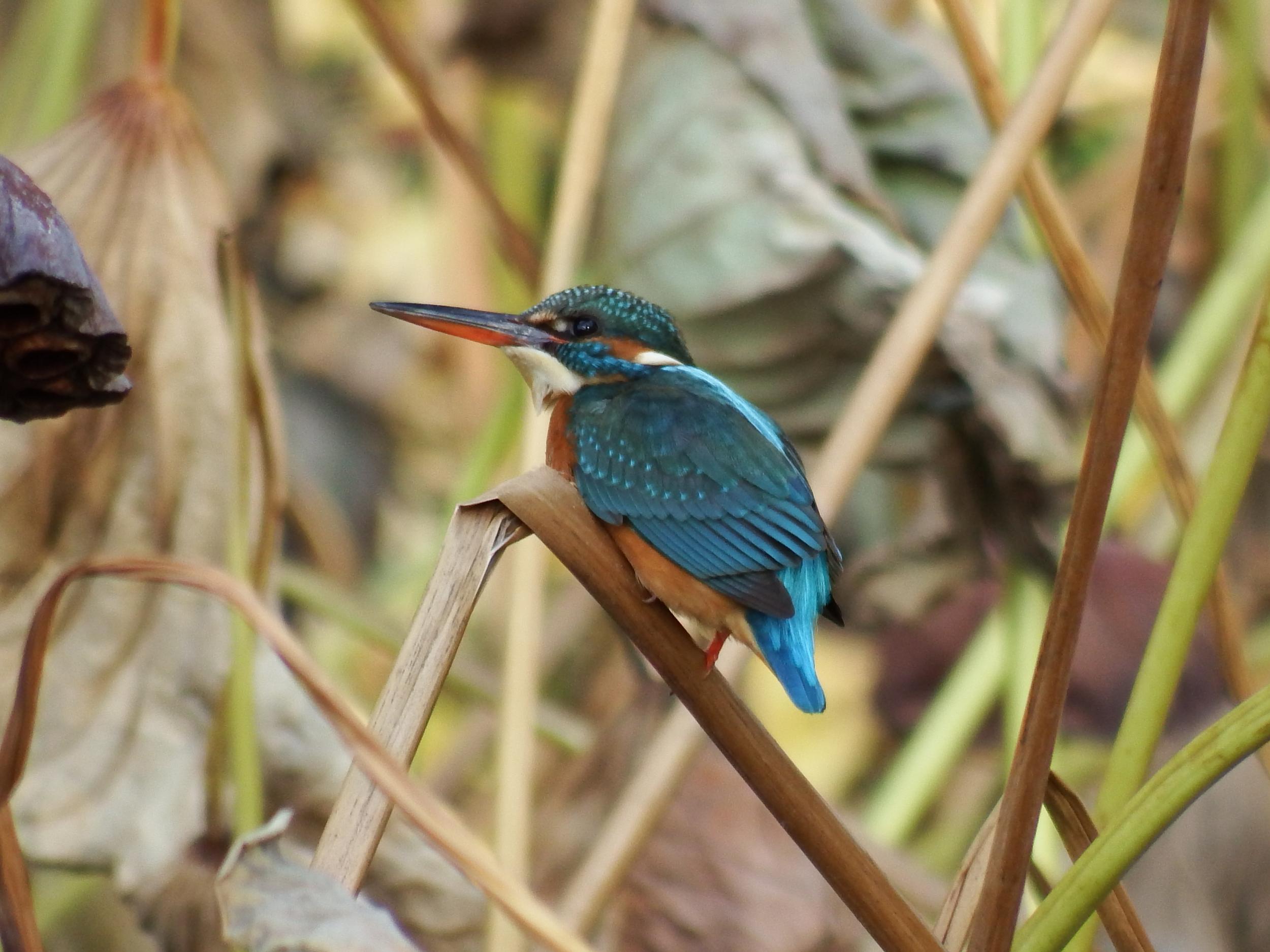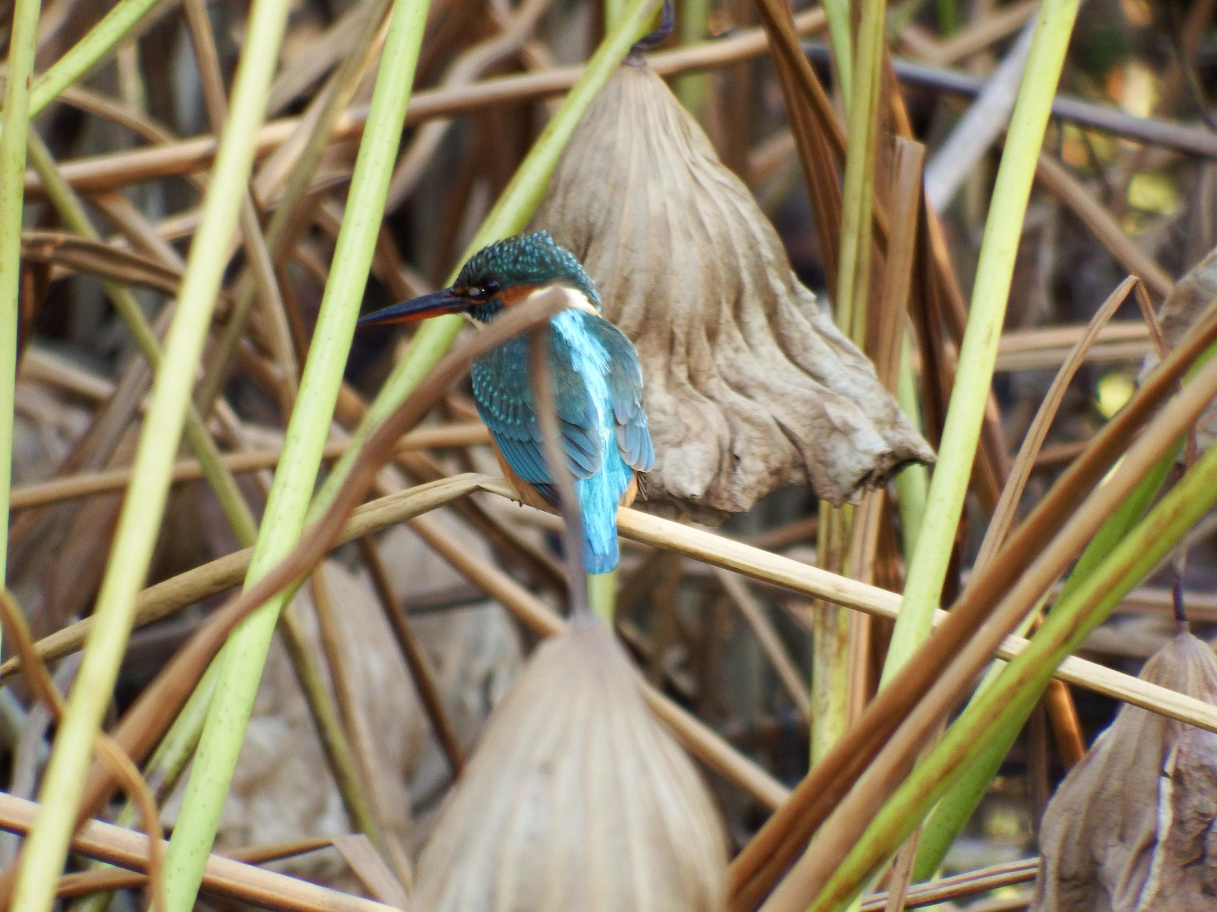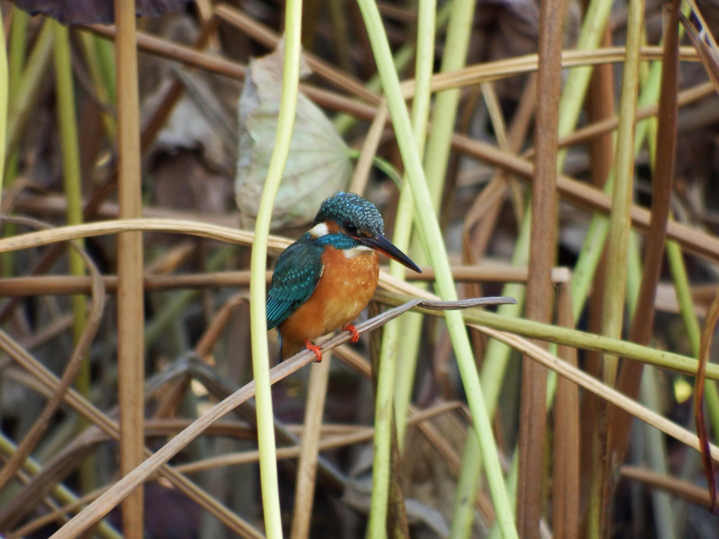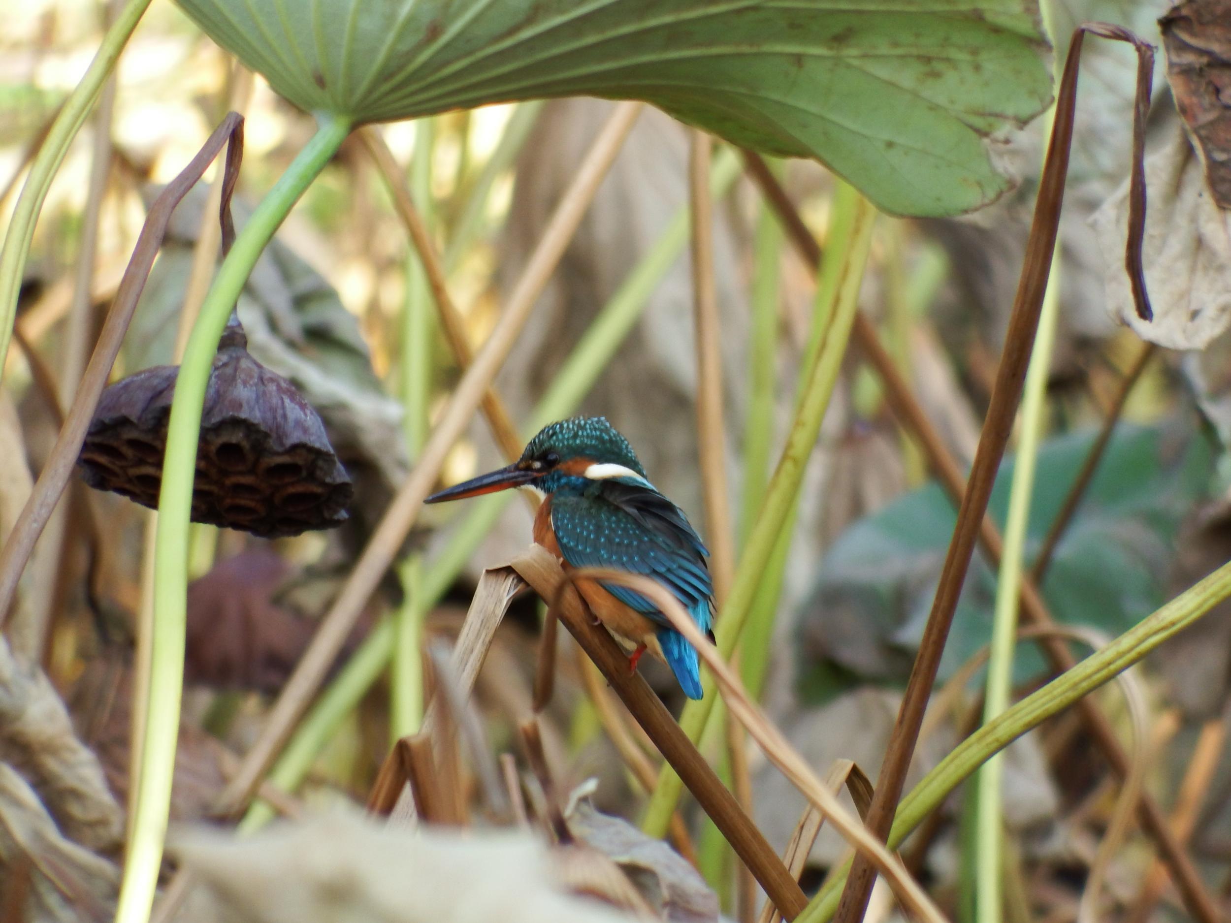 蓮池にももう1羽いるよ、との情報で、行ってみると下嘴が赤い♀。