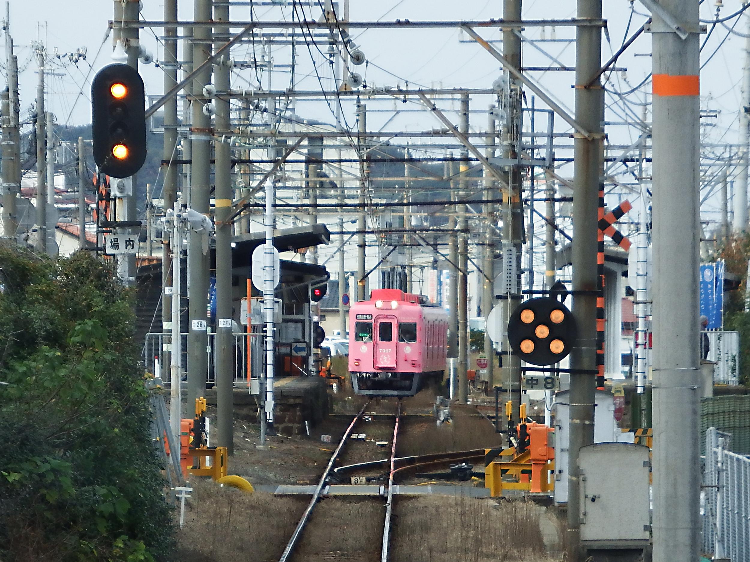 めでたいみずいろ車内からめでたいピンク。停車時間が十分あったので、みずいろとピンクのツーショットが撮れたはずですが、うっかりしました。