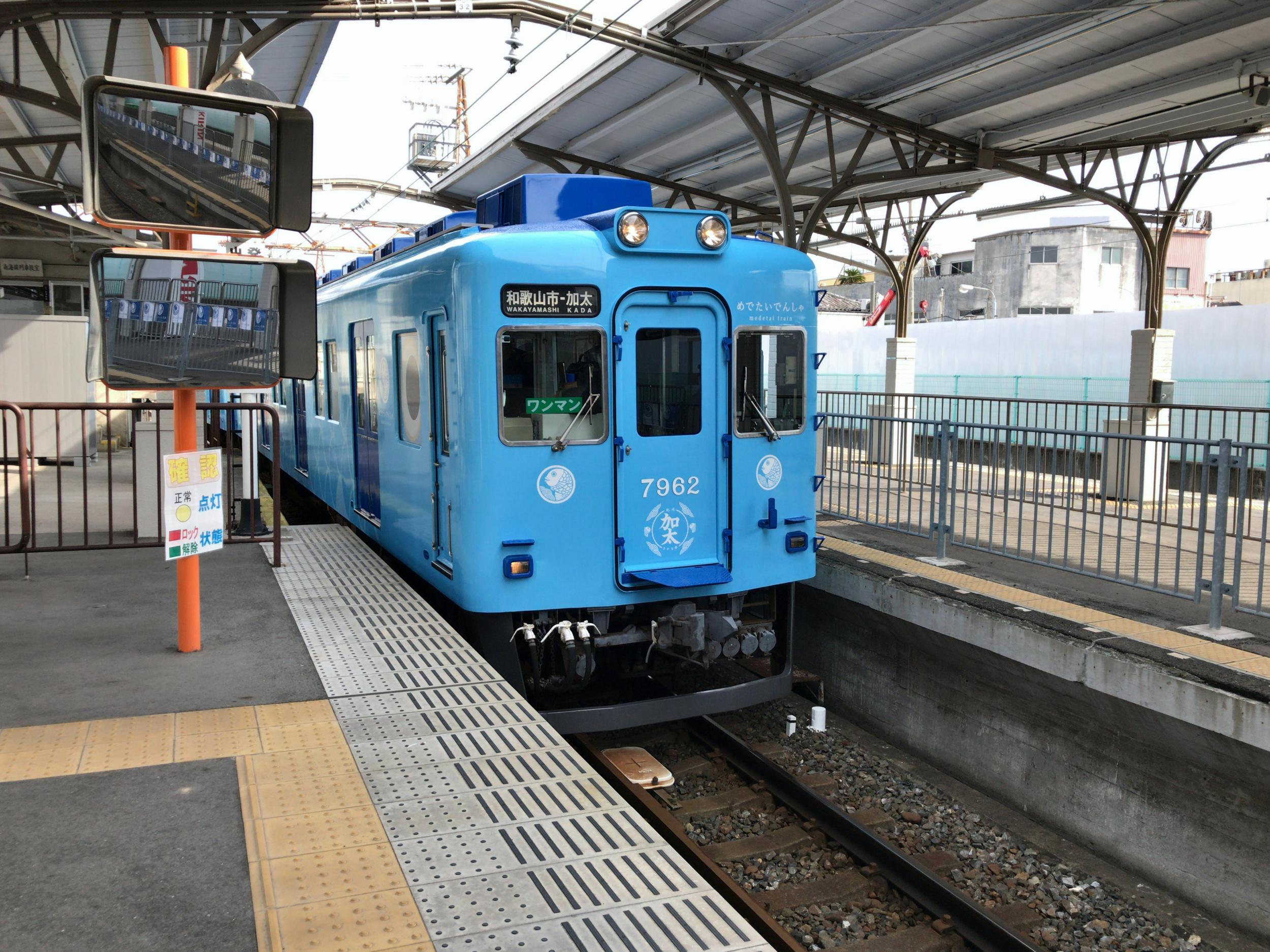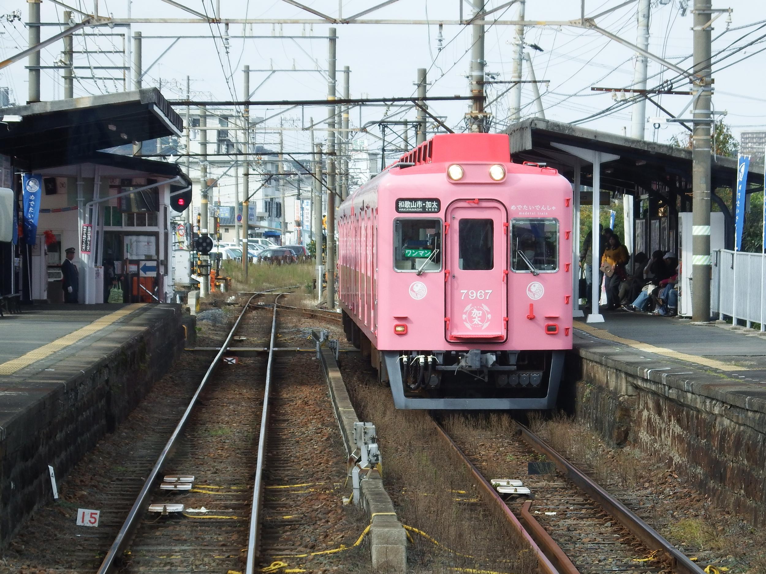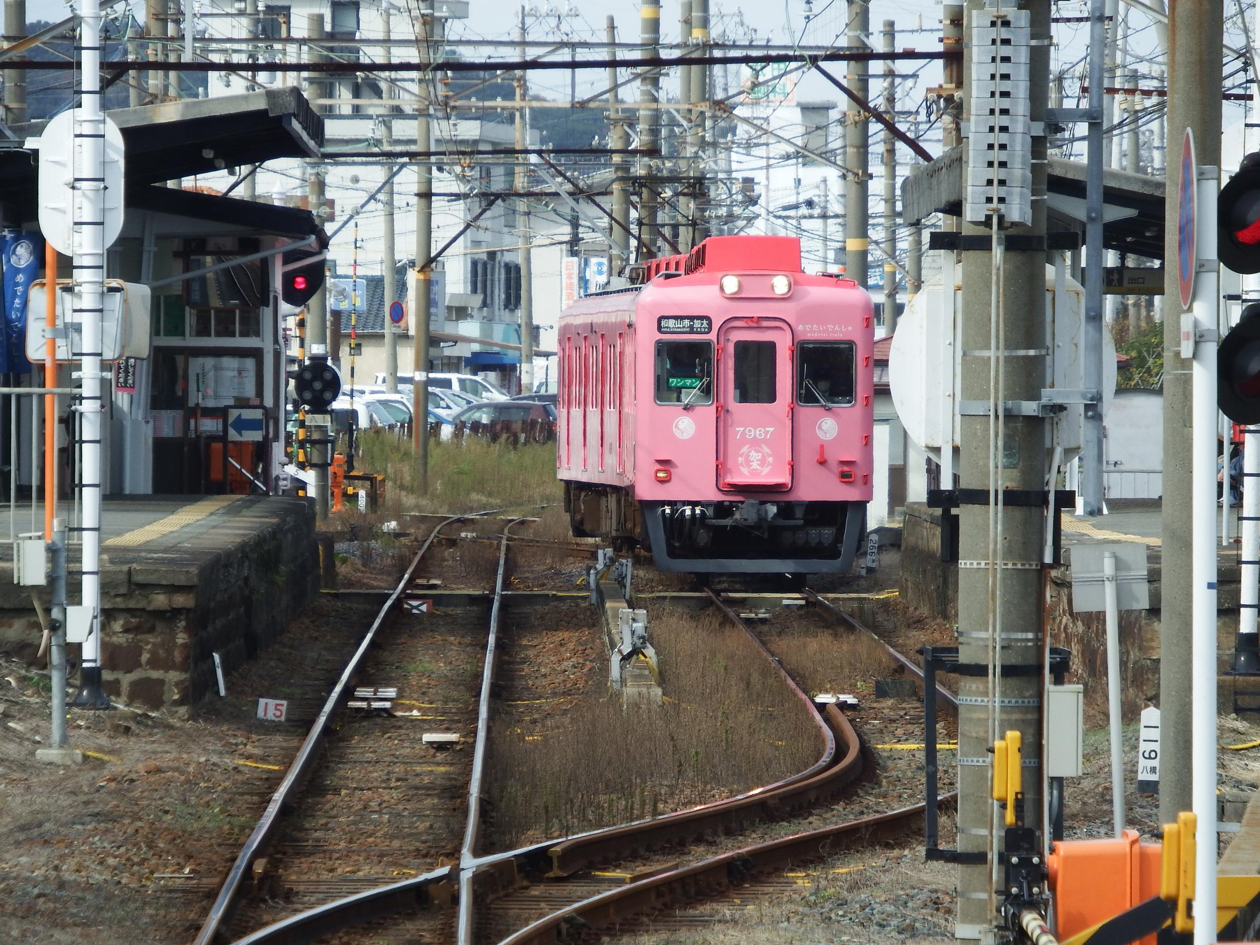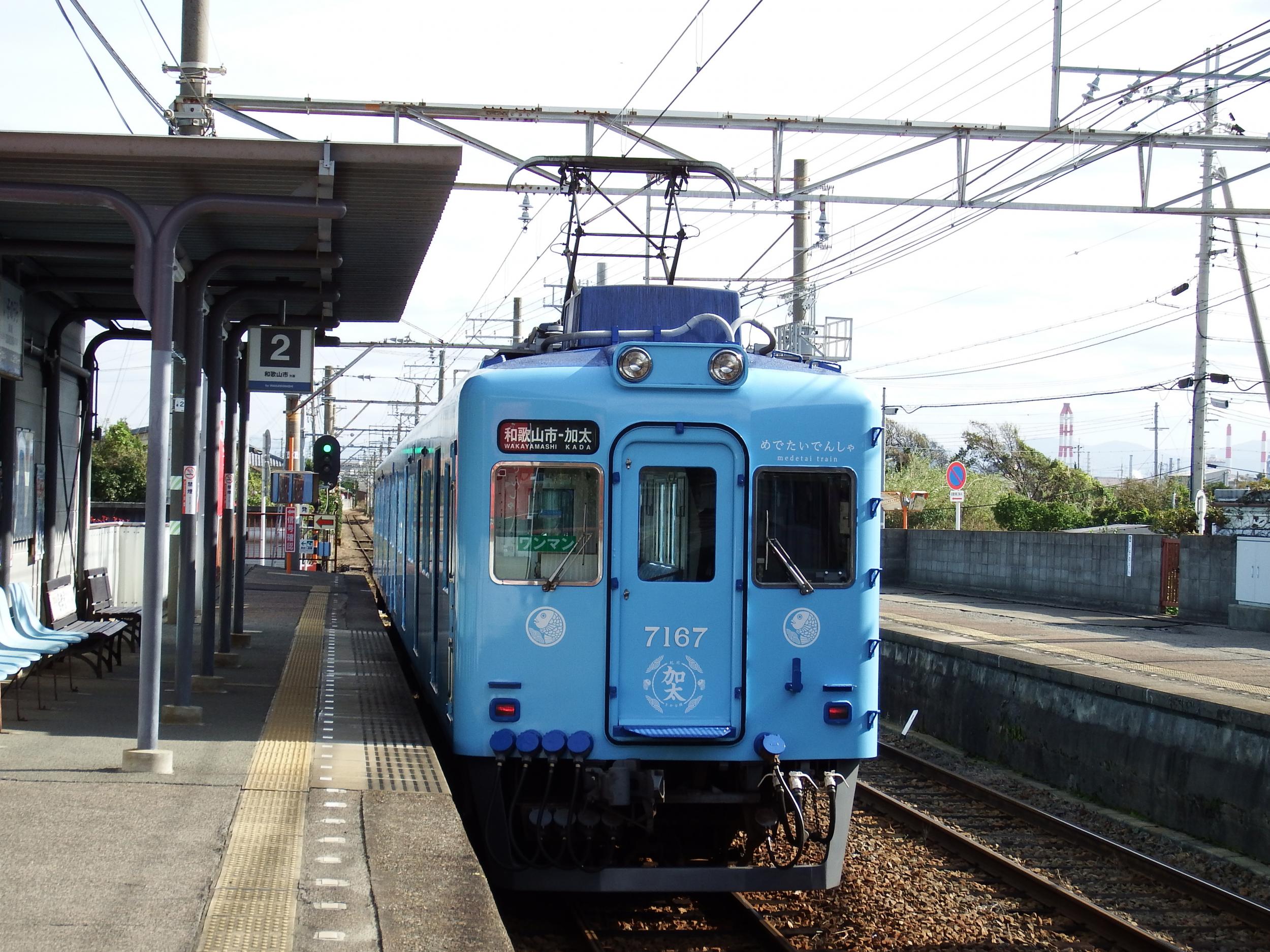 加太駅は集落の入口近くにあって、淡嶋神社や浜辺、友ヶ島への船着き場まで1km以上あります。路線バスはなく、タクシーか旅館の送迎バス、あるいは徒歩ということになります。観光協会にレンタサイクルがあるようなのですが、どうも積極的にやっているようには見受けられません。田倉崎や城ヶ崎、あるいは大川峠辺りまで、めでたいでんしゃで気軽に向かうことができれば、と思うと残念でなりません。