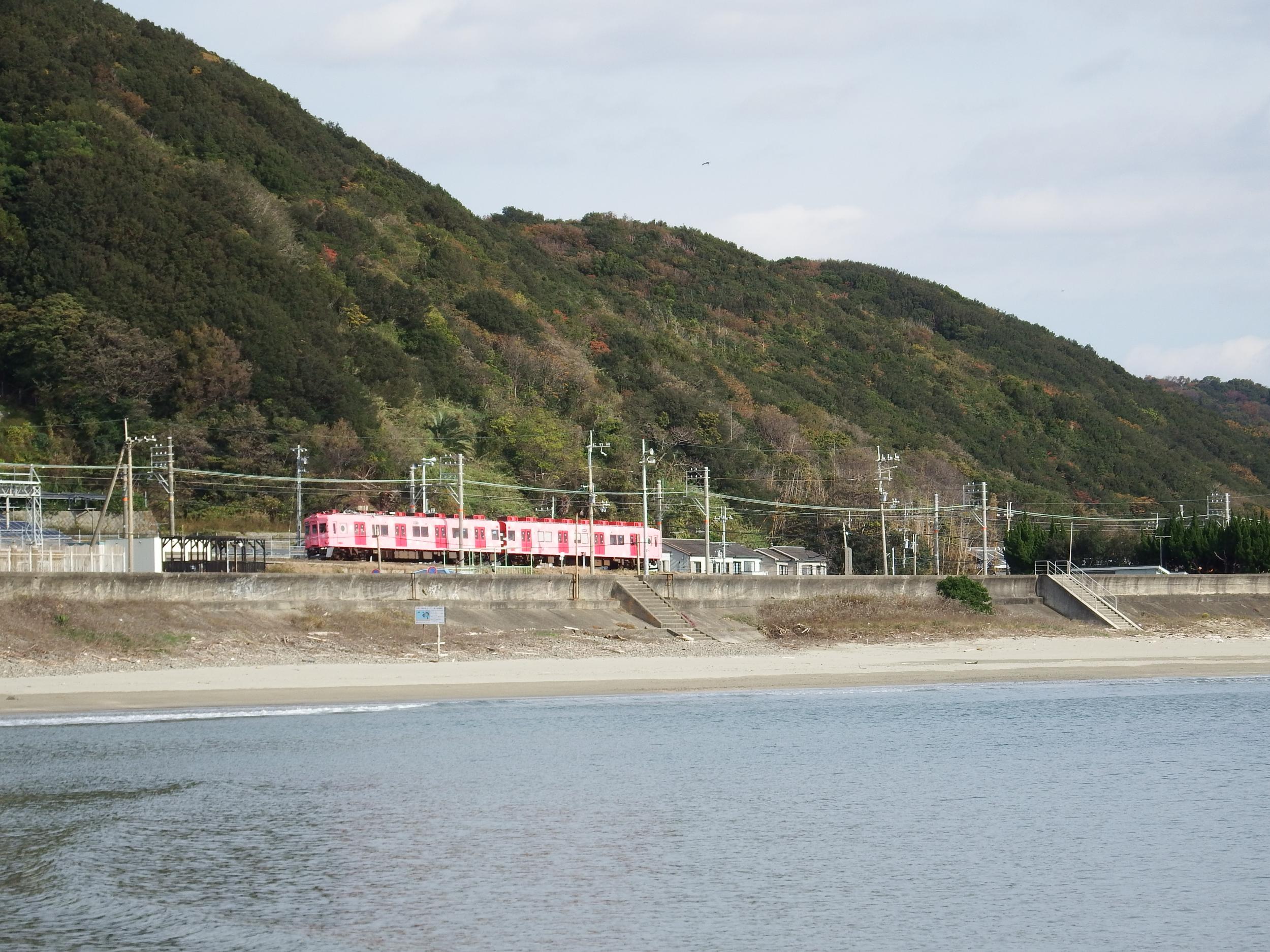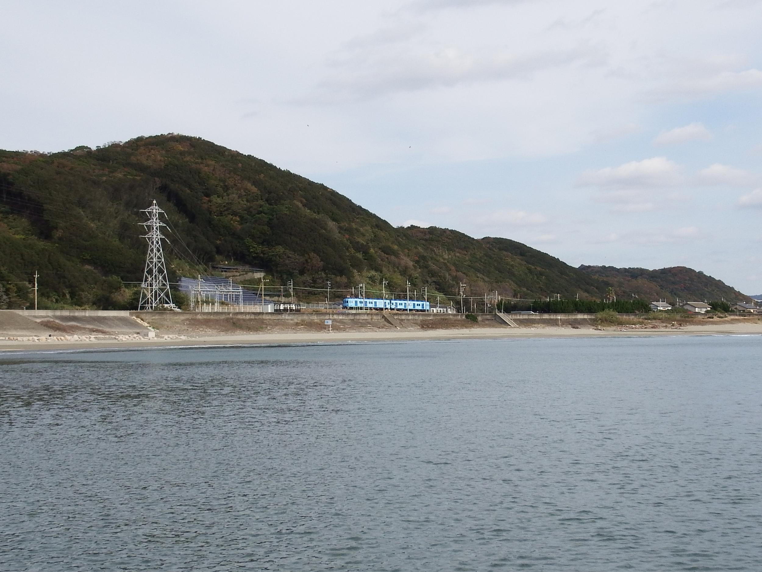 海からめでたいみずいろ。加太さかな線から海が望めるのはこの100mほどの区間だけです。
