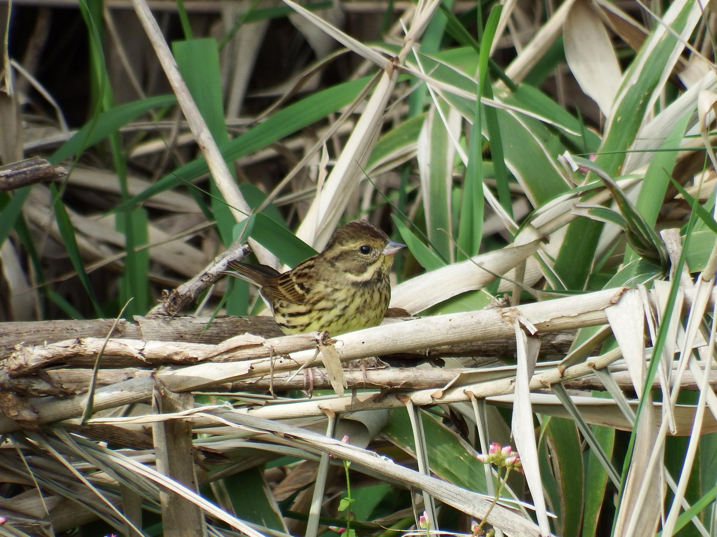 浜辺の草むらにアオジ。
