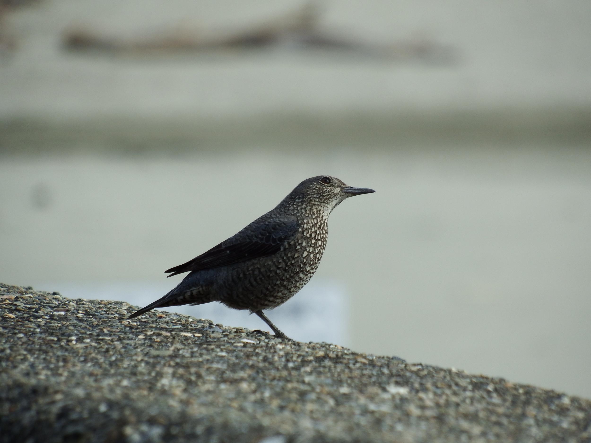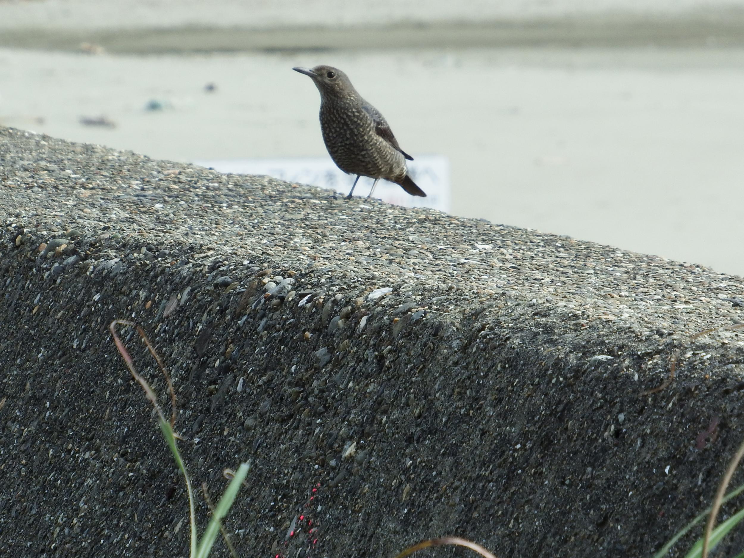 堤防にイソヒヨドリ♀、今日も和歌山に来ればイソヒヨドリに会えるという記録が守られました。