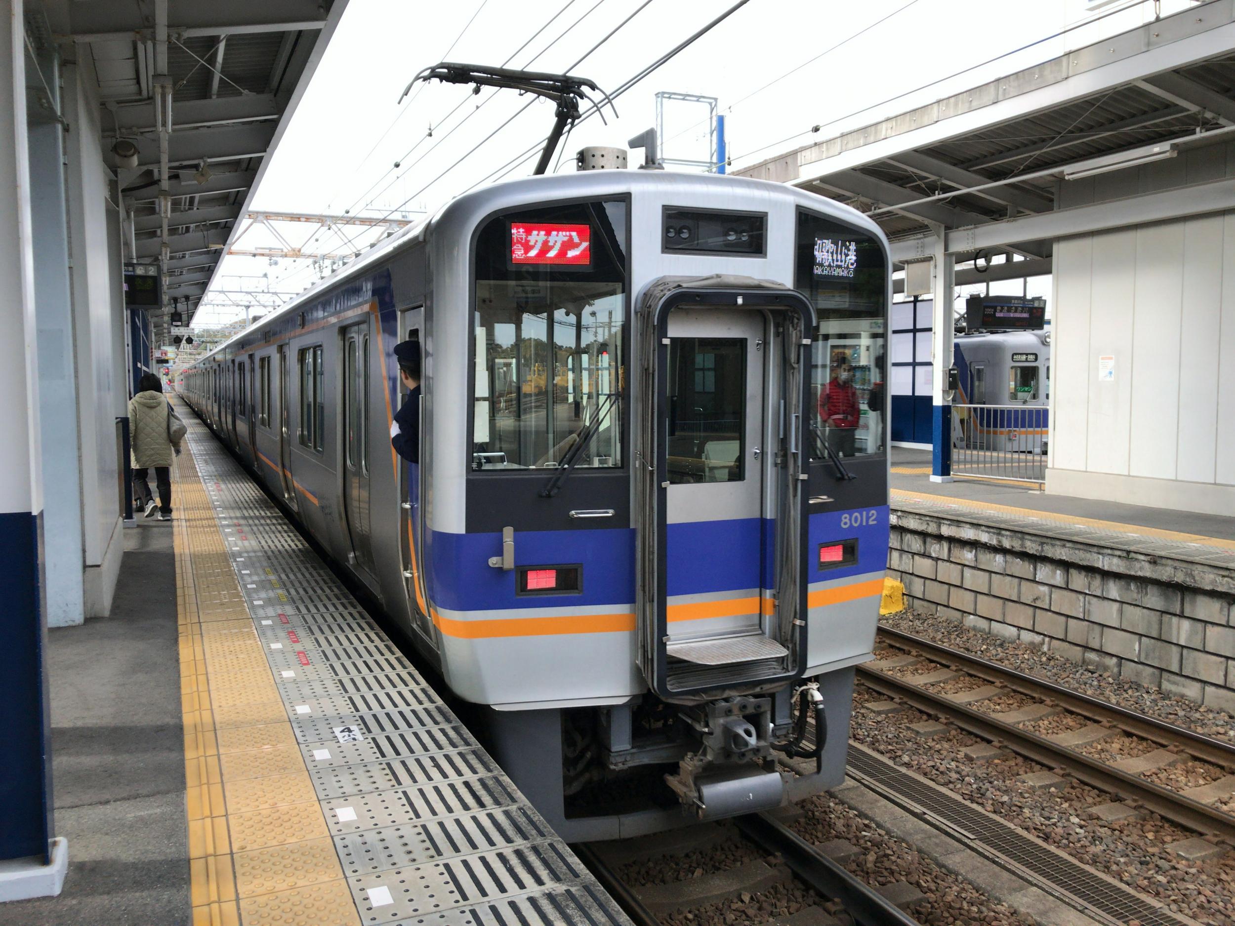 男里川橋梁復旧、サザン運転再開に敬意を表して指定席車で帰ることにします。おや、緑の7000系復活の時、グリーン濃淡の復刻塗装で7037編成とペアを組んでいた10004編成です。