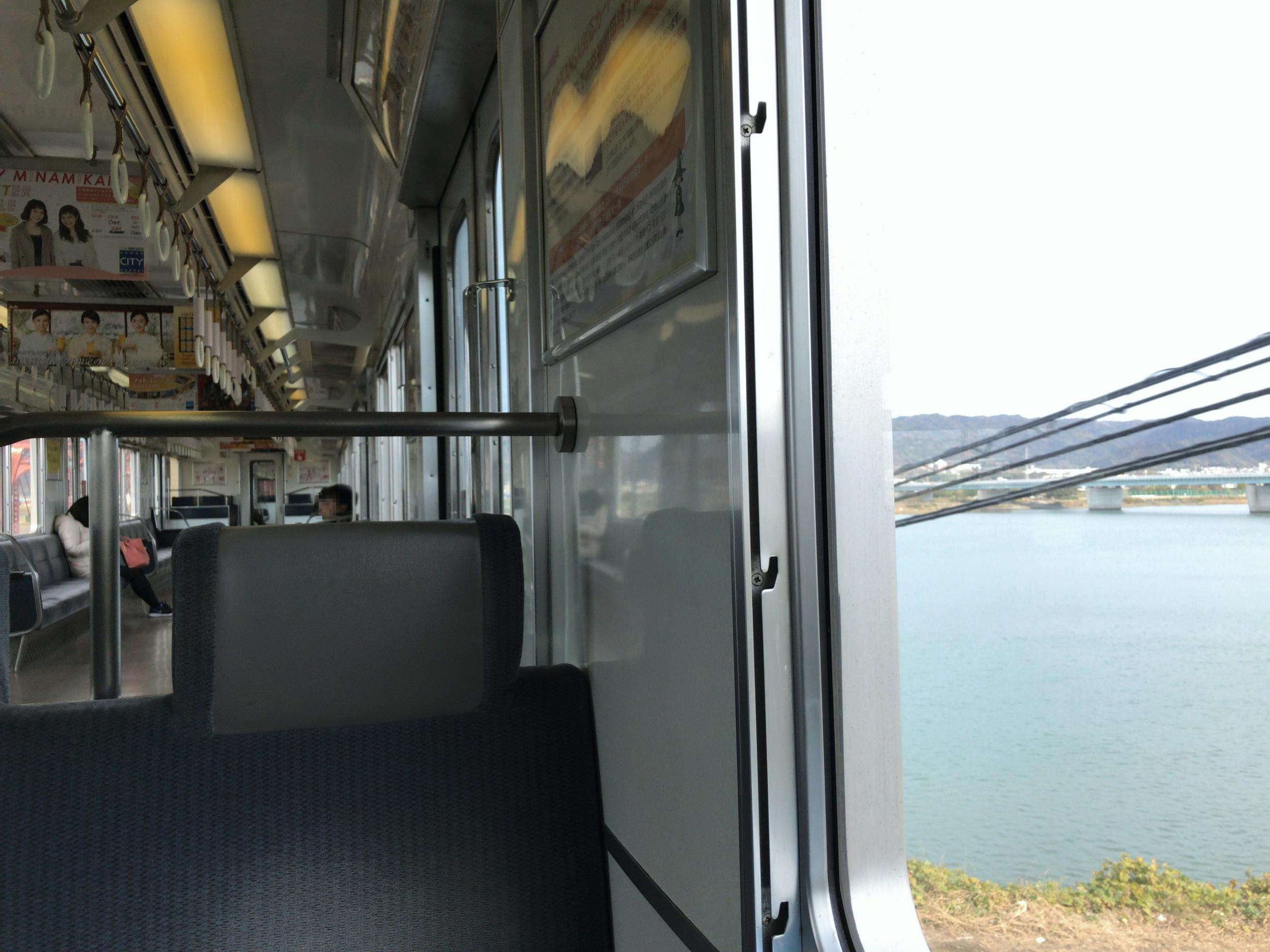 みさき公園で1000系和歌山市行普通車のボックスシートに乗り換え、紀の川を渡ります。