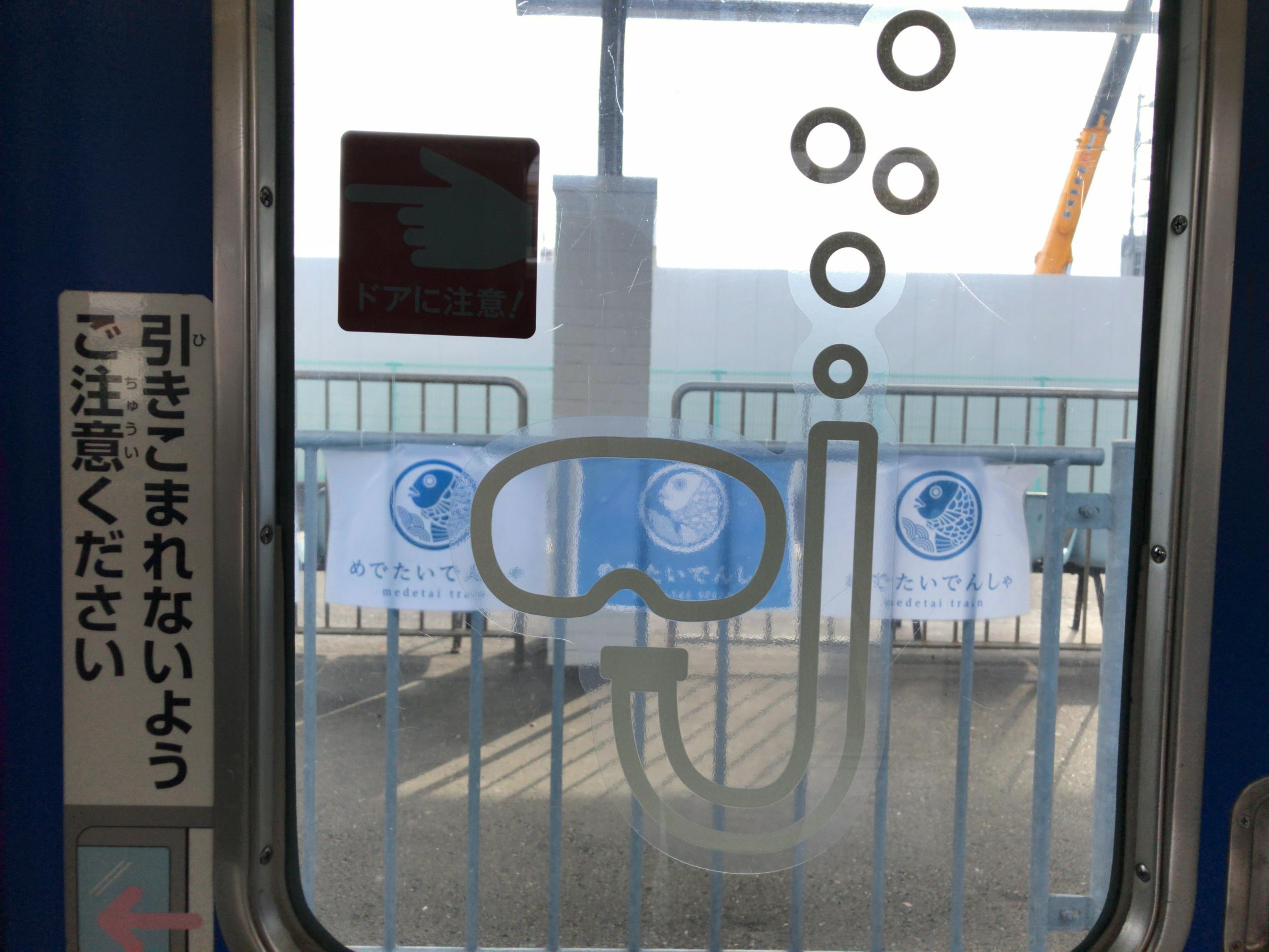 路線図や窓のイラストもめでたいみずいろ版になってます。