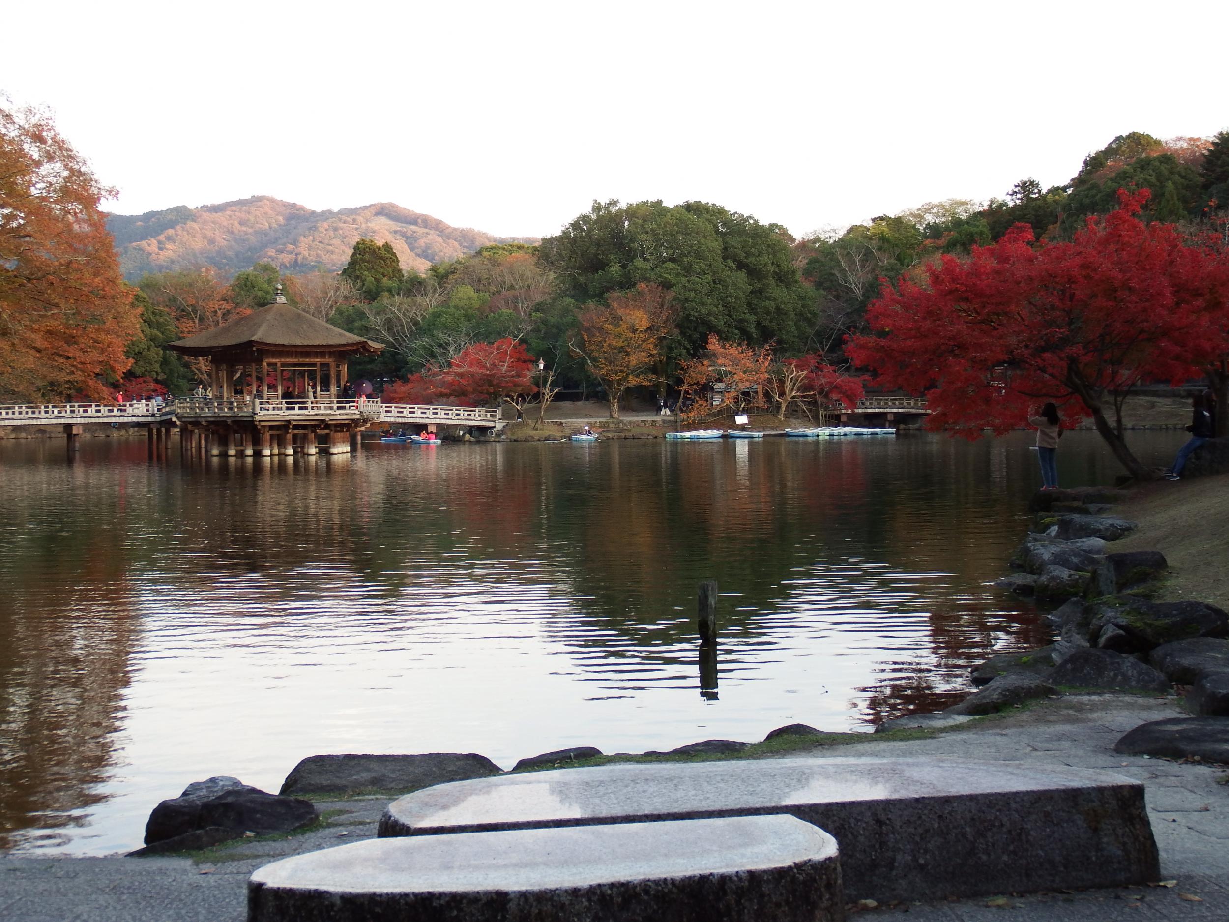 鷺池の浮見堂までで日没。紅葉に鹿の10点の絵柄は撮れなかったものの、短時間で奈良を感じることができました。