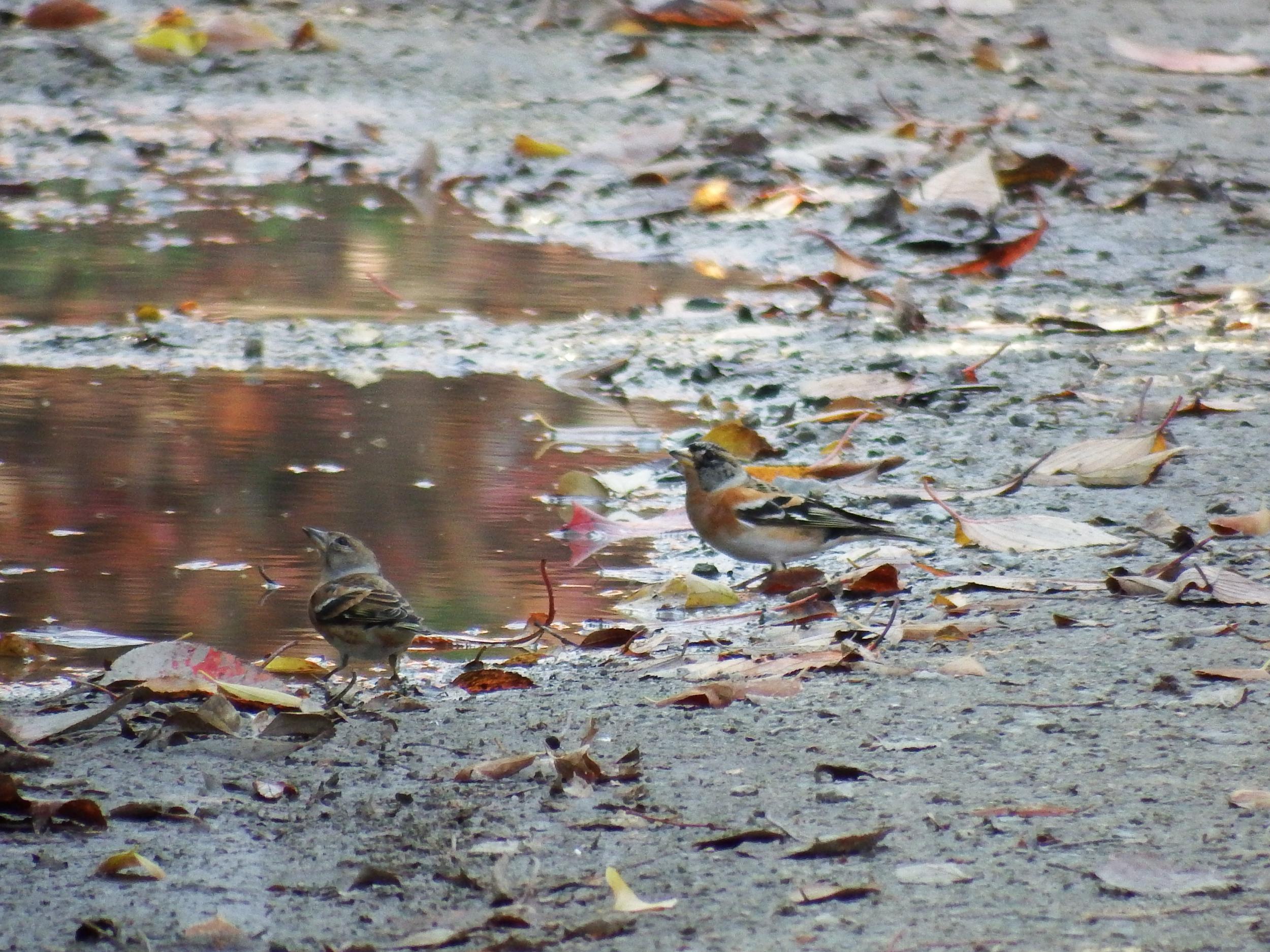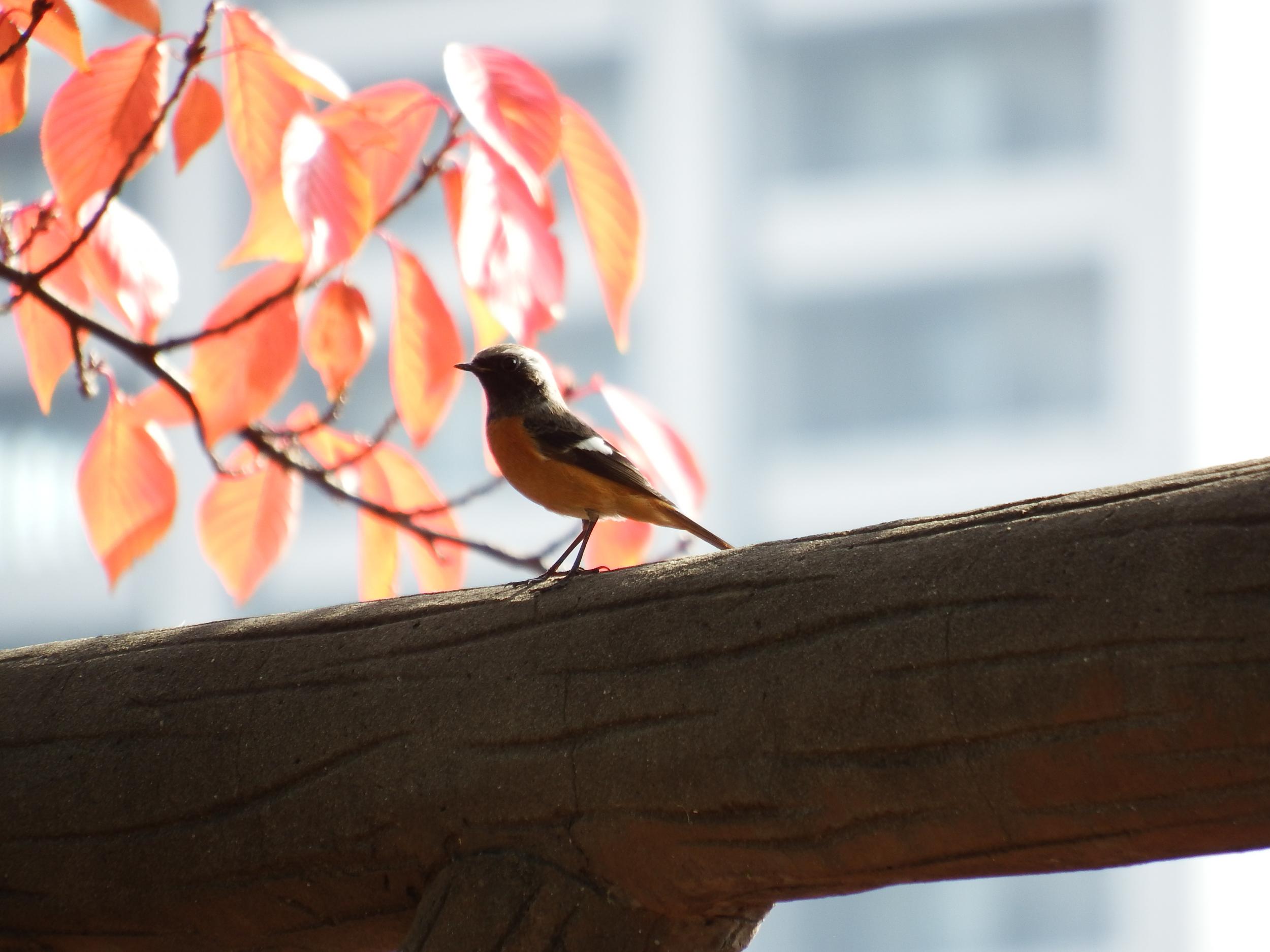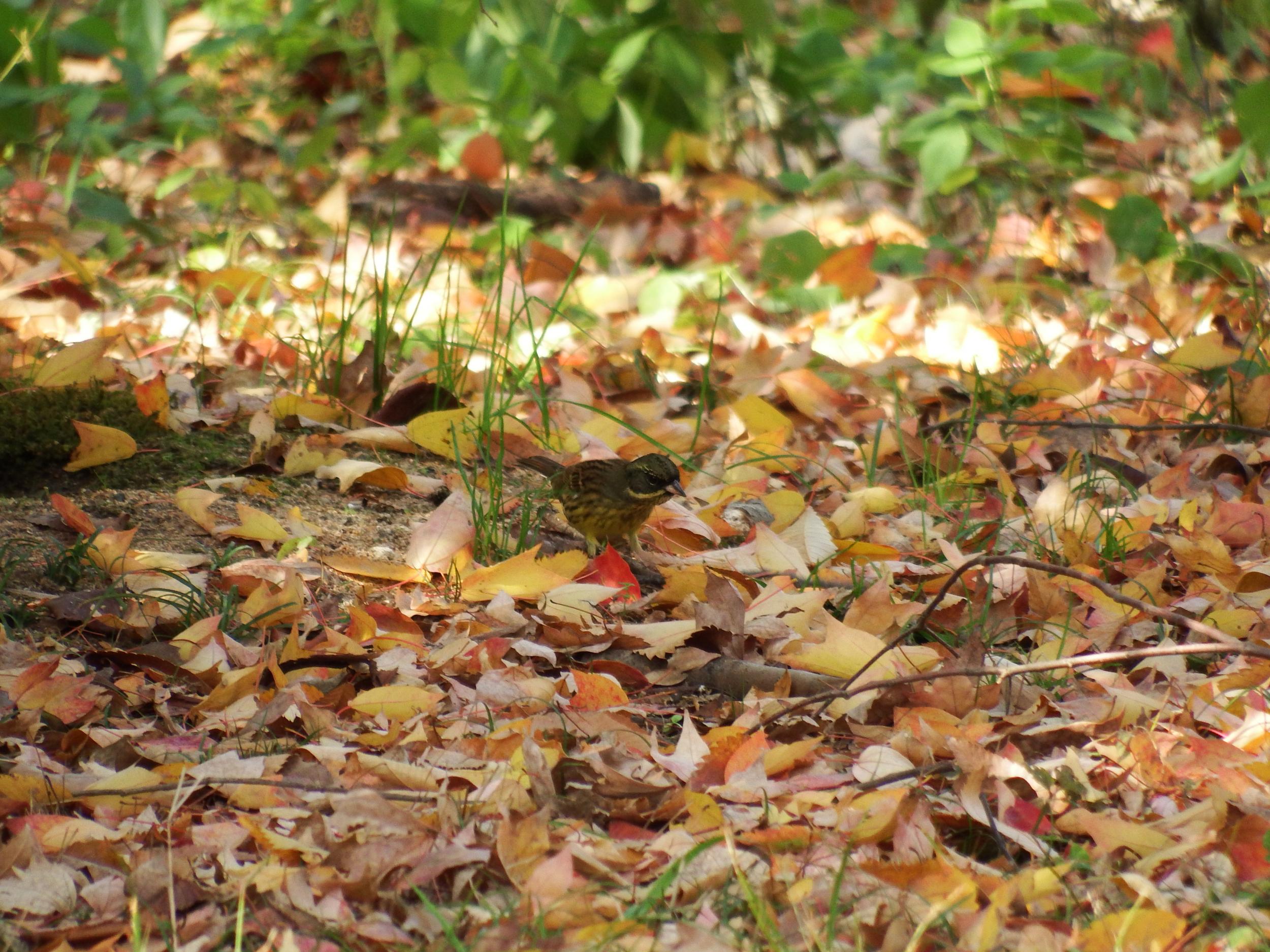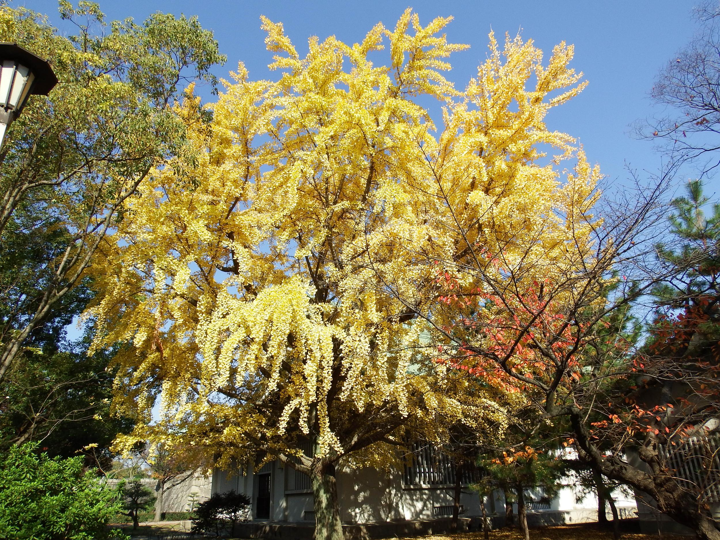 イチョウとメジロ、でも止まっているのは手前のサクラの木です。枯葉が舞う度に鳥と間違います。