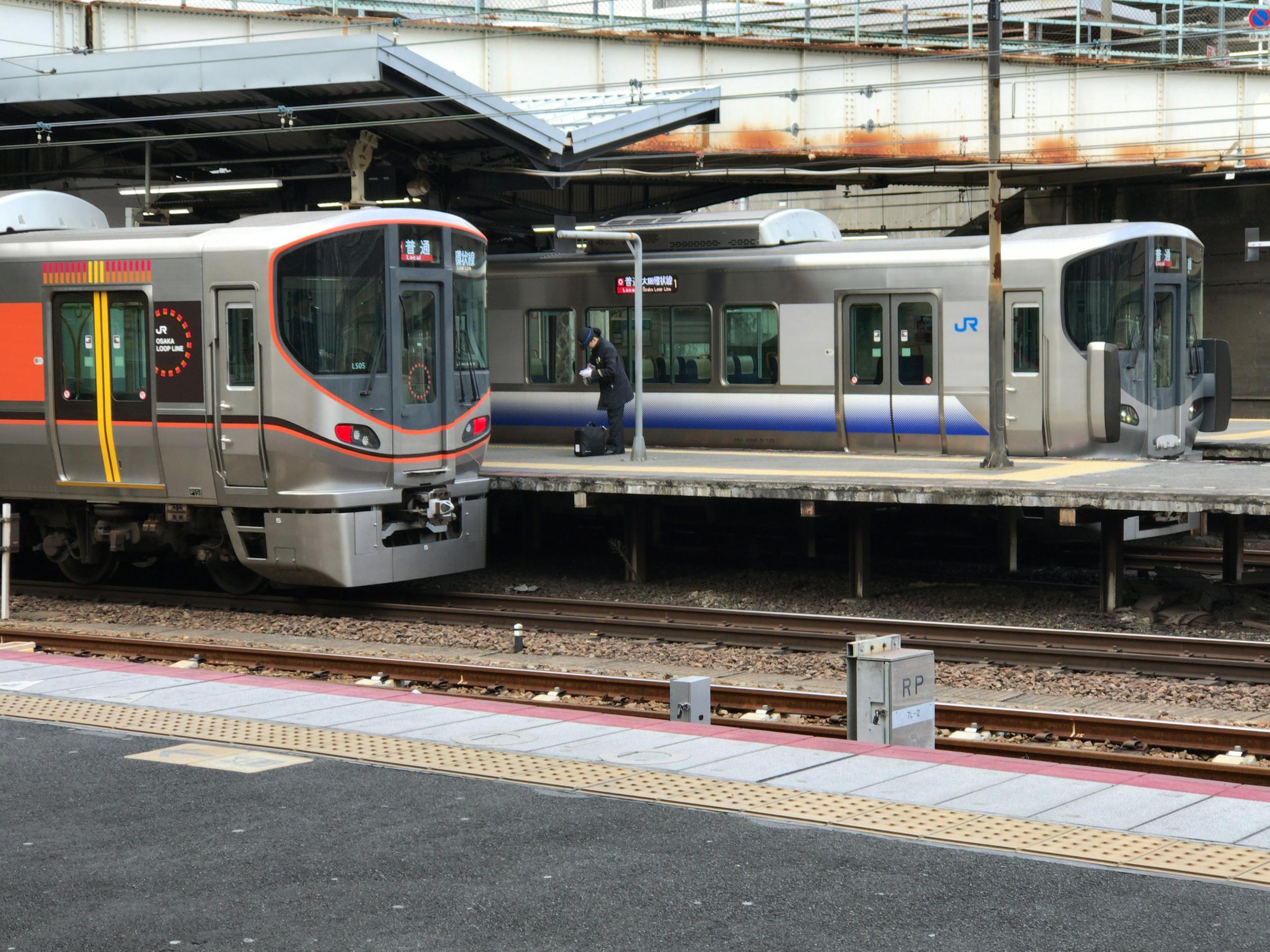 17番線の201系とハルカスが一緒に撮れたものの、広角で電車が歪んでしまいました。221系大和路快速かぶりつき。
